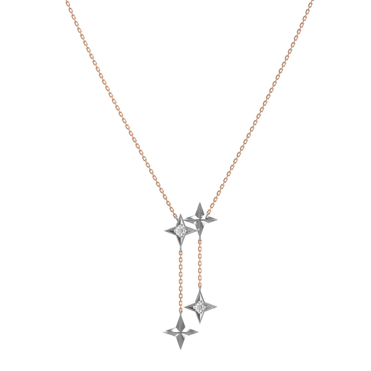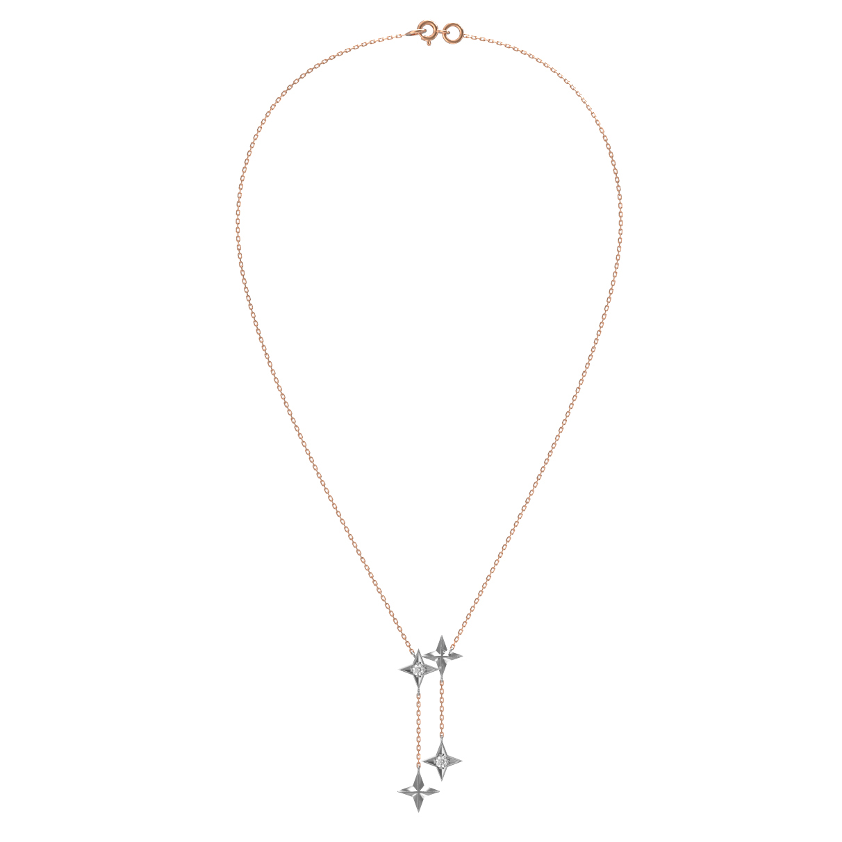 Элегантное колье из золота с бриллиантами — воплощение утонченности и современного стиля. Изделие, представленное в коллекции De Luxe Бриллианты — Galaxy, станет изысканным акцентом вашего образа, подчеркивая индивидуальность и вкус. Дизайн украшения вдохновлен космическими мотивами, где центральными элементами выступают четыре звезды, выполненные с безупречной точностью.