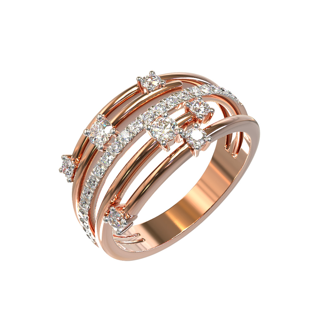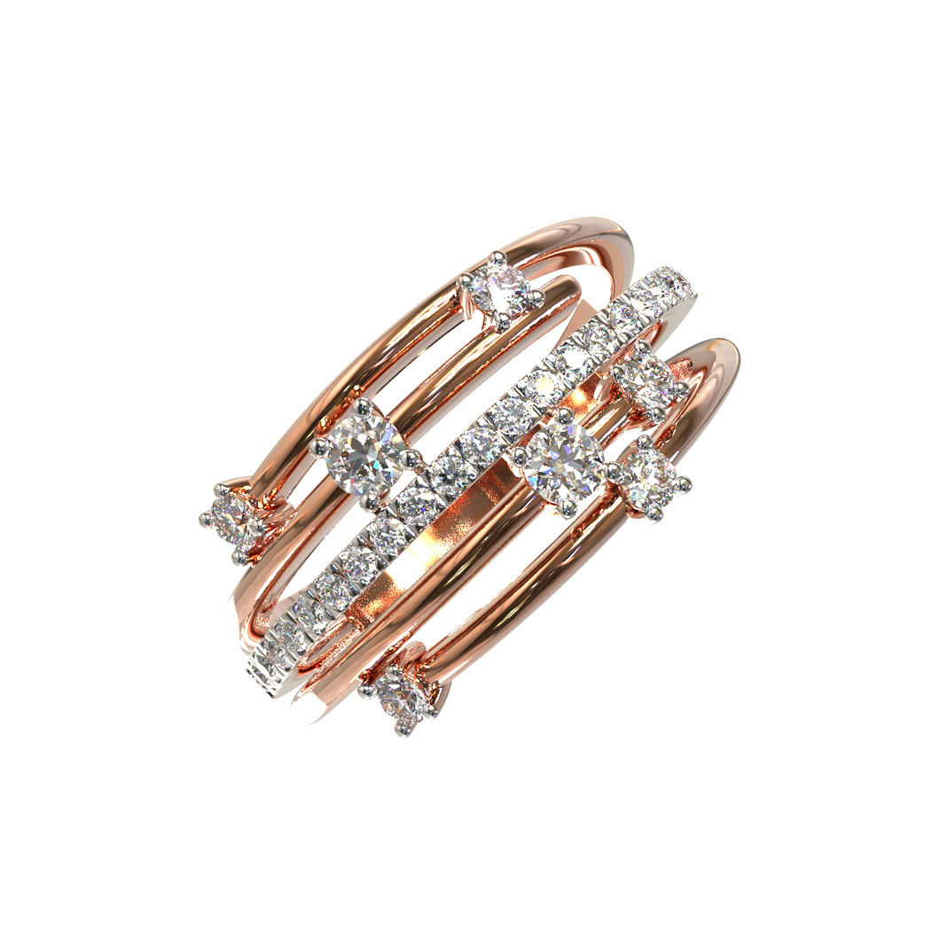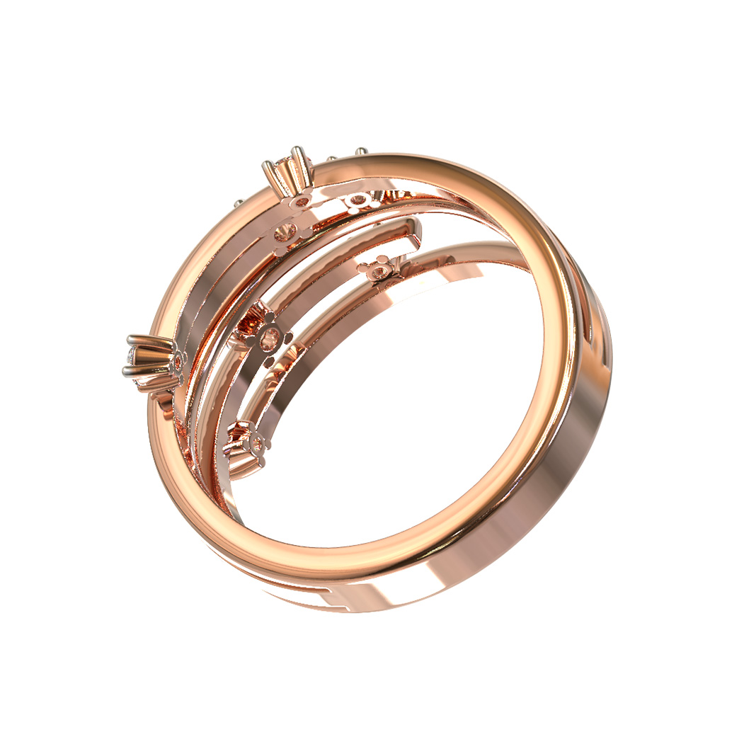 Эффектное кольцо из золота с бриллиантами — это воплощение современной ювелирной эстетики, представленное в коллекции De Luxe Бриллианты — Galaxy. Дизайнерское украшение выполнено из красного золота 585 пробы, чей теплый насыщенный оттенок благородно подчеркивает сияние драгоценных камней. Сложная многослойная конструкция изделия создает динамичный визуальный эффект, сочетая в себе изящество линий и смелость формы.