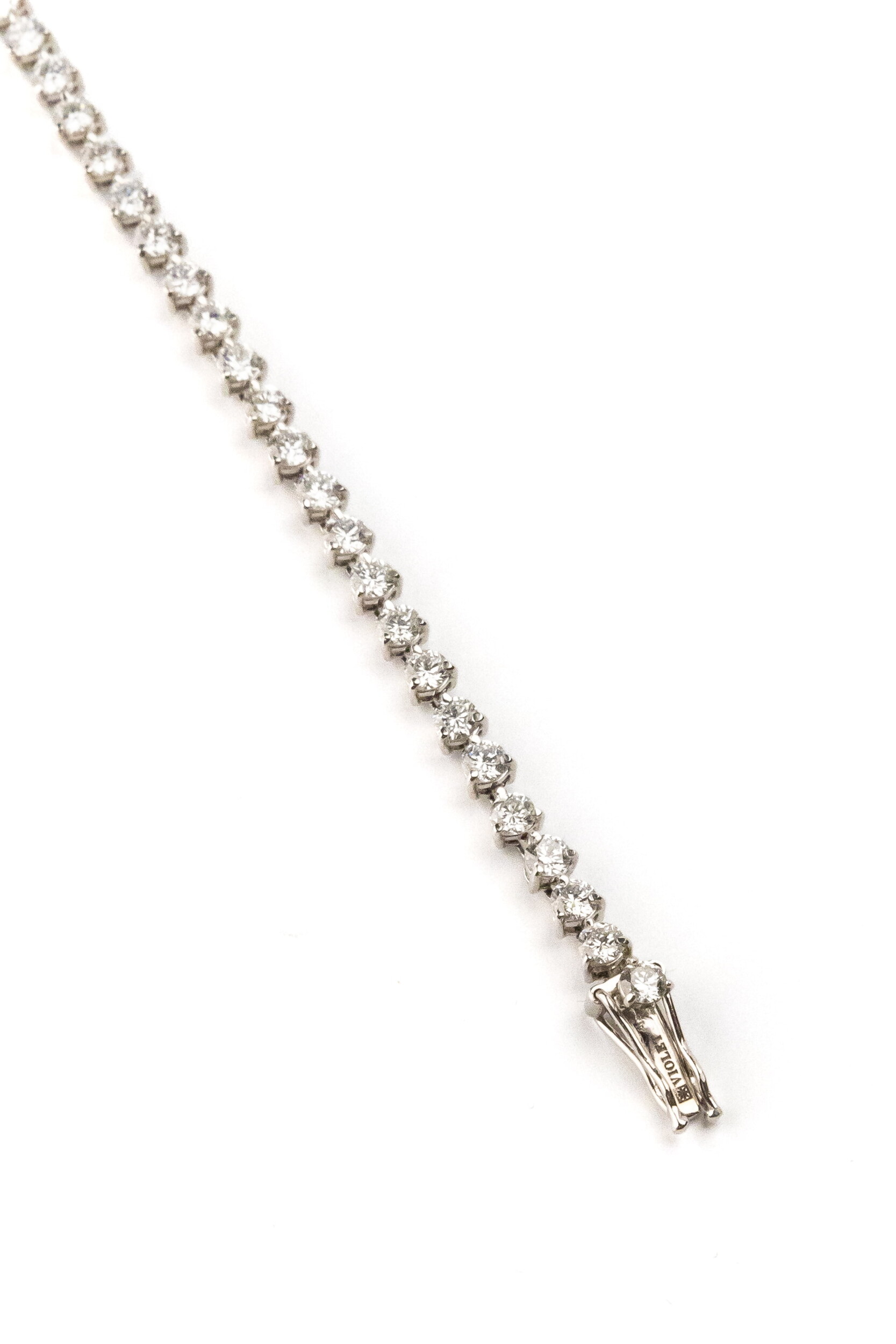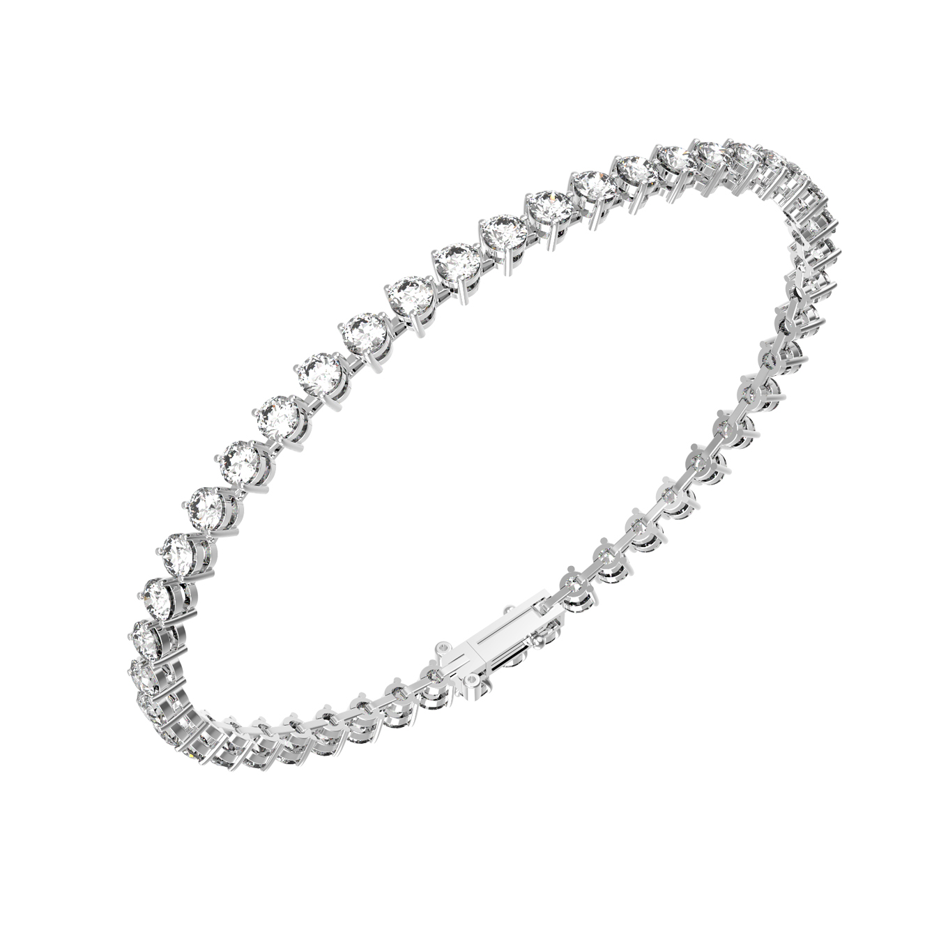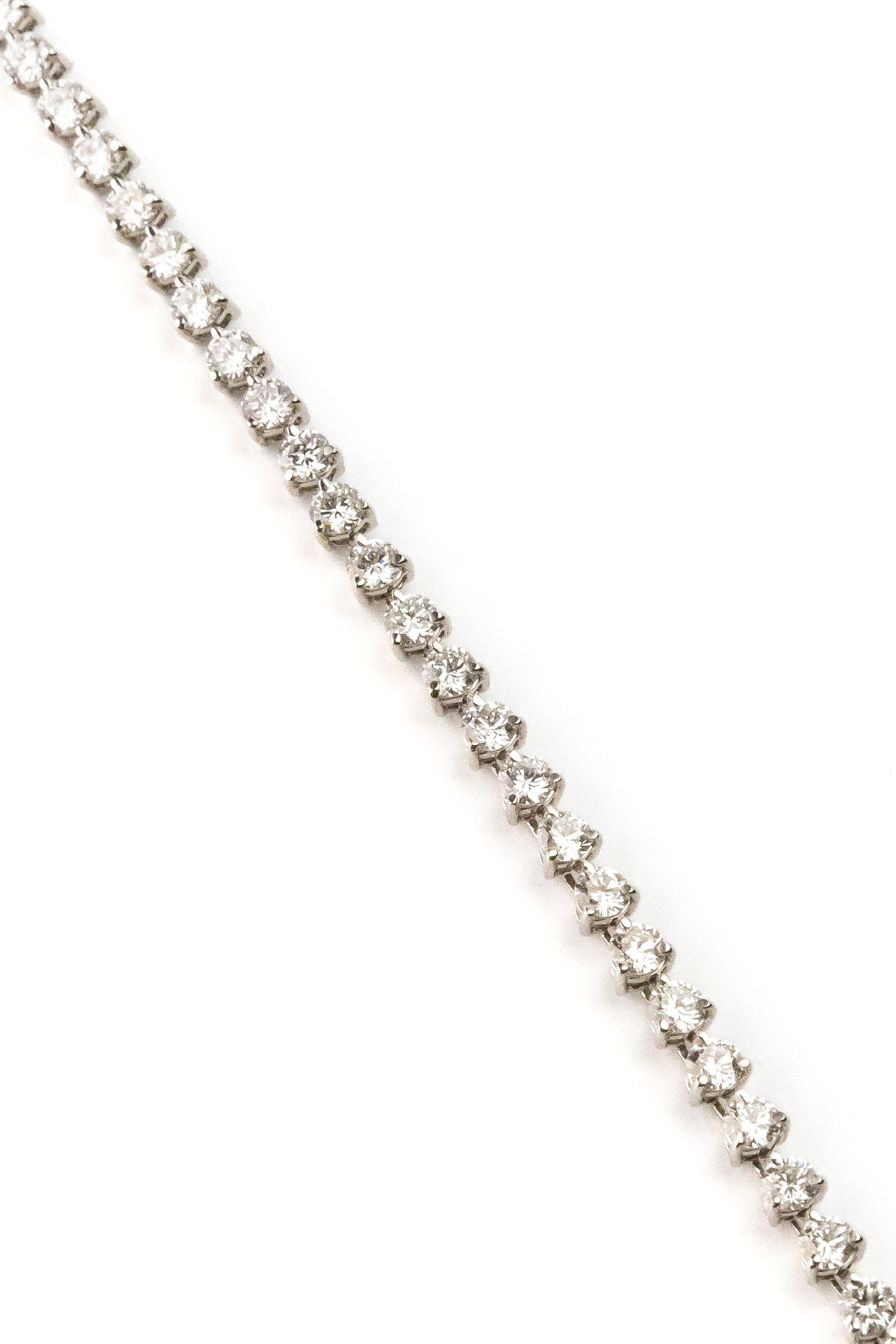 Дизайн модели — классический теннисный браслет, который никогда не выходит из моды. По всему периметру изделия расположены 55 бриллиантов круглой формы. Белые вставки закреплены таким образом, что создают непрерывную дорожку ослепительного сияния, переливающегося при каждом движении руки. Тщательная огранка камней позволяет им максимально раскрыть свою красоту и чистоту.