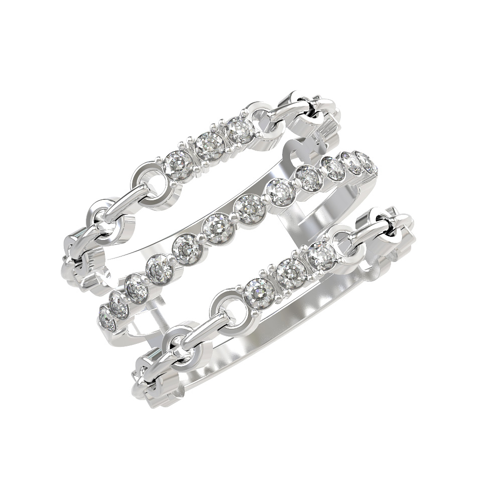 Элегантность и безупречный стиль воплощены в этом изысканном кольце из белого золота 585 пробы. Украшение входит в линейку De Luxe Бриллианты — Diamond lines и представляет собой оригинальную многослойную конструкцию, напоминающую переплетение цепочек. Изящный дизайн изделия делает его универсальным дополнением образа: это кольцо одинаково гармонично смотрится как на женской, так и на мужской руке.