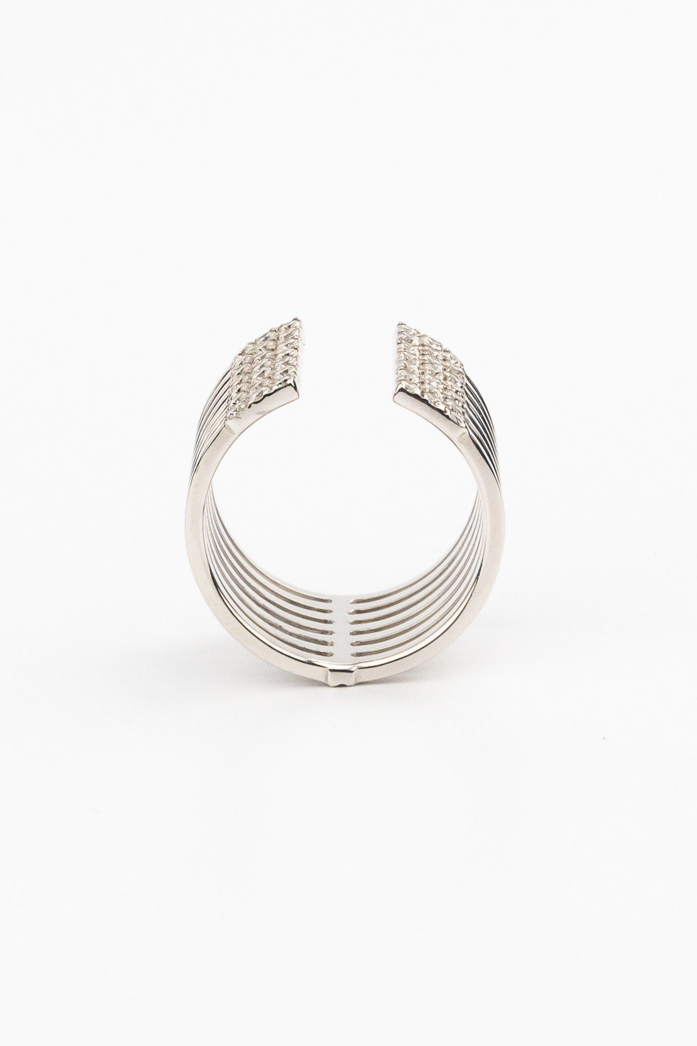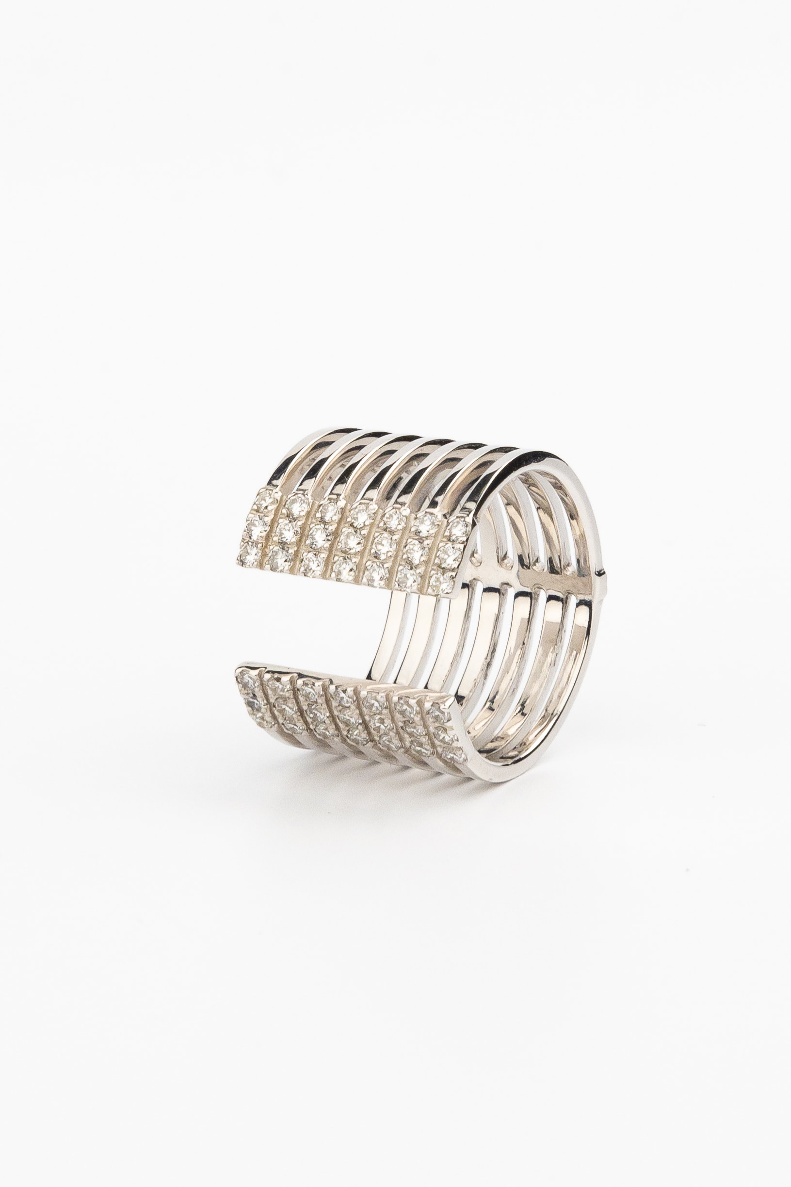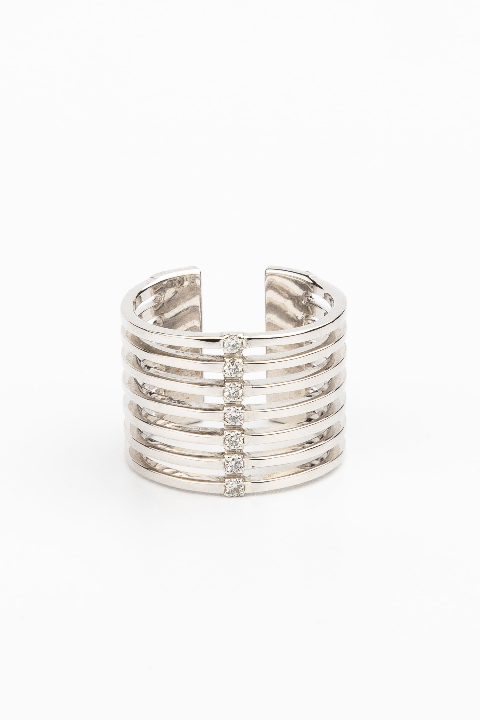Изысканное кольцо из белого золота 585 пробы из коллекции De Luxe Бриллианты — Diamond lines станет безупречным акцентом вашего образа. Дизайн украшения воплощает современную эстетику и архитектурную лаконичность: оригинальная форма изделия, состоящая из множества параллельных линий, притягивает взгляд своей необычной геометрией и благородным блеском металла. Это универсальное ювелирное изделие, которое одинаково гармонично дополнит стиль как женщин, так и мужчин, подчеркивая статус и тонкий вкус своего обладателя.