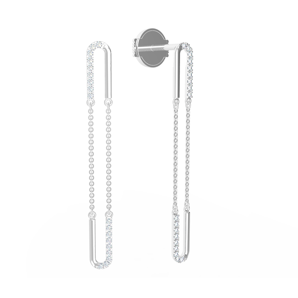 Элегантные серьги из белого золота 585 пробы из коллекции De Luxe Бриллианты — Diamond lines станут безупречным дополнением вашего ювелирного гардероба. Современный лаконичный дизайн делает их универсальным украшением — такие серьги подходят как для женщин, так и для мужчин, предпочитающих стиль унисекс. Изящная форма изделия гармонично сочетается с холодным сиянием благородного металла, подчеркивая статус и безупречный вкус владельца.