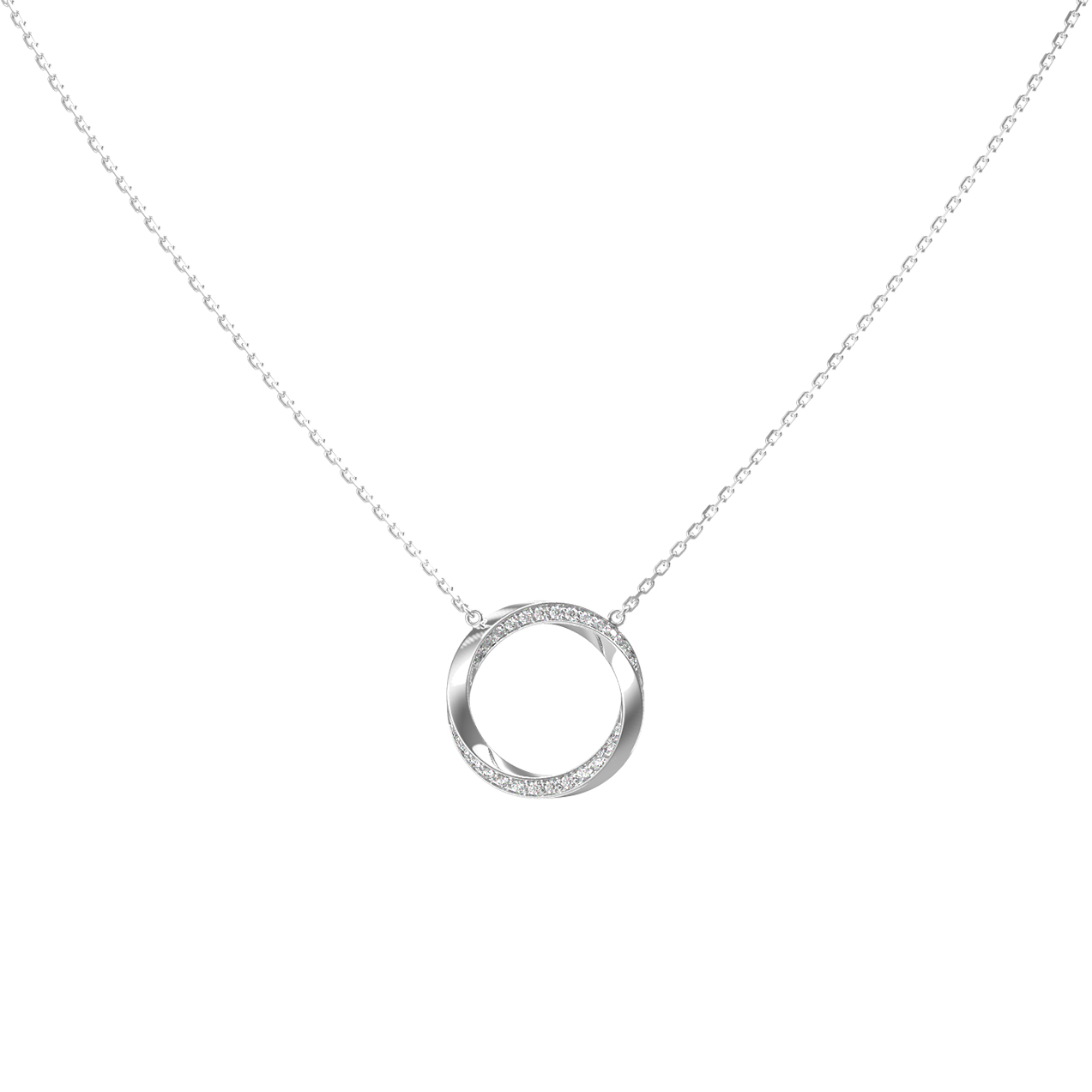 Центральный элемент дизайна — изящный круг, инкрустированный 78 бриллиантами круглой формы. Белые вставки расположены таким образом, чтобы максимально отражать свет при каждом движении, создавая игру бликов. Дизайн колье отличается универсальностью: геометрические линии делают его подходящим аксессуаром как для женщин, так и для мужчин, предпочитающих сдержанные и статусные украшения в своем гардеробе.