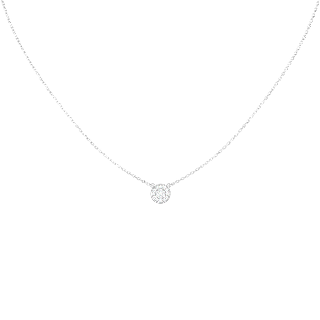 Колье из белого золота с бриллиантами — воплощение изящества и минималистичного стиля, представленное в ювелирной линии De Luxe Бриллианты — Sphere. Украшение выполнено из благородного белого золота 585 пробы, которое подчеркивает чистоту и холодный блеск драгоценных камней. Центральный элемент колье — изящная круглая подвеска, инкрустированная 57 бриллиантами круглой формы с белым цветом вставок.