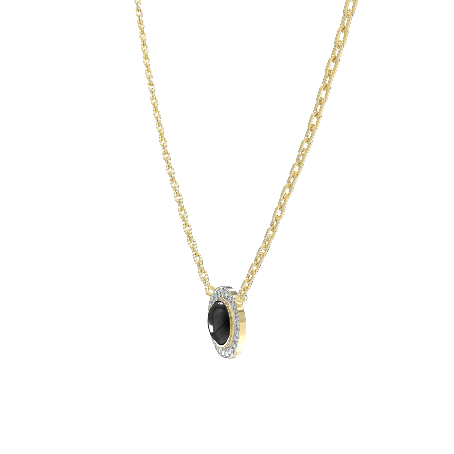 Особую роскошь изделию придает обрамление, состоящее из 48 бриллиантов круглой формы. Белоснежные камни создают игру света вокруг оникса, добавляя украшению благородного блеска. Благодаря универсальному дизайну колье подойдет как для женщин, так и для мужчин, которые ценят лаконичную роскошь и внимание к деталям. Тонкая, но прочная цепочка позволяет комфортно носить изделие на протяжении всего дня.
