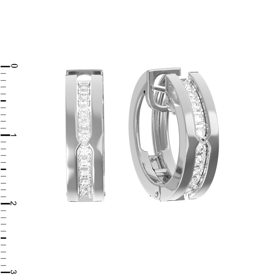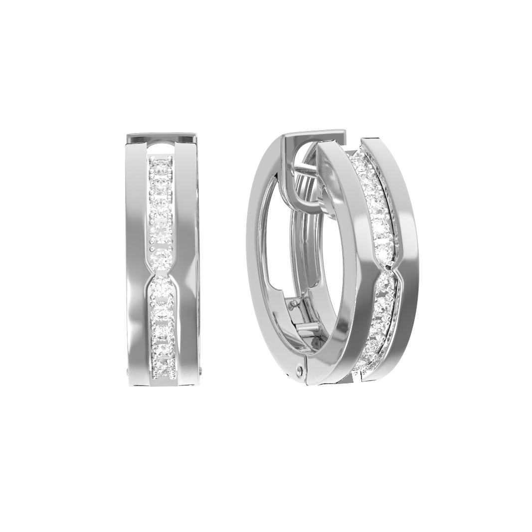 Центральным элементом украшения выступают 22 бриллианта классической круглой огранки. Камни белого цвета расположены в дорожке, создавая непрерывную линию света, которая притягивает взгляд при каждом движении. Особая геометрия закрепки подчеркивает форму вставок и придает изделию современный вид. Эти серьги — идеальный выбор для тех, кто ценит в украшениях сочетание строгости линий и роскоши материалов.