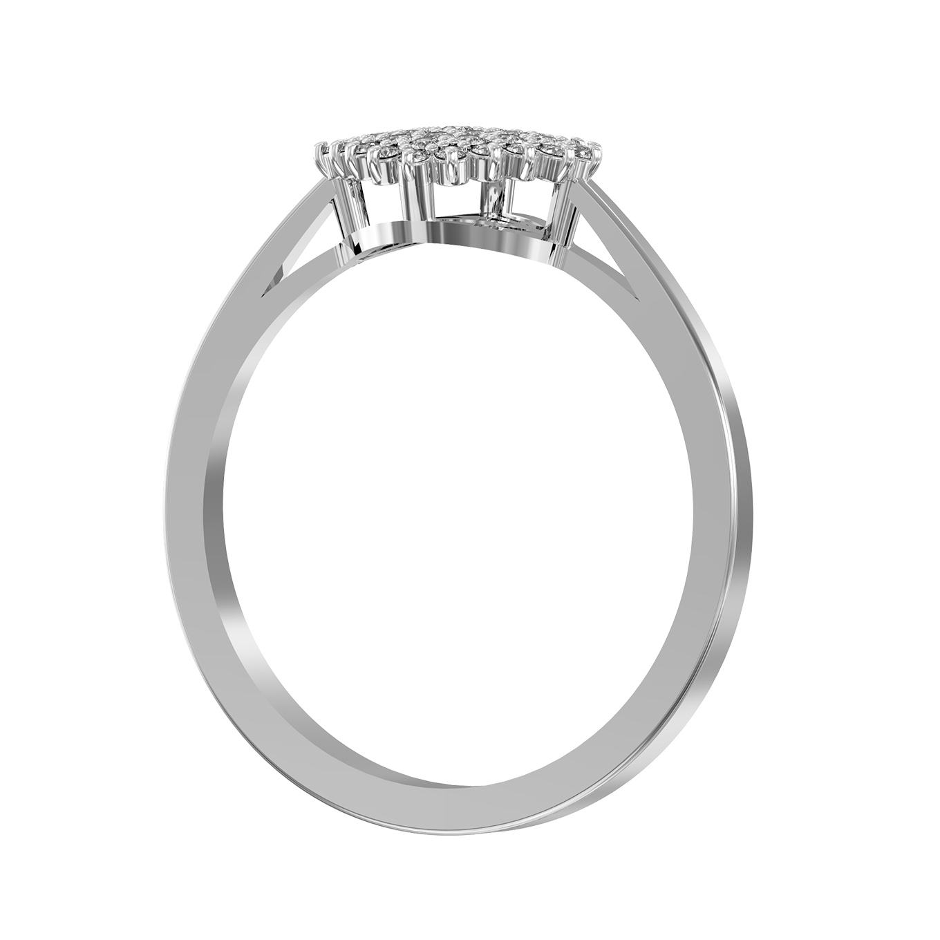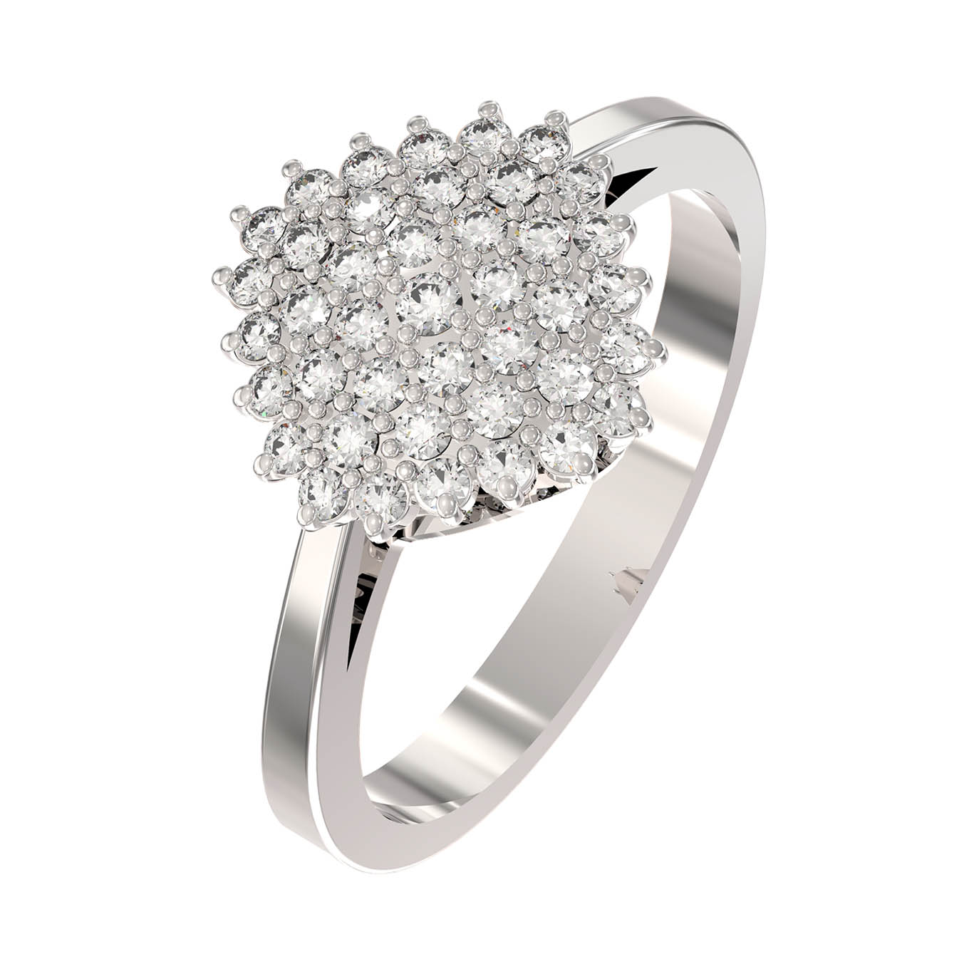 Элегантное кольцо из белого золота 585 пробы из коллекции De Luxe Бриллианты — Radiant станет воплощением вашего безупречного вкуса и статуса. Дизайн этого украшения объединяет классическую роскошь и современные ювелирные традиции, создавая гармоничный образ. Центральная часть изделия привлекает внимание своей сложной композицией: 41 сверкающий бриллиант круглой формы с белым цветом вставок образует эффектную и объемную площадку, напоминающую сияющий цветок или драгоценное созвездие. Камни плотно прилегают друг к другу, что создает непрерывный поток холодного, чистого блеска.