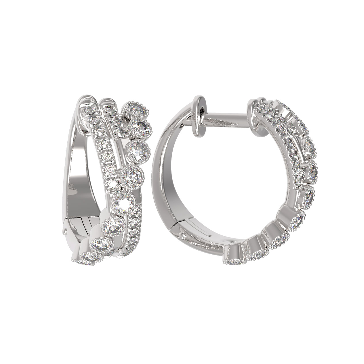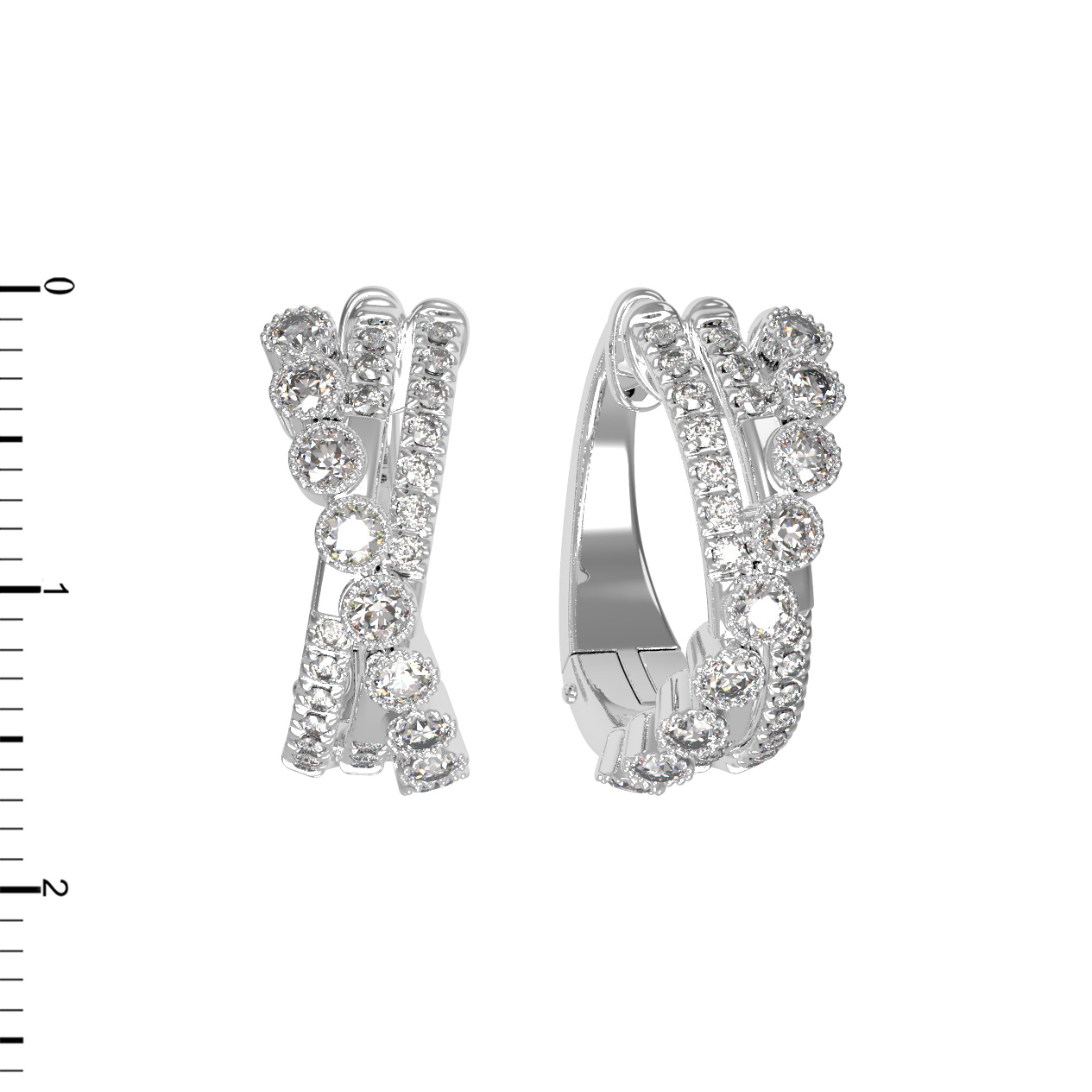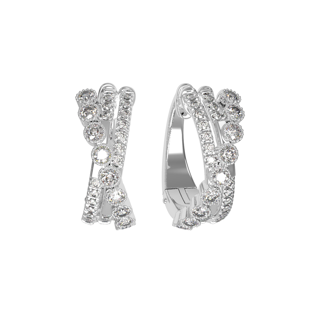 В основе композиции лежит белое золото, чей холодный блеск идеально дополняет сияние вставок. Роскошное оформление подчеркивают 58 таких же ярких, как сама безупречность, бриллиантов. Каждый бриллиант имеет классическую форму круга и чистый белый цвет, что обеспечивает невероятную игру света при каждом движении. Сложная геометрия линий создает объемный и динамичный рисунок, который притягивает взгляд и делает эти серьги идеальным центральным элементом образа.