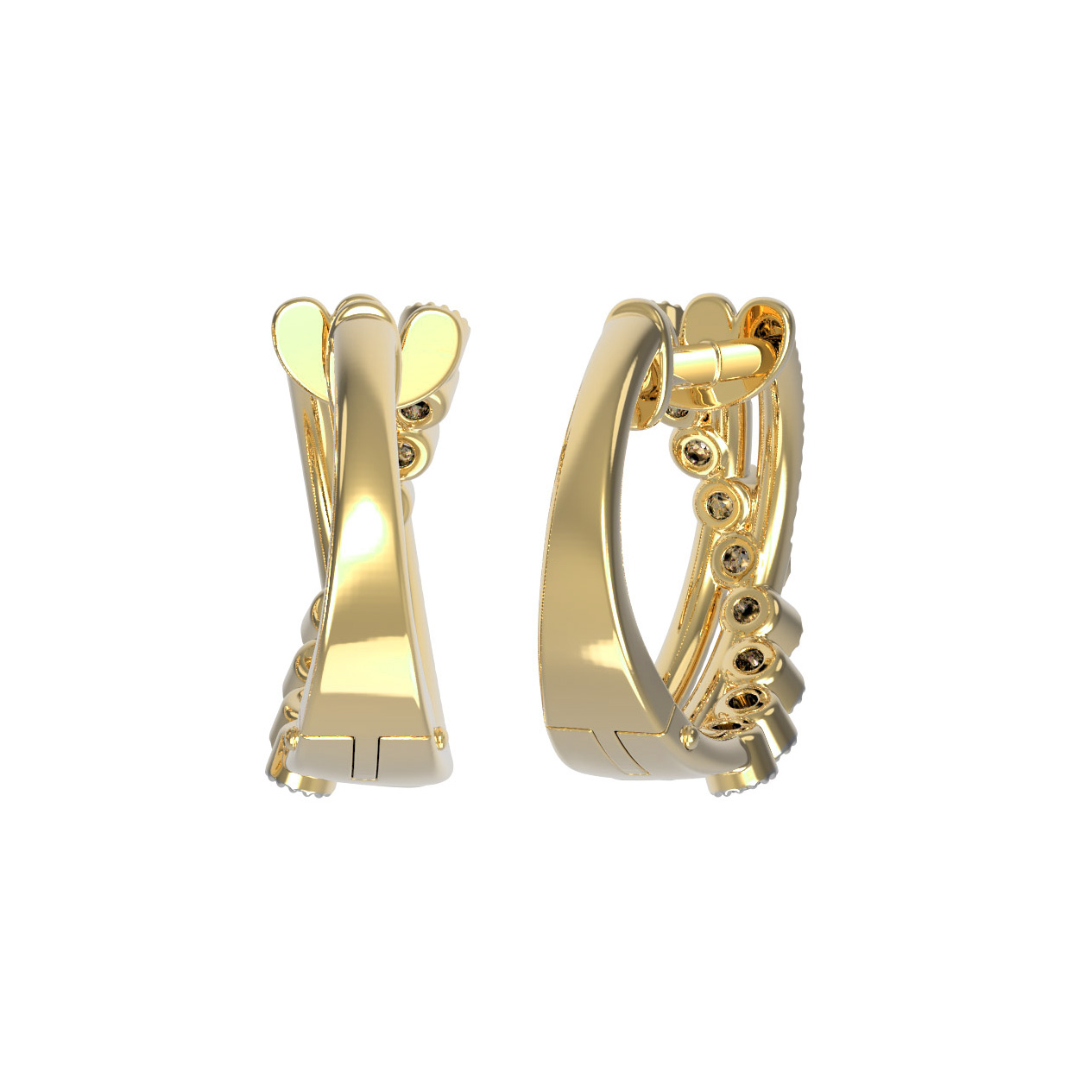 Украшение декорировано 58 бриллиантами классической круглой формы с белыми вставками. Искусная работа ювелиров превращает эти серьги в настоящее произведение искусства, которое дополнит ваш образ, добавив в него нотки аристократичности и статуса. Сияние камней гармонично сочетается с теплым металлическим блеском, создавая выразительный контраст.