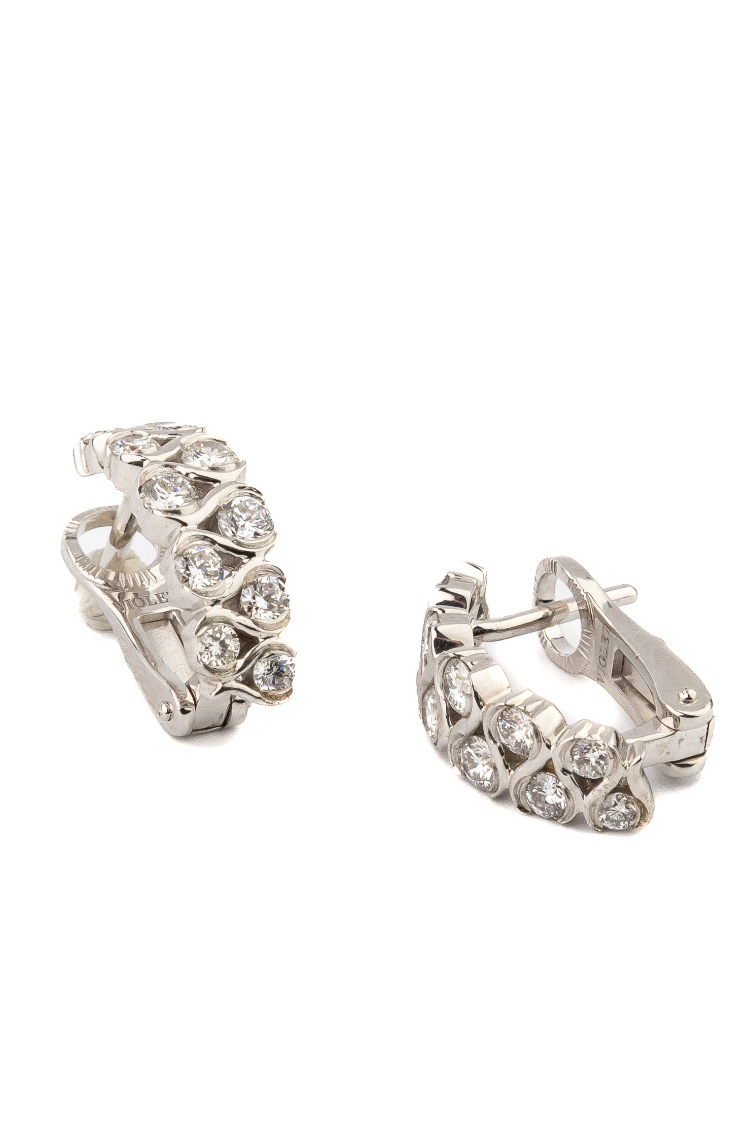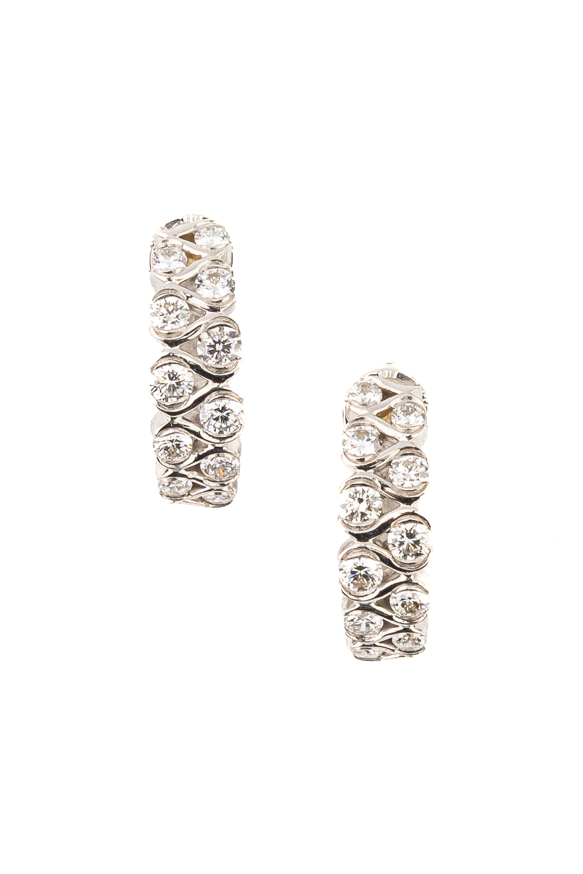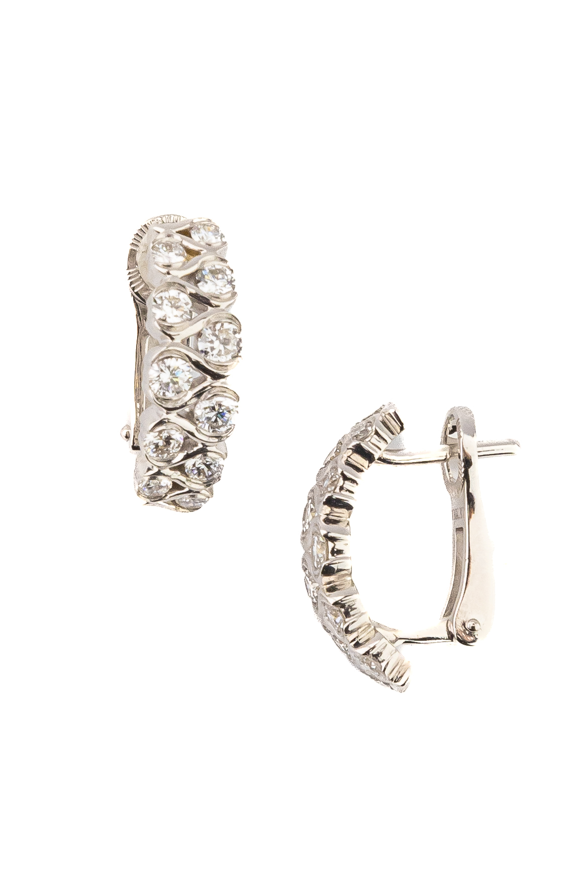 Основой композиции являются 22 бриллианта идеальной круглой формы с чистым белым цветом вставок. Камни закреплены таким образом, что создают непрерывный поток света при каждом движении. Холодный оттенок белого золота идеально гармонирует с прозрачностью бриллиантов, усиливая их естественное мерцание. Эти серьги — универсальный аксессуар, который подойдет как для женщин, так и для мужчин, предпочитающих лаконичные, но выразительные украшения.
