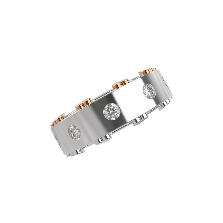 Ювелирное украшение украшают 12 вставок безупречной круглой формы: роскошные бриллианты белого цвета и акцентные рубины красного цвета. Такое сочетание делает изделие по-настоящему притягательным и запоминающимся. Лаконичный и продуманный дизайн подчеркивает премиальный статус аксессуара, делая его идеальным дополнением как повседневного, так и вечернего гардероба.