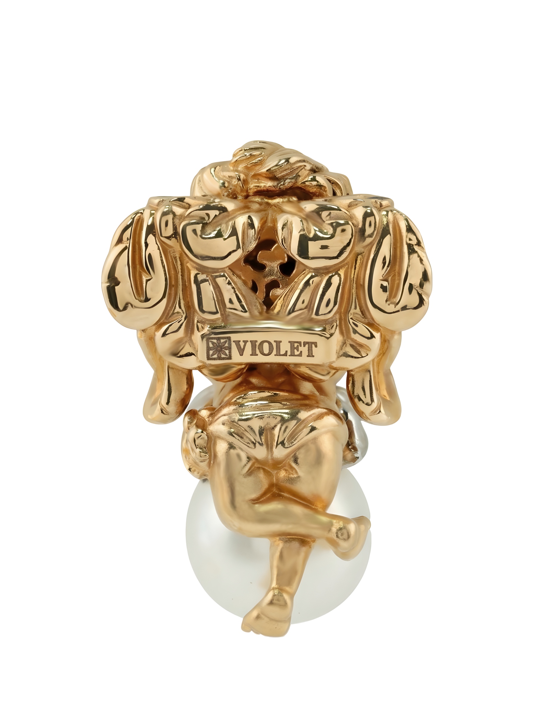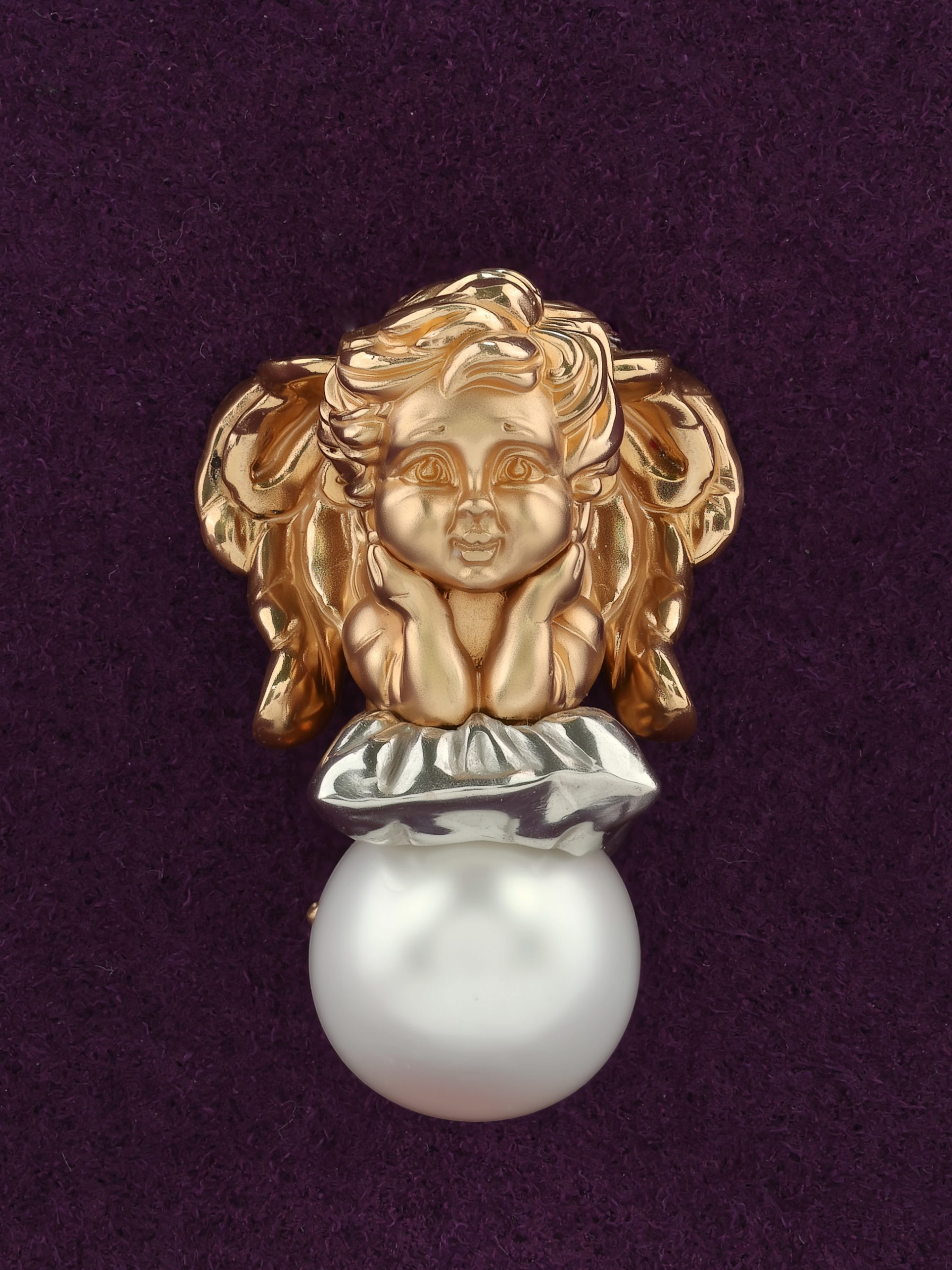 Изящная подвеска из золота с жемчугом станет воплощением нежности и утонченного стиля в вашем образе. Это украшение из коллекции De Luxe — Купидоны привлекает внимание своим необычным и трогательным дизайном в виде фигурки купидона, который словно оберегает своего владельца. Мастерство ювелиров позволило передать в красном золоте 585 пробы все детали образа: от выразительных черт лица до фактуры крыльев.