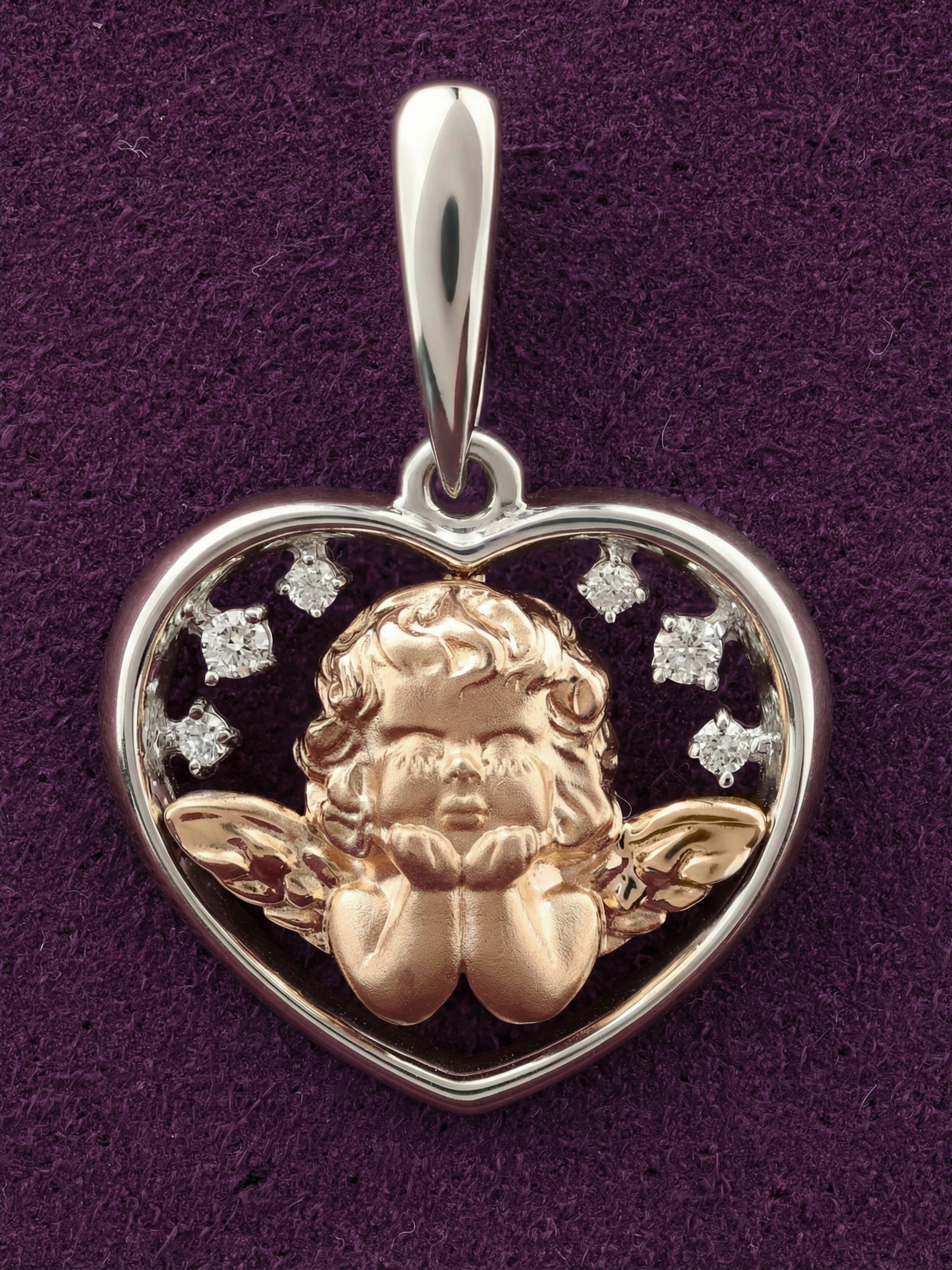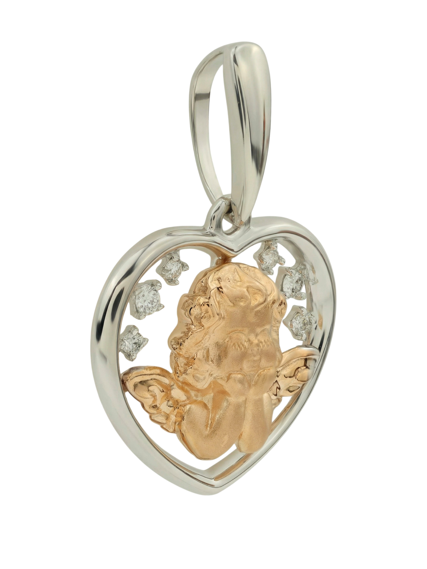 Изящная подвеска из белого золота 585 пробы — это воплощение нежности и утонченного стиля. Центральным элементом композиции, созданной в рамках коллекции De Luxe — Купидоны, является детально проработанный дизайн: фигурка купидона, обрамленная изящным контуром в форме сердца. Этот символ любви и искренности делает украшение глубоко эмоциональным подарком для близкого человека.