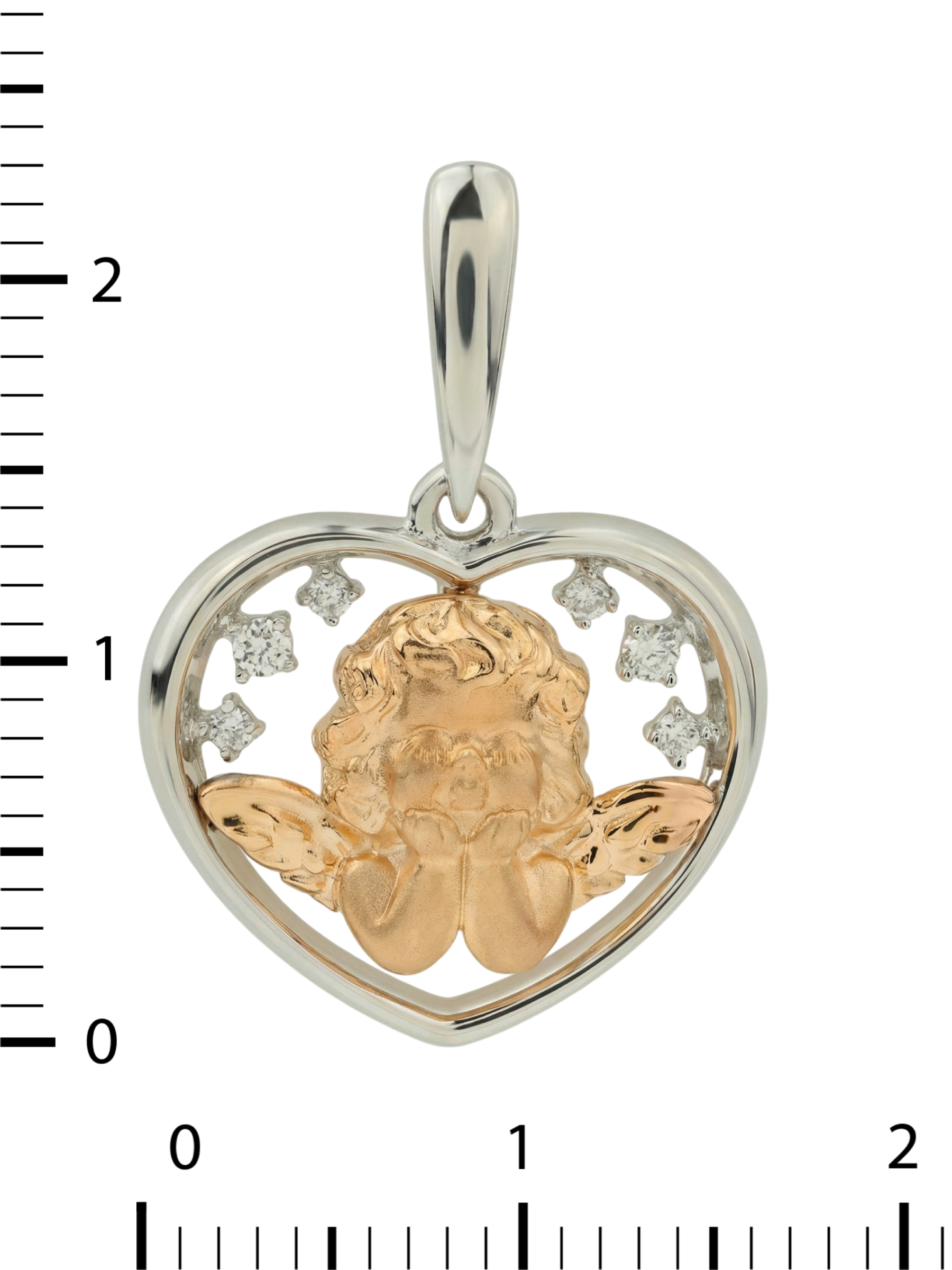 Холодный блеск белого золота гармонично дополнен вставками из 6 сияющих бриллиантов. Камни имеют классическую форму круга, а их белый цвет подчеркивает чистоту и благородство металла. Бриллианты расположены вокруг центральной фигурки, создавая деликатное мерцание при каждом движении. Благодаря выверенной композиции, это ювелирное изделие станет утонченным акцентом любого образа.