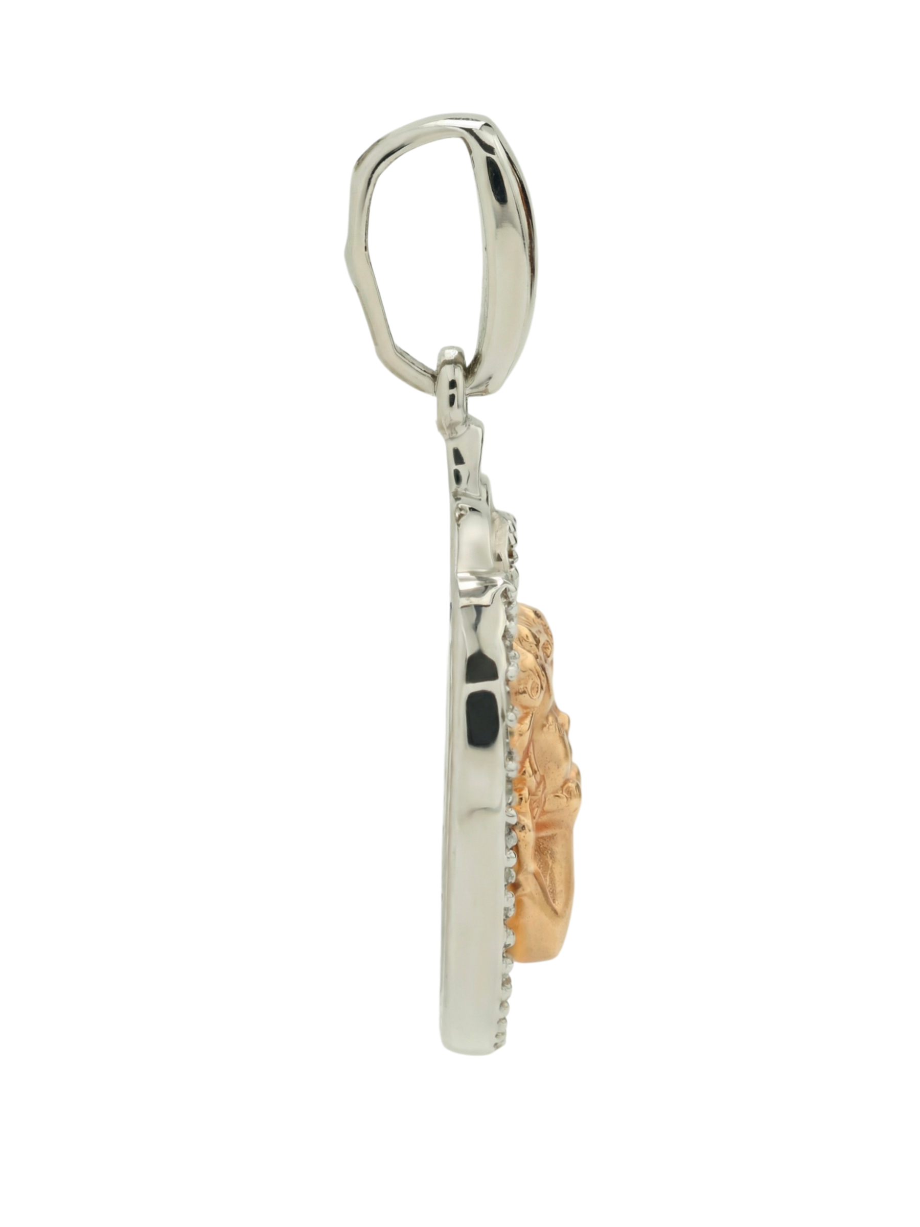 Особую выразительность подвеске придает роскошная инкрустация: 35 бриллиантов круглой огранки с белым цветом вставок создают великолепную игру света при каждом движении. Контрастное сочетание драгоценного металла и сверкающих камней подчеркивает премиальный статус изделия. Данная модель универсальна и подходит как для женщин, так и для мужчин, предпочитающих украшения со смыслом. Лаконичная форма и классический цвет материала делают эту подвеску идеальной для повседневного ношения или дополнения вечернего образа. Позвольте этому ювелирному шедевру стать вашим личным талисманом, который всегда будет напоминать о важных моментах.