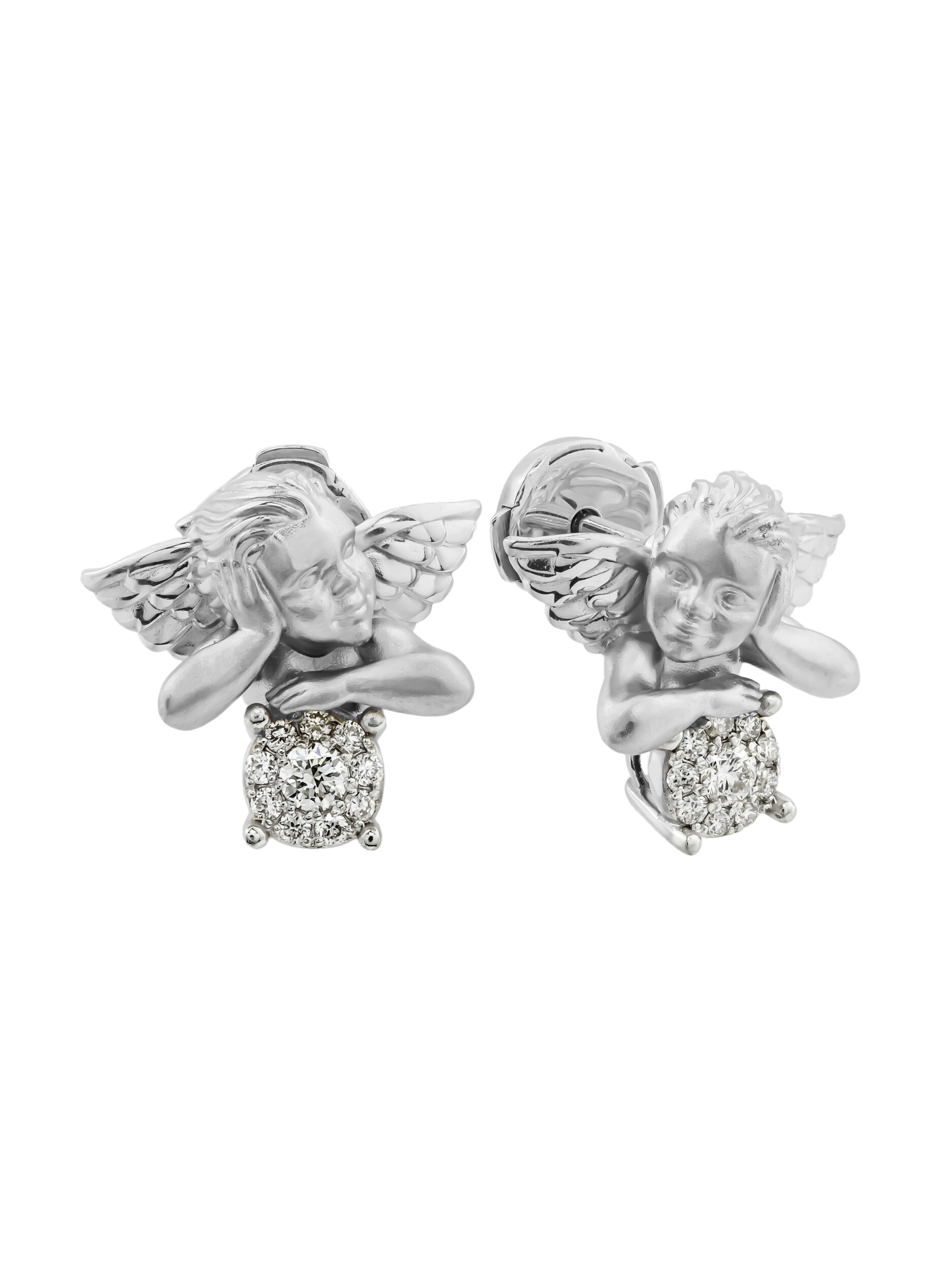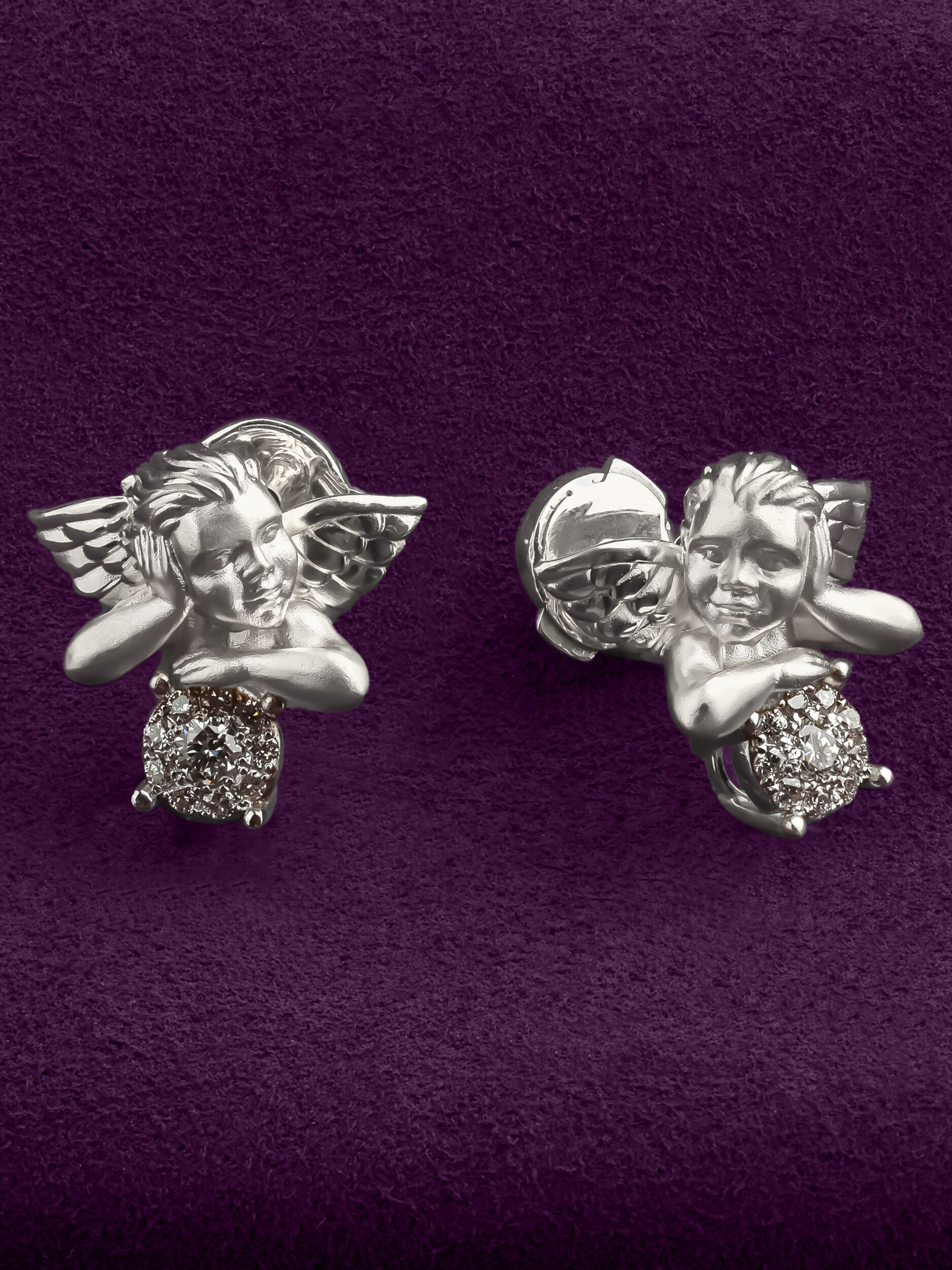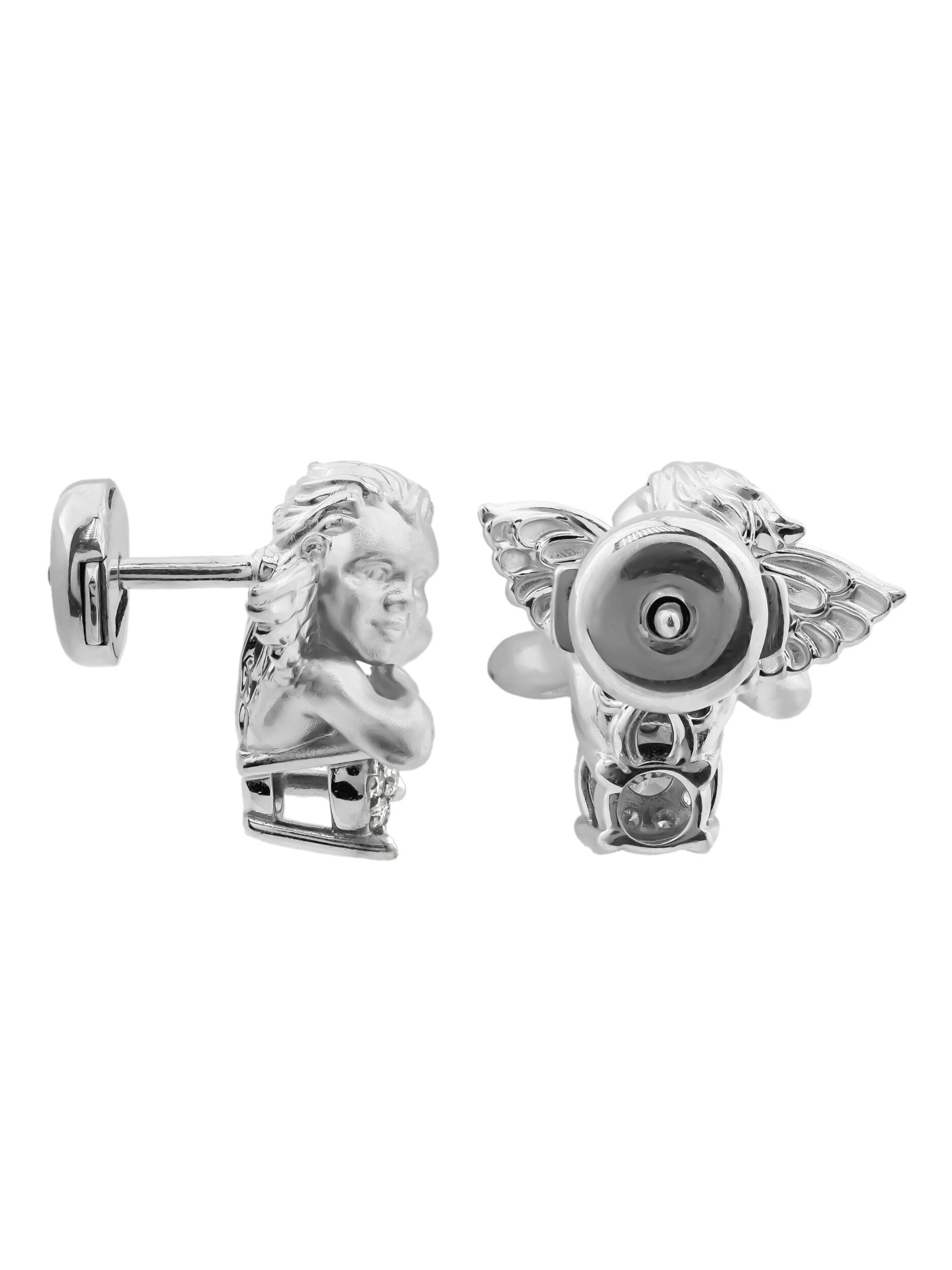 Изящные серьги из белого золота 585 пробы из коллекции De Luxe — Купидоны станут выразительным акцентом вашего образа. Дизайн изделия, вдохновленный нежными образами купидонов, придает украшению романтичный и возвышенный характер. Фигурки херувимов выполнены с особой тщательностью, подчеркивая мастерство ювелиров. Каждое изделие дополнено сияющими вставками: в оформлении использованы 20 бриллиантов круглой формы, обладающих безупречным белым цветом и выразительным блеском.