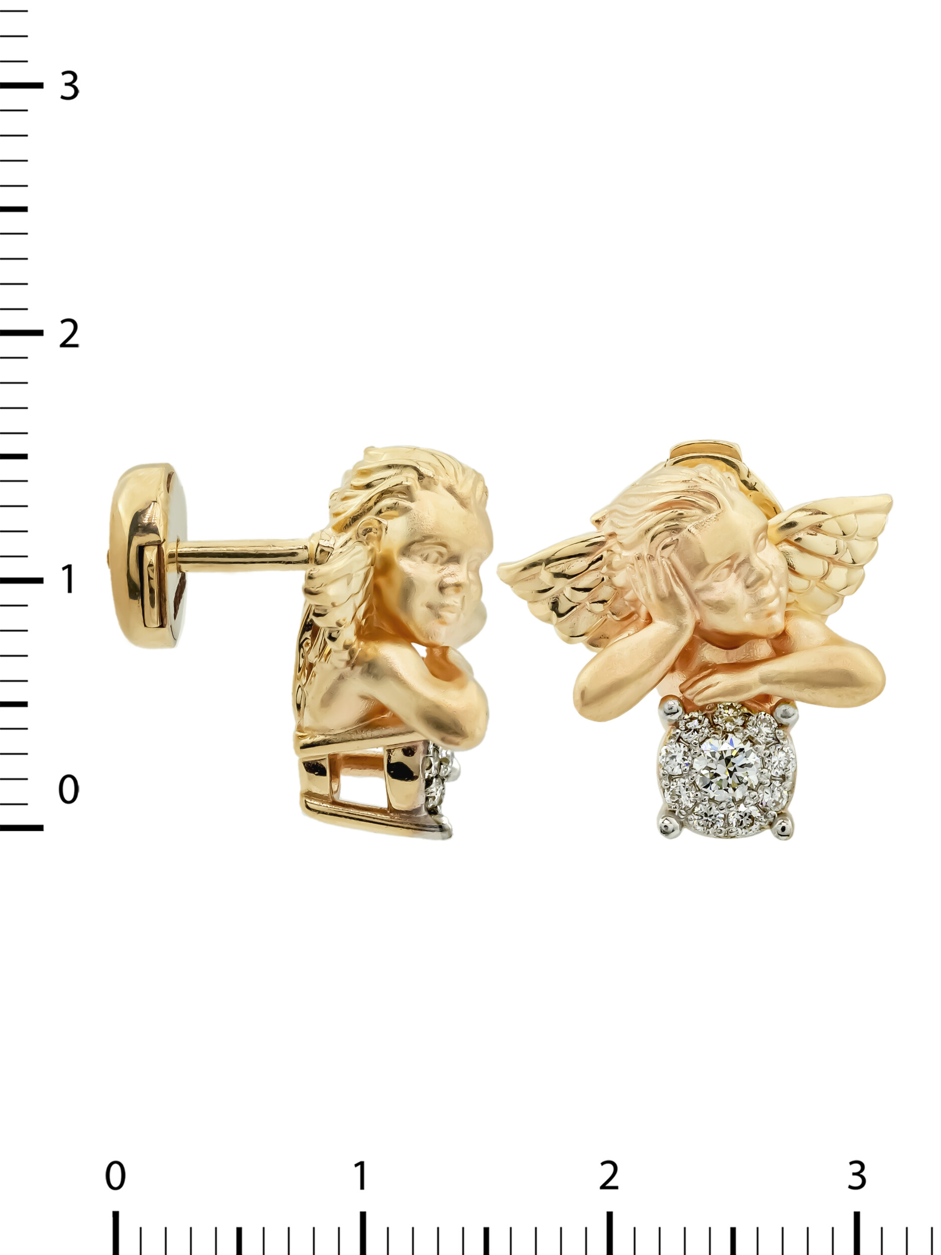 Роскошный блеск металла гармонично дополнен вставками из драгоценных камней. В дизайне использовано 20 бриллиантов круглой формы с классическим белым цветом вставок. Их сияние подчеркивает благородный оттенок красного золота, создавая притягательный визуальный акцент. Общий дизайн — купидоны — делает эти серьги символом нежности и высокого стиля.
