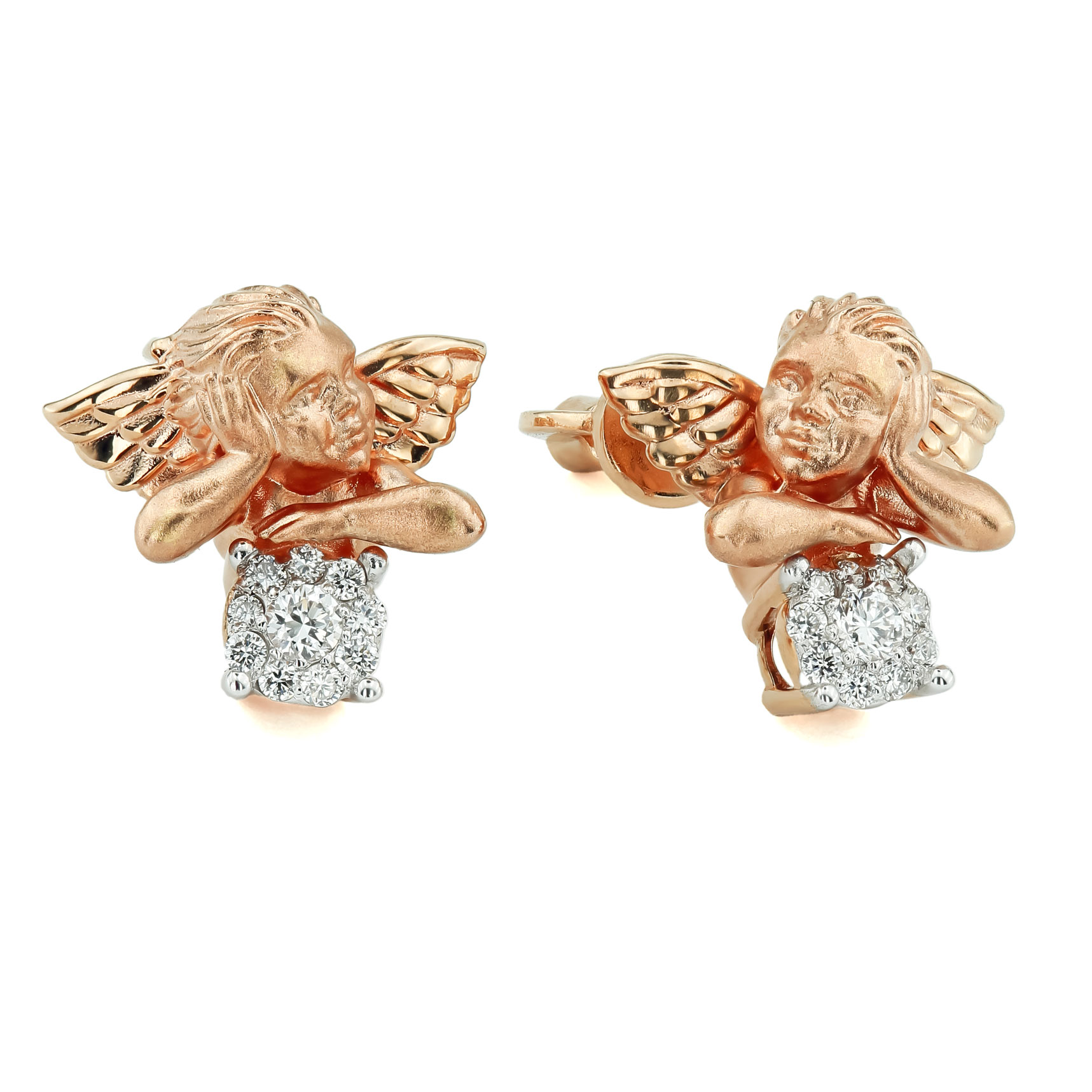 Серьги из красного золота 585 пробы из коллекции De Luxe — Купидоны представляют собой воплощение изысканности и нежности. Этот ювелирный аксессуар, выполненный в оригинальном дизайне Купидоны, станет ярким акцентом в вашем образе, подчеркивая утонченный вкус и внимание к деталям. Фигурки херувимов, бережно поддерживающие сияющие камни, придают украшению особую эмоциональную ценность и шарм.