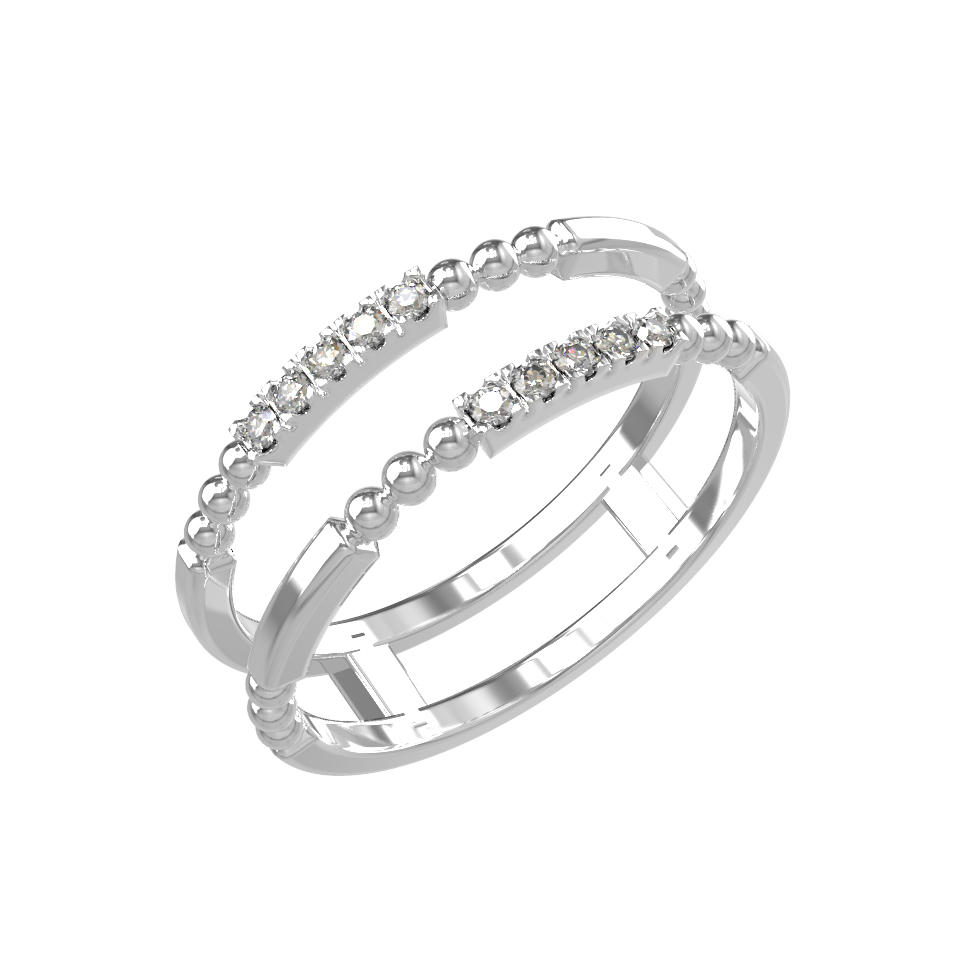 В качестве вставок использованы 10 бриллиантов круглой формы, обладающие чистым белым цветом. Благодаря искусной огранке каждый камень максимально раскрывает свою игру света при попадании лучей. Это универсальное ювелирное изделие, которое одинаково гармонично дополнит как женский, так и мужской образ, подчеркивая статус и тонкий вкус своего обладателя. Кольцо из белого золота комфортно сидит на руке и легко комбинируется с другими аксессуарами.