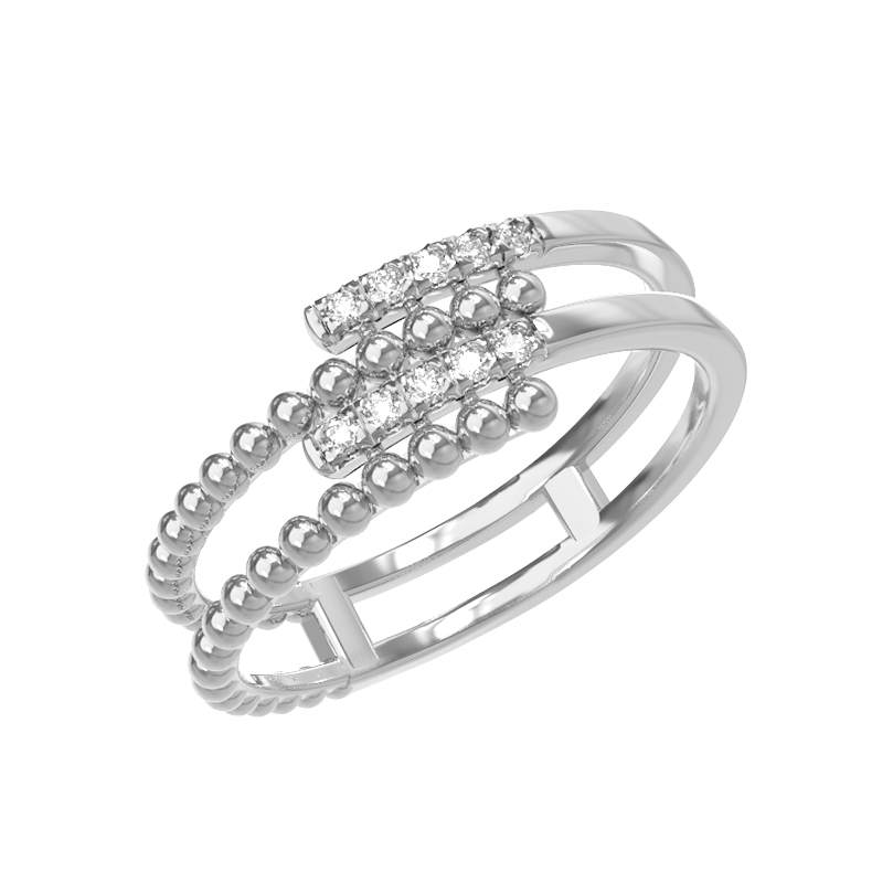 Центральную композицию кольца формируют 10 бриллиантов круглой формы с безупречным белым цветом. Сияющие камни расположены в изящной оправе, окруженной декоративными шариками, которые добавляют украшению динамики и оригинальности. Благодаря своей лаконичной форме и универсальному стилю, это кольцо одинаково гармонично дополнит как женский, так и мужский образ, подчеркивая статусность своего владельца.