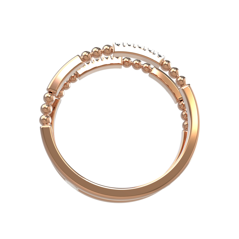 Центральным акцентом композиции служат 10 сияющих вставок — бриллианты круглой формы с насыщенным белым цветом. Драгоценные камни расположены таким образом, чтобы максимально отражать свет при каждом движении руки, создавая завораживающую игру бликов. Гармоничное сочетание теплого оттенка красного золота и холодного блеска бриллиантов делает это украшение универсальным аксессуаром.