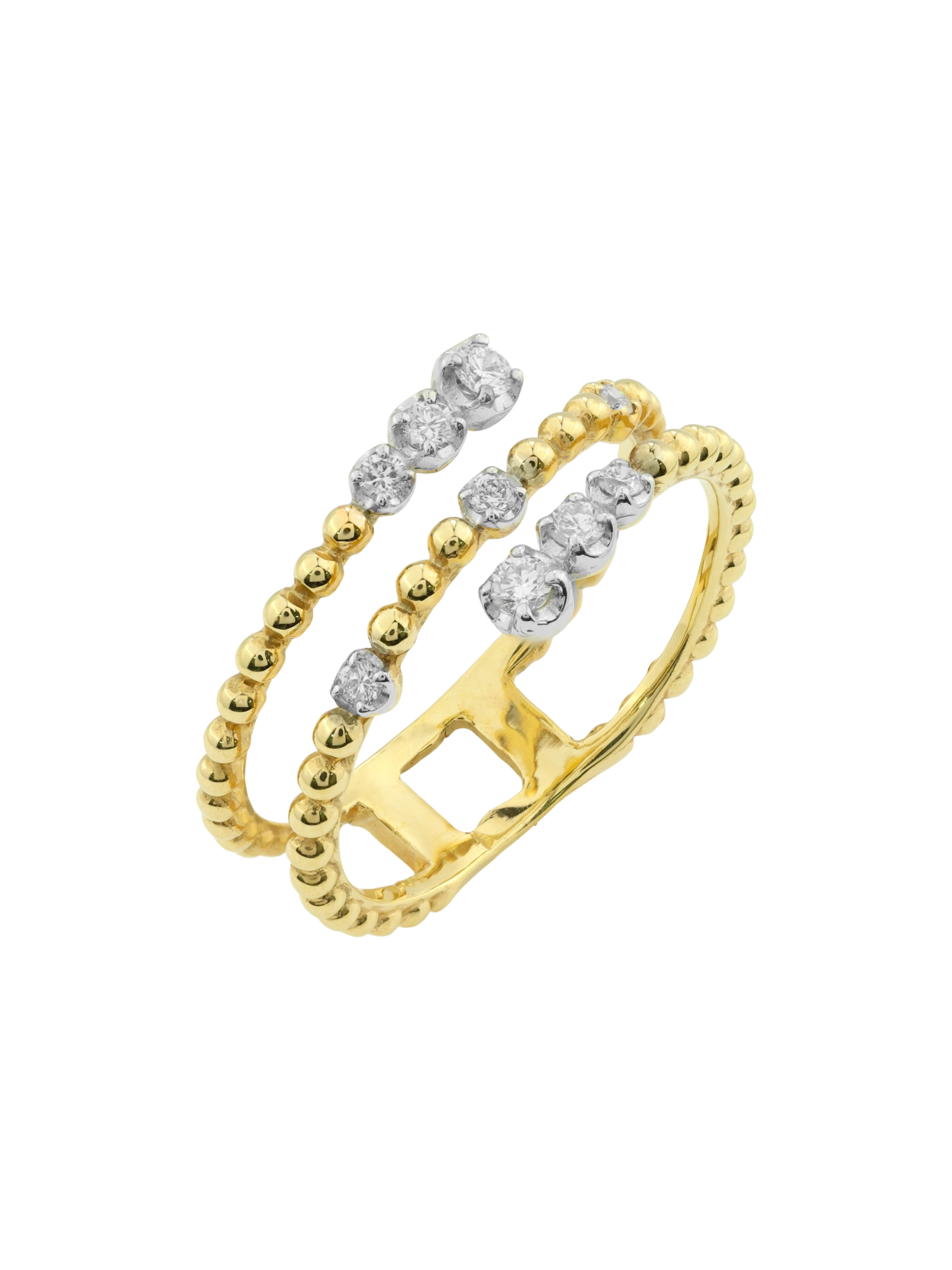 Откройте для себя воплощение утонченного дизайна с этим изысканным кольцом из коллекции De Luxe Бриллианты — Balls. Украшение выполнено из лимонного золота 585 пробы, чей благородный оттенок подчеркивает фактурный дизайн в виде чередующихся золотых сфер. Эта оригинальная геометрия придает изделию динамику и современный вид, идеально подходящий для тех, кто ценит индивидуальность в ювелирных украшениях.