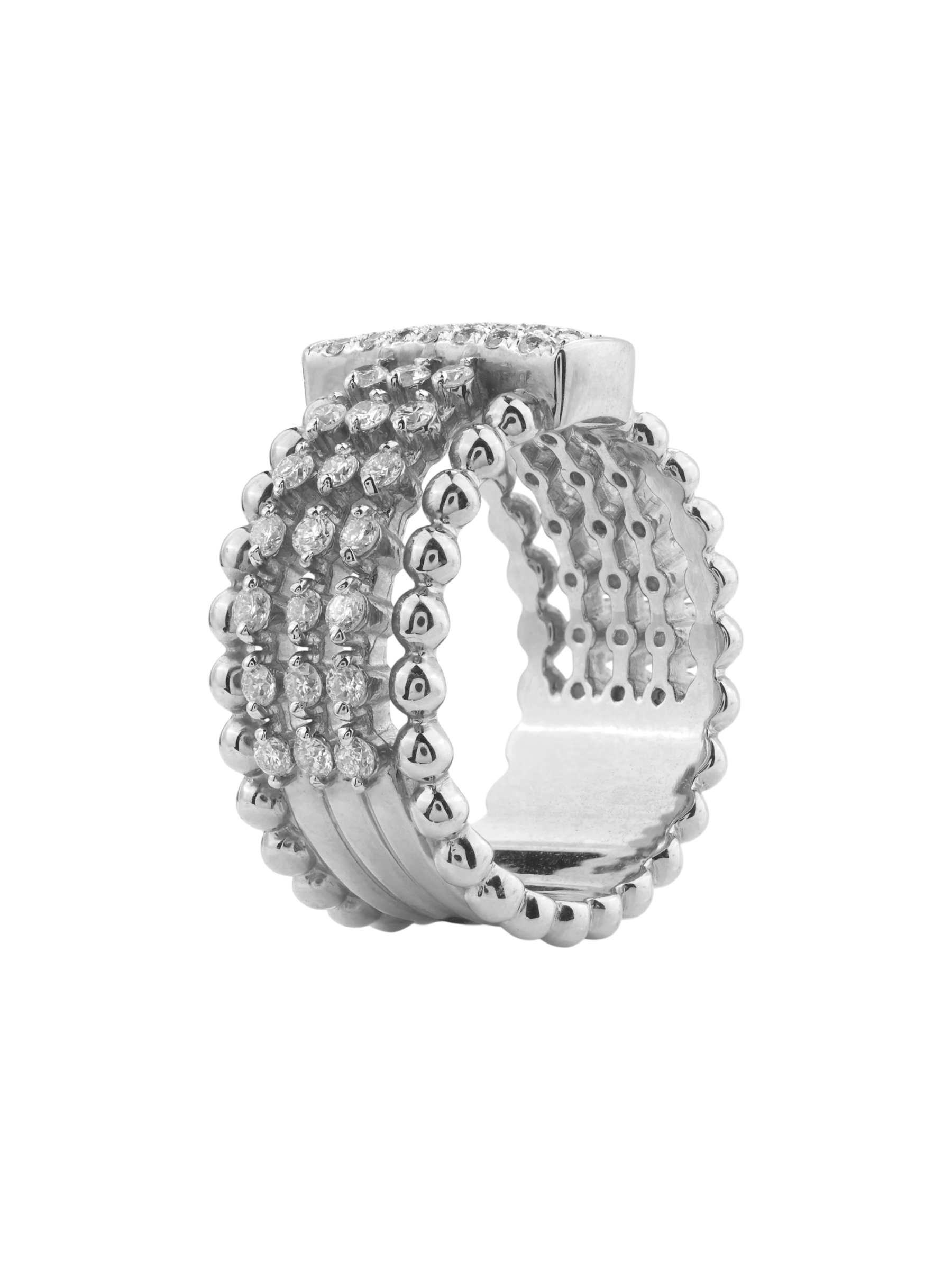 Представляем вашему вниманию роскошное кольцо из белого золота 585 пробы из коллекции De Luxe Бриллианты — Balls, созданное для тех, кто ценит статус и безупречный стиль. Это украшение станет выразительным акцентом вашего образа, привлекая внимание своей сложной геометрией и сиянием драгоценных камней. Изделие гармонично сочетает в себе холодный блеск благородного металла с ослепительным мерцанием вставок.