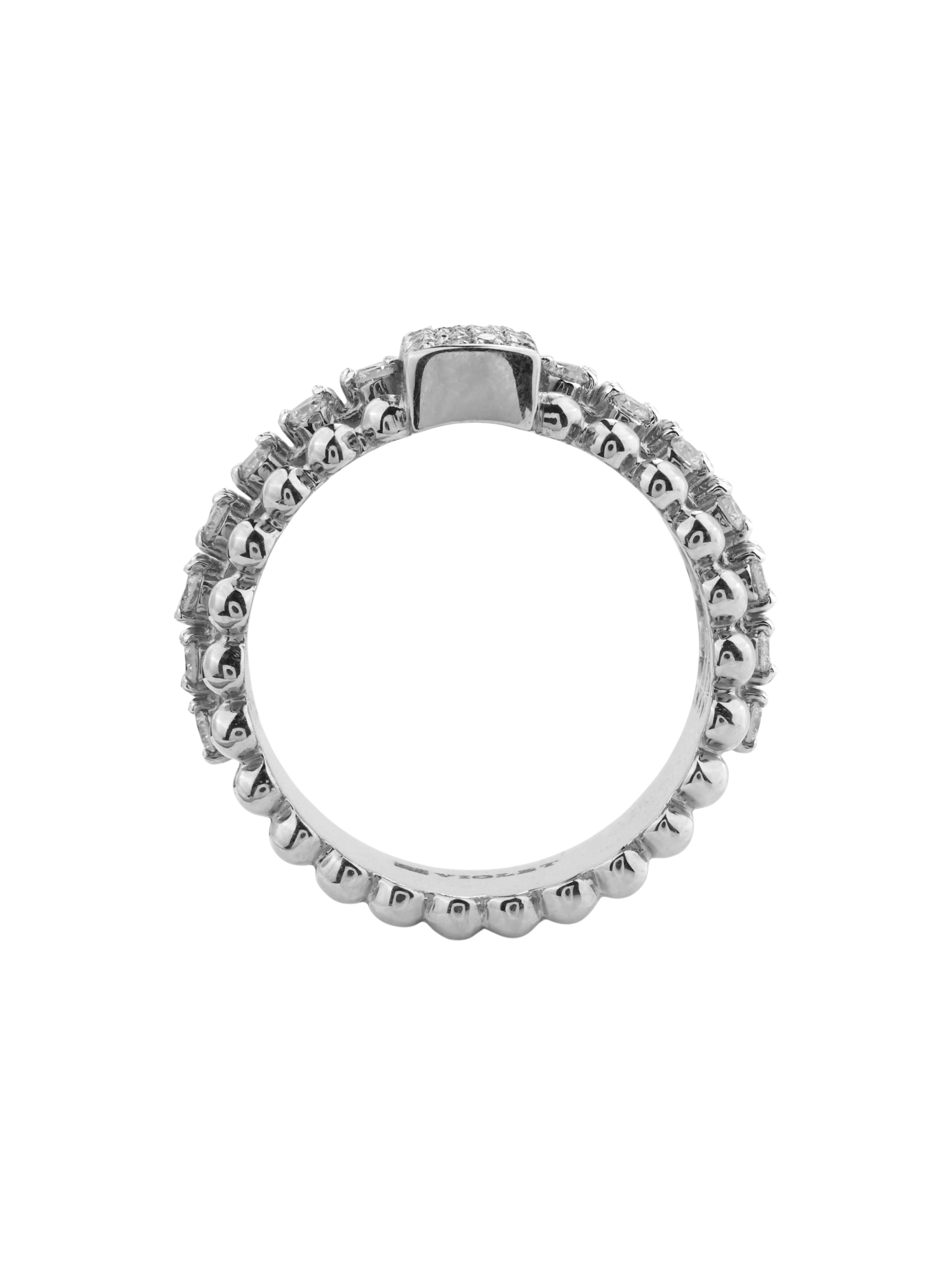 Вы можете выбрать подходящий размер из доступной линейки: 16.5, 17, 17.5, 18, 18.5 или 19. Ювелирное изделие выполнено из высококачественного белого золота, обеспечивающего долговечность и сохранение первозданного вида на долгие годы. Кольцо из белого золота с бриллиантами — это инвестиция в вашу коллекцию украшений, которая будет радовать вас своим премиальным видом каждый день.