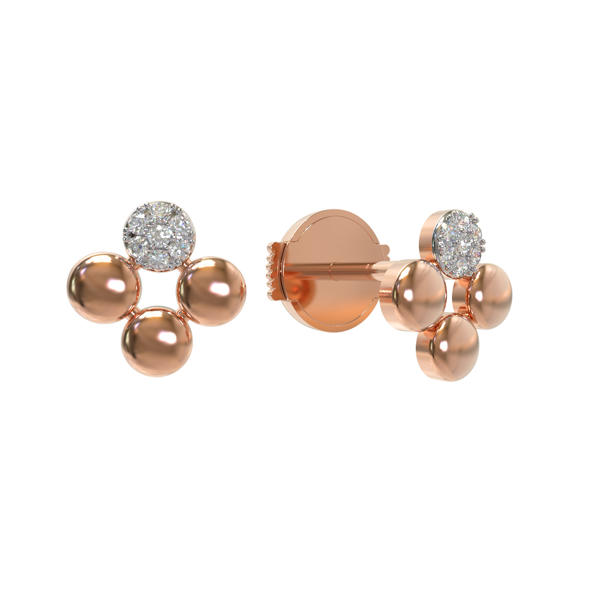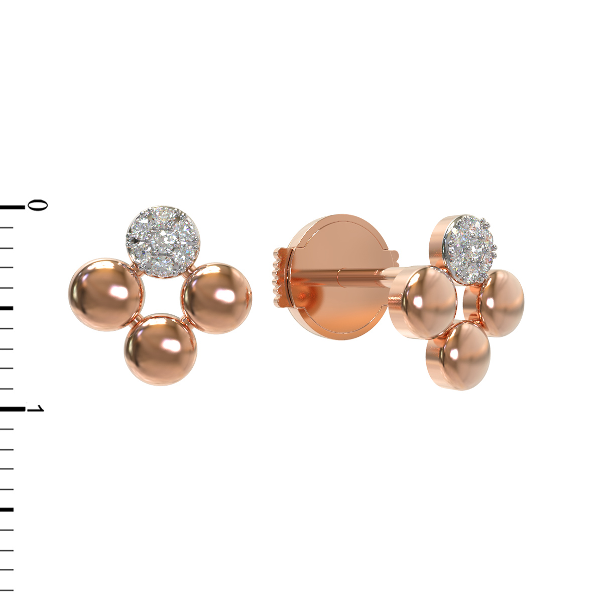 Композиция украшения включает 14 бриллиантов, которые приковывают взгляд своим ярким блеском. Белый цвет вставок эффектно контрастирует с красным металлом, создавая утонченный визуальный акцент. Круглая форма вставок выбрана неслучайно — она подчеркивает симметрию и чистоту линий каждой детали. Полированные золотые сферы, дополняющие дизайн, придают серьгам объем и динамику, превращая их в завершенный ювелирный ансамбль.