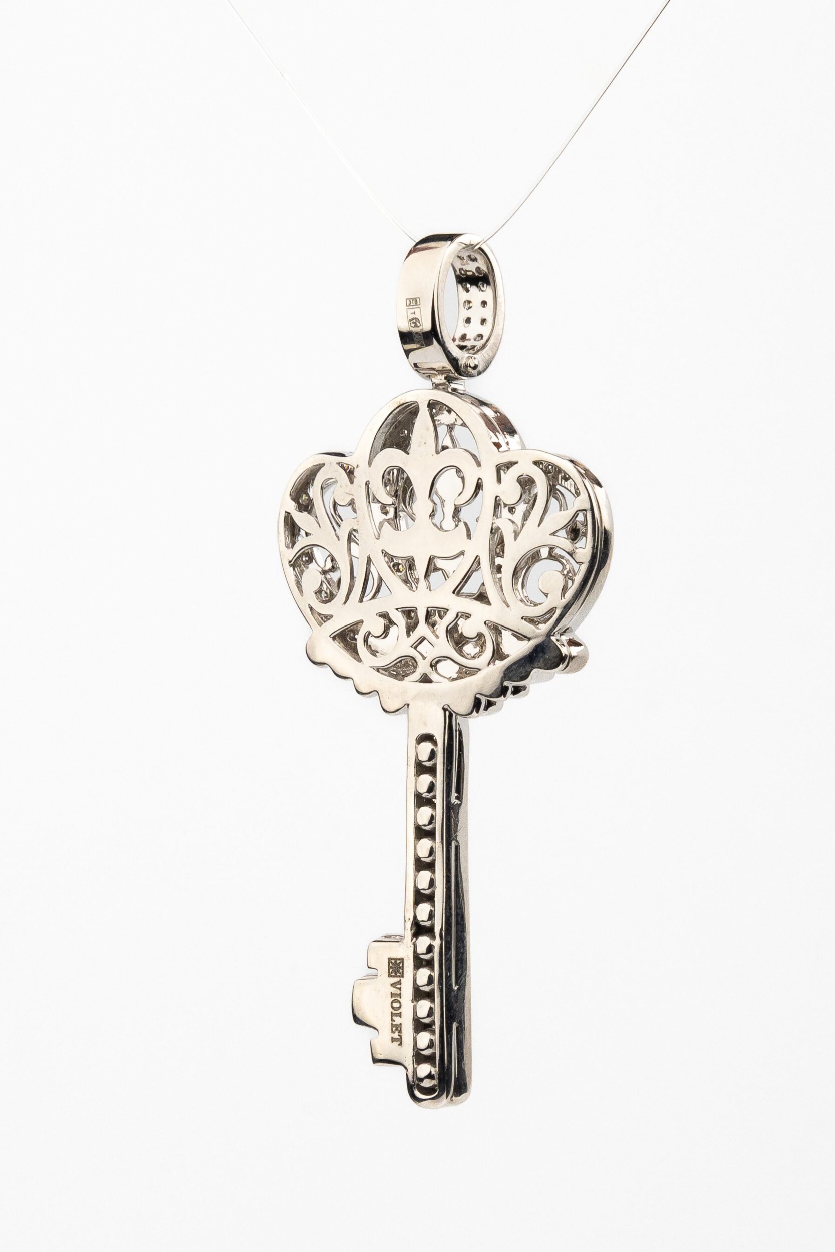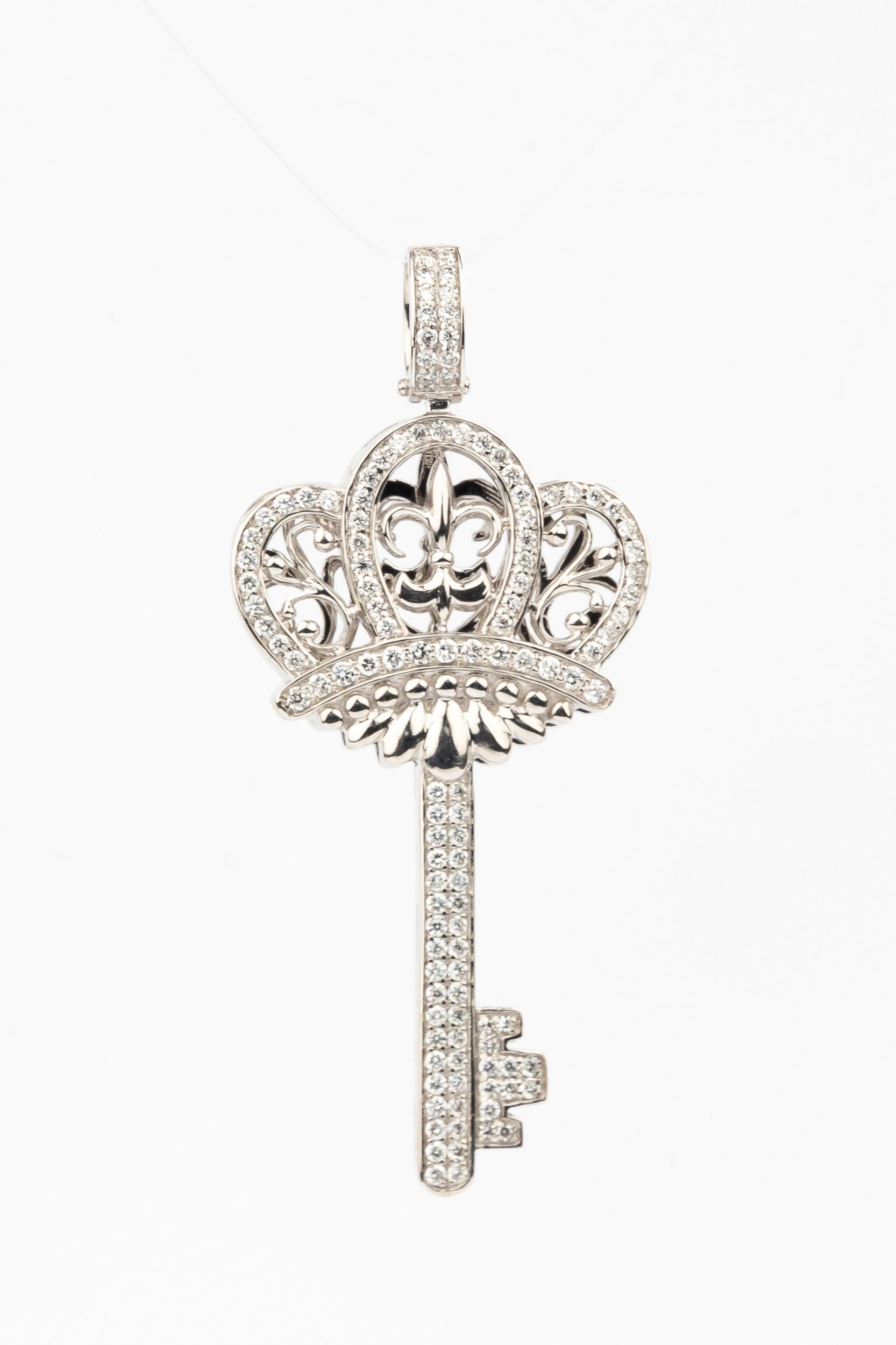 Универсальность дизайна позволяет носить это изделие как женщинам, так и мужчинам. Подвеска легко вписывается в статусные образы, становясь тем самым финальным штрихом, который говорит о внимании к деталям. Белое золото и бриллианты — классическое сочетание, которое никогда не выходит из моды и сохраняет свою ценность. Выбирая данную модель из коллекции De Luxe Бриллианты — Keys, вы приобретаете аксессуар, способный стать семейной реликвией и неизменным спутником ваших самых торжественных моментов.
