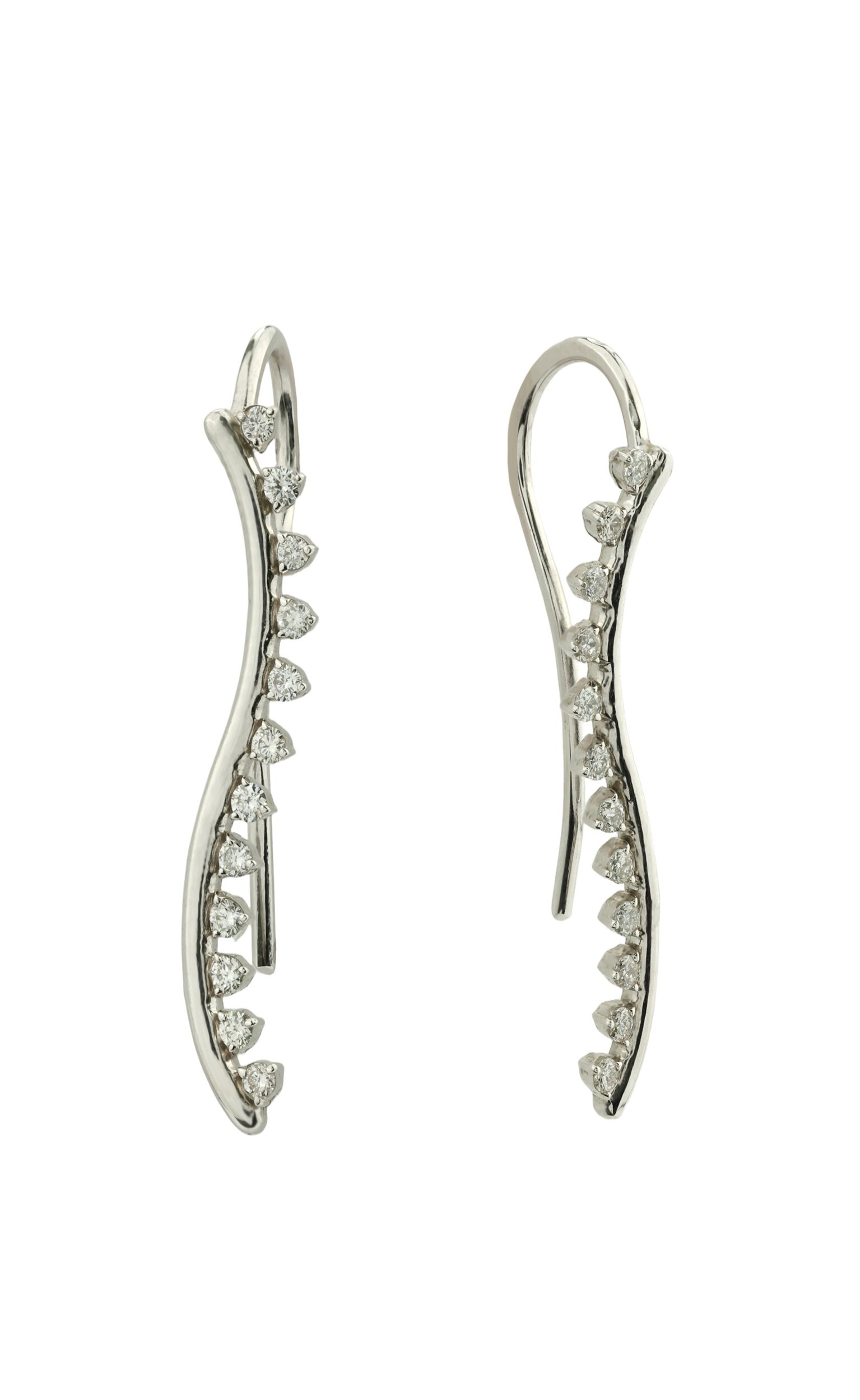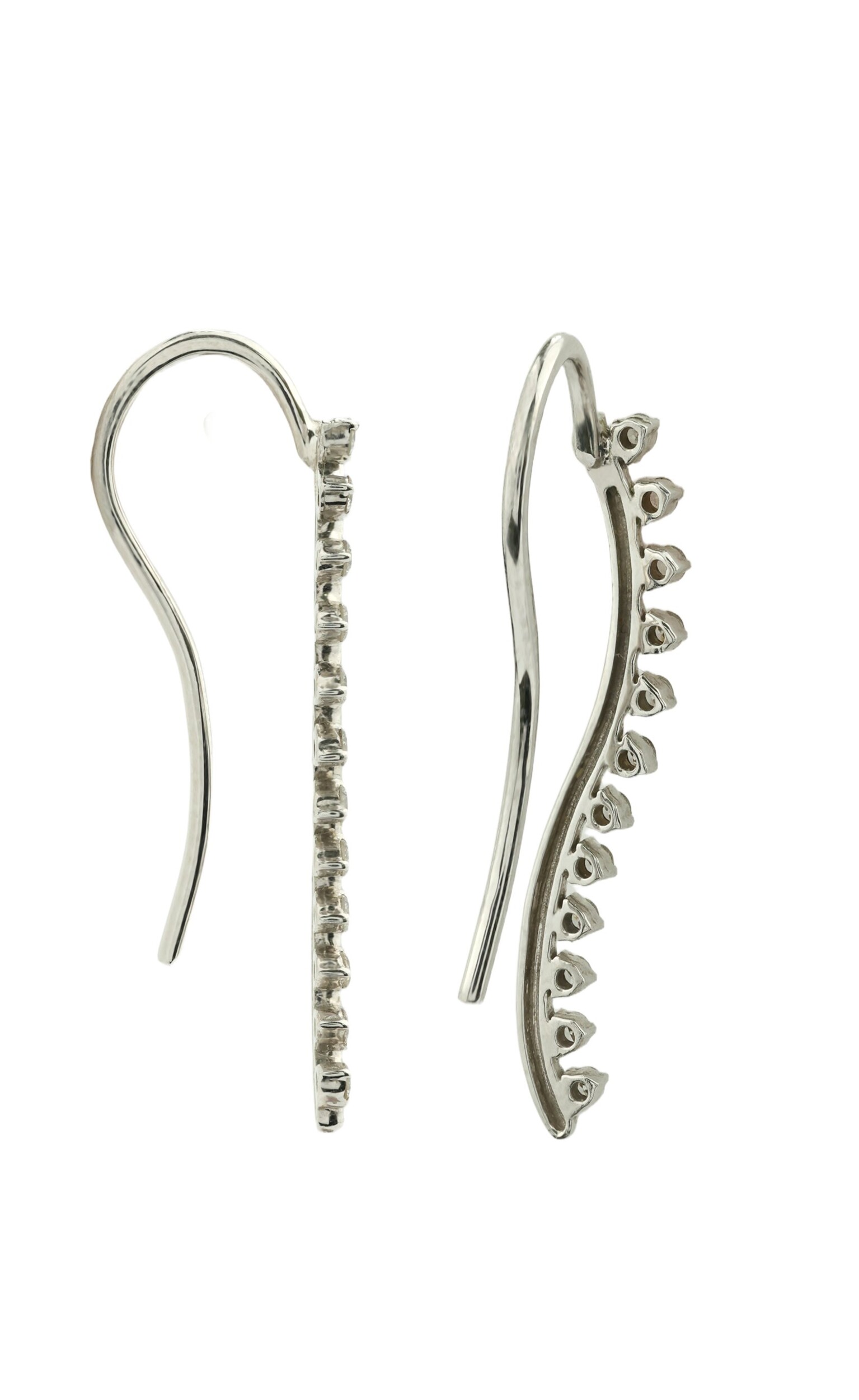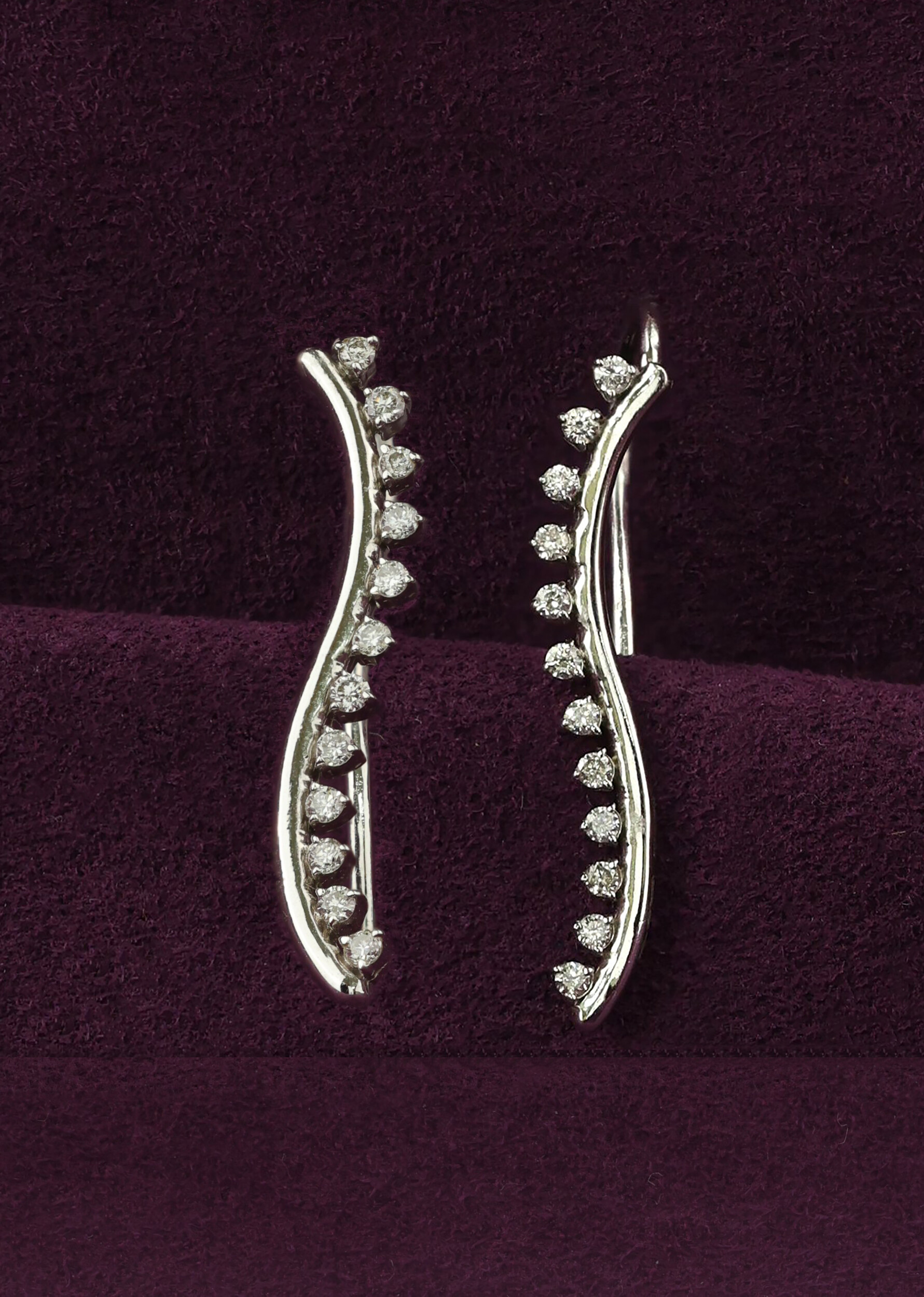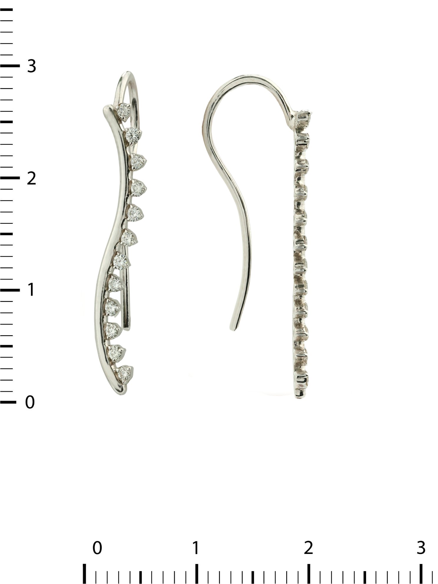 Элегантные серьги из белого золота 585 пробы станут изысканным акцентом вашего образа, подчеркивая безупречный вкус и статус. Это украшение из коллекции De Luxe Бриллианты — Cashmere выполнено в утонченном дизайне, который плавно повторяет естественные линии, придавая ювелирному изделию динамику и грацию. Драгоценный металл холодного оттенка служит идеальной оправой для 24 сияющих бриллиантов, инкрустированных по всей длине декоративного элемента. Камни круглой формы отличаются благородным белым блеском, который эффектно играет при каждом вашем движении.
