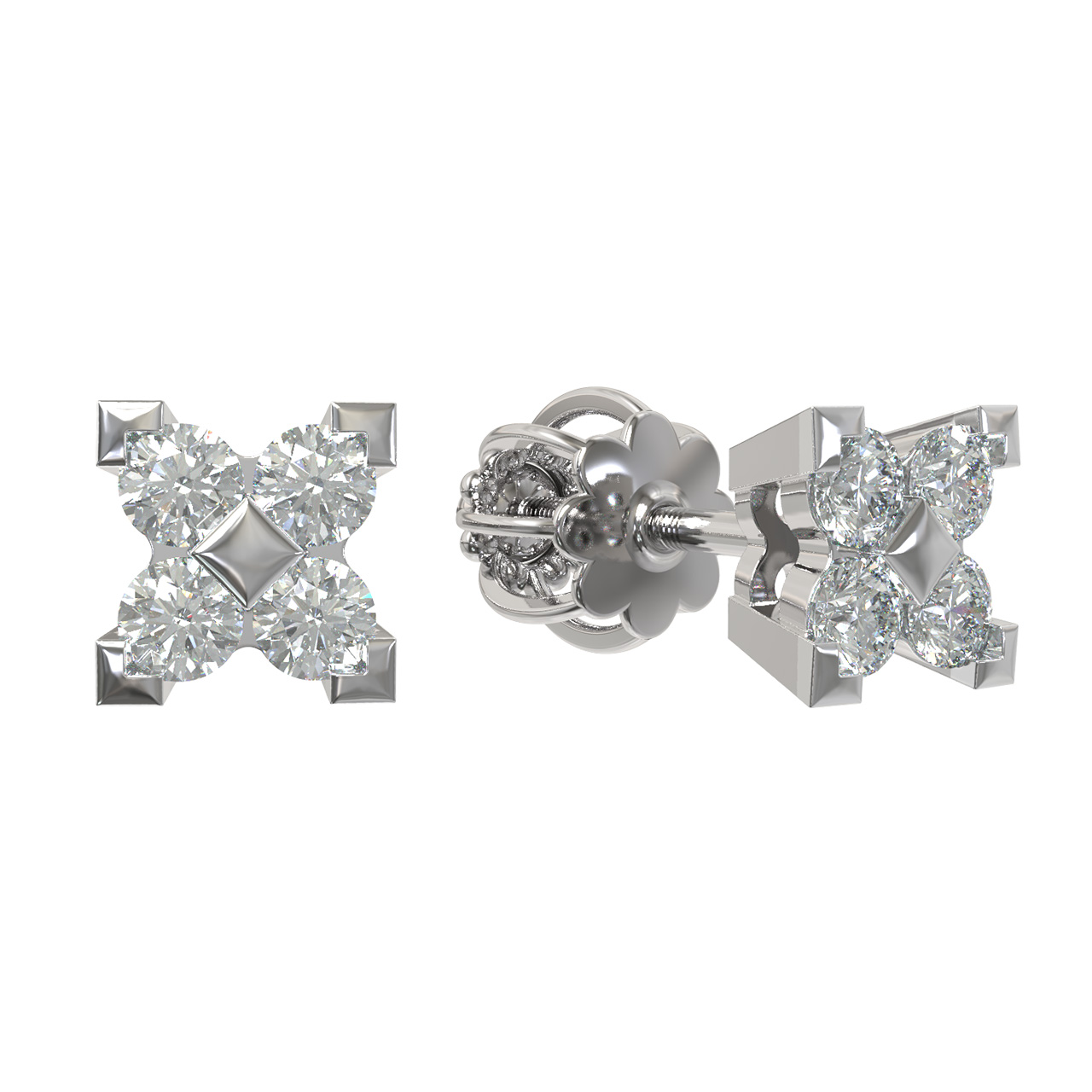 Серьги из белого золота 585 пробы из коллекции De Luxe Бриллианты — Podium — это воплощение лаконичной роскоши и безупречного стиля. Дизайн изделия объединяет строгость геометрических форм и сияние драгоценных камней, создавая гармоничный образ, который подчеркнет ваш статус. Каждая серьга выполнена в форме изящного цветка, в центре которого расположено надежное крепление, а лепестки инкрустированы восемью ослепительными бриллиантами.