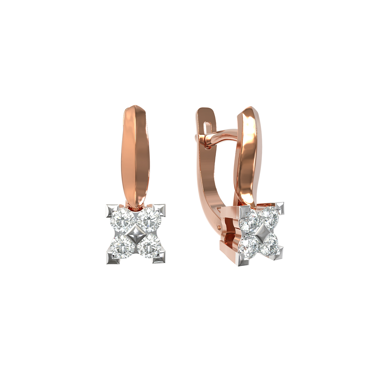 В центре композиции расположены 8 бриллиантов круглой огранки. Благодаря качественной закрепке, белые вставки максимально раскрывают свою игру света при каждом движении. Красный цвет материала оправы подчеркивает чистоту камней, придавая серьгам завершенный и статусный вид. Такое ювелирное изделие станет прекрасным дополнением к повседневному образу или украсит торжественный выход.