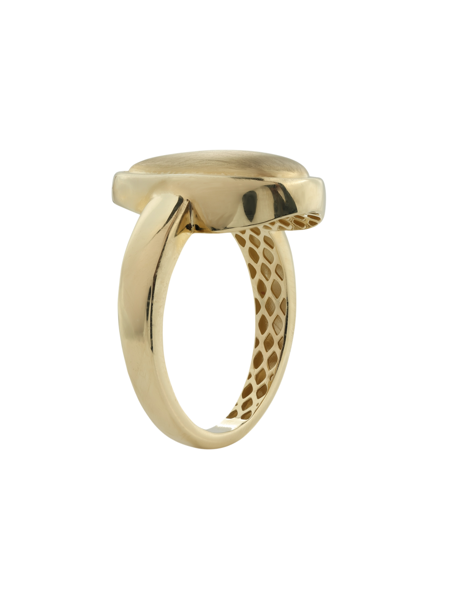Стильное кольцо из лимонного золота 585 пробы станет выразительным акцентом вашего образа. Изделие выполнено в современном стиле геометрия и принадлежит коллекции Vioretty — Geometria, которая вдохновляет на создание безупречных и запоминающихся ансамблей. Лаконичная форма украшения в виде капли с матовым финишем подчеркивает благородный оттенок драгоценного металла, а гладкая шинка обеспечивает комфортную посадку на пальце.