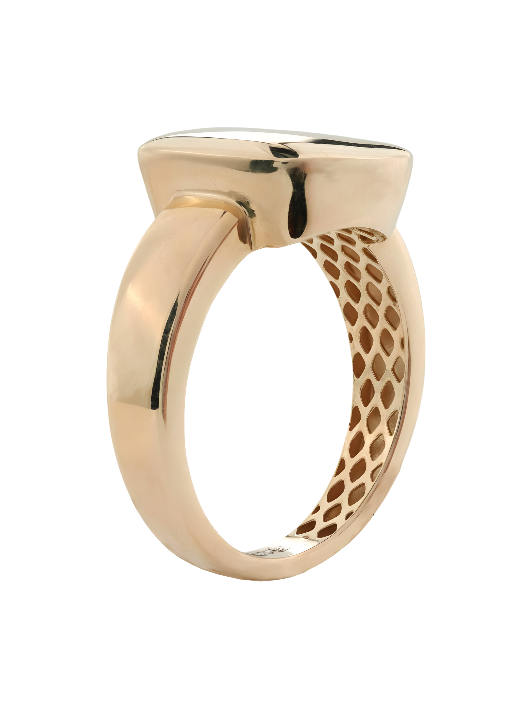 Стильное кольцо из красного золота 585 пробы из коллекции Vioretty — Geometria станет безупречным акцентом в вашем повседневном или вечернем образе. Лаконичный дизайн в стиле геометрия делает это украшение универсальным аксессуаром, который идеально дополнит как женский, так и мужской гардероб. Гладкая, отполированная до зеркального блеска поверхность кольца подчеркивает благородный оттенок красного золота, а оригинальная внутренняя часть шинки с сетчатым узором добавляет изделию особой эстетики и комфорта.