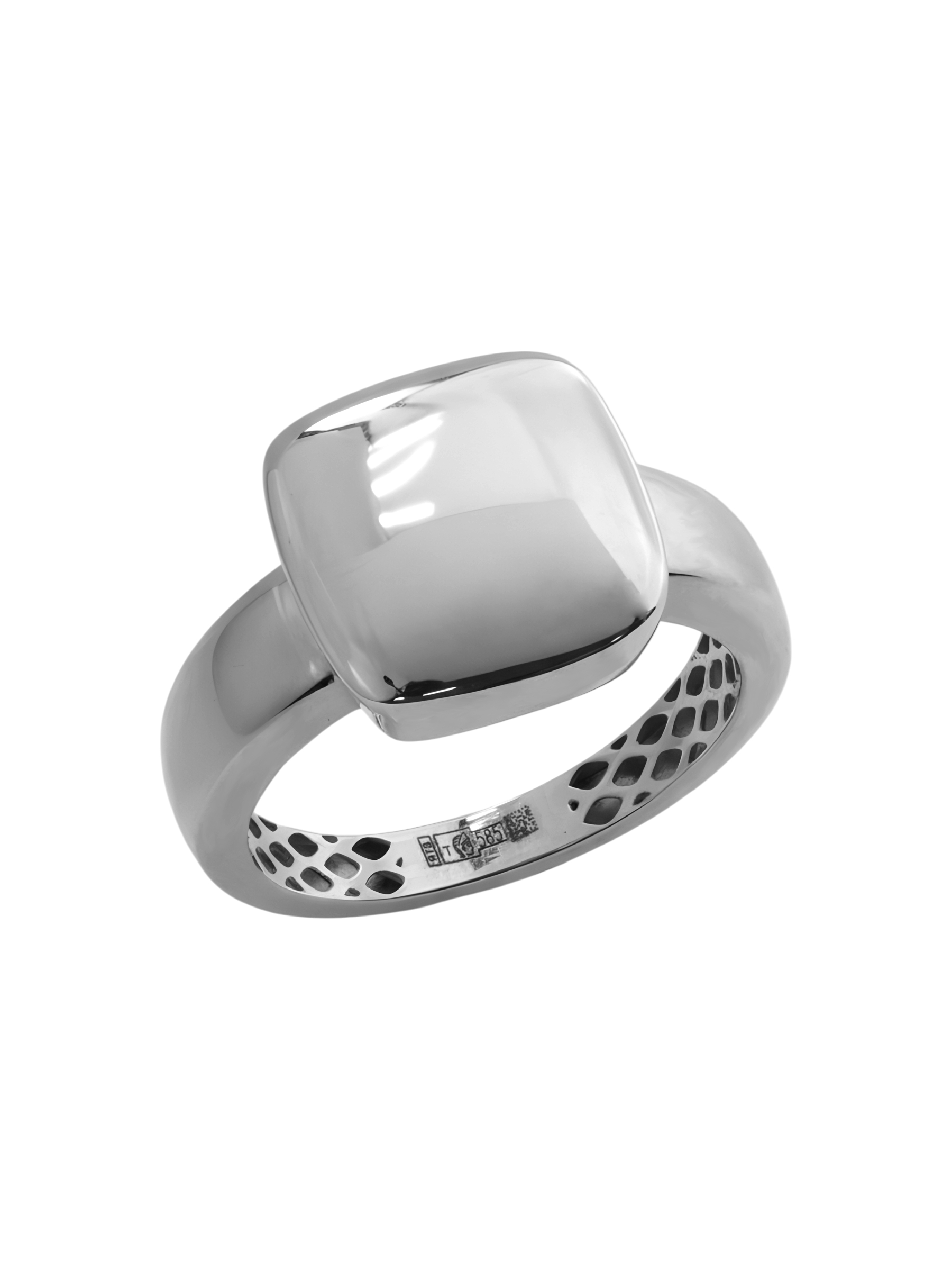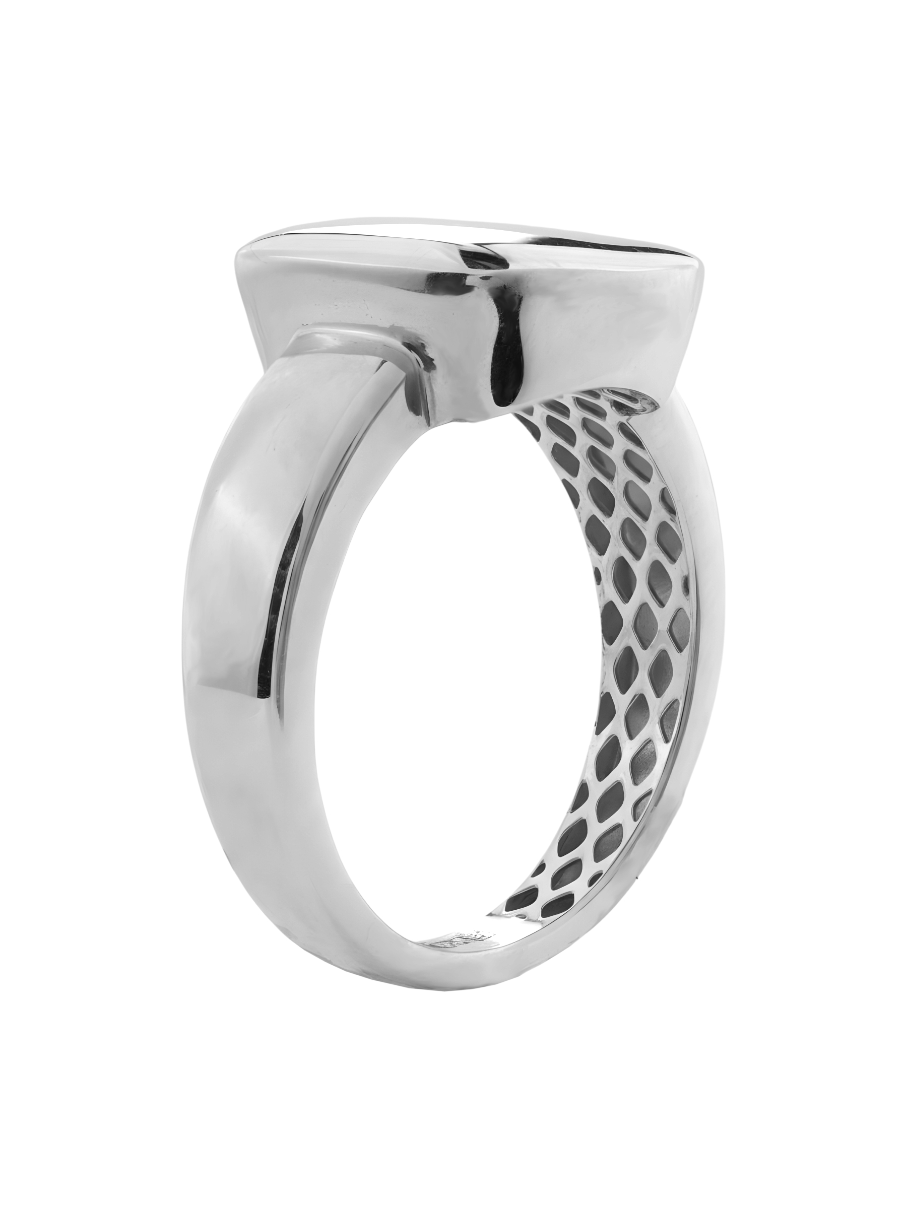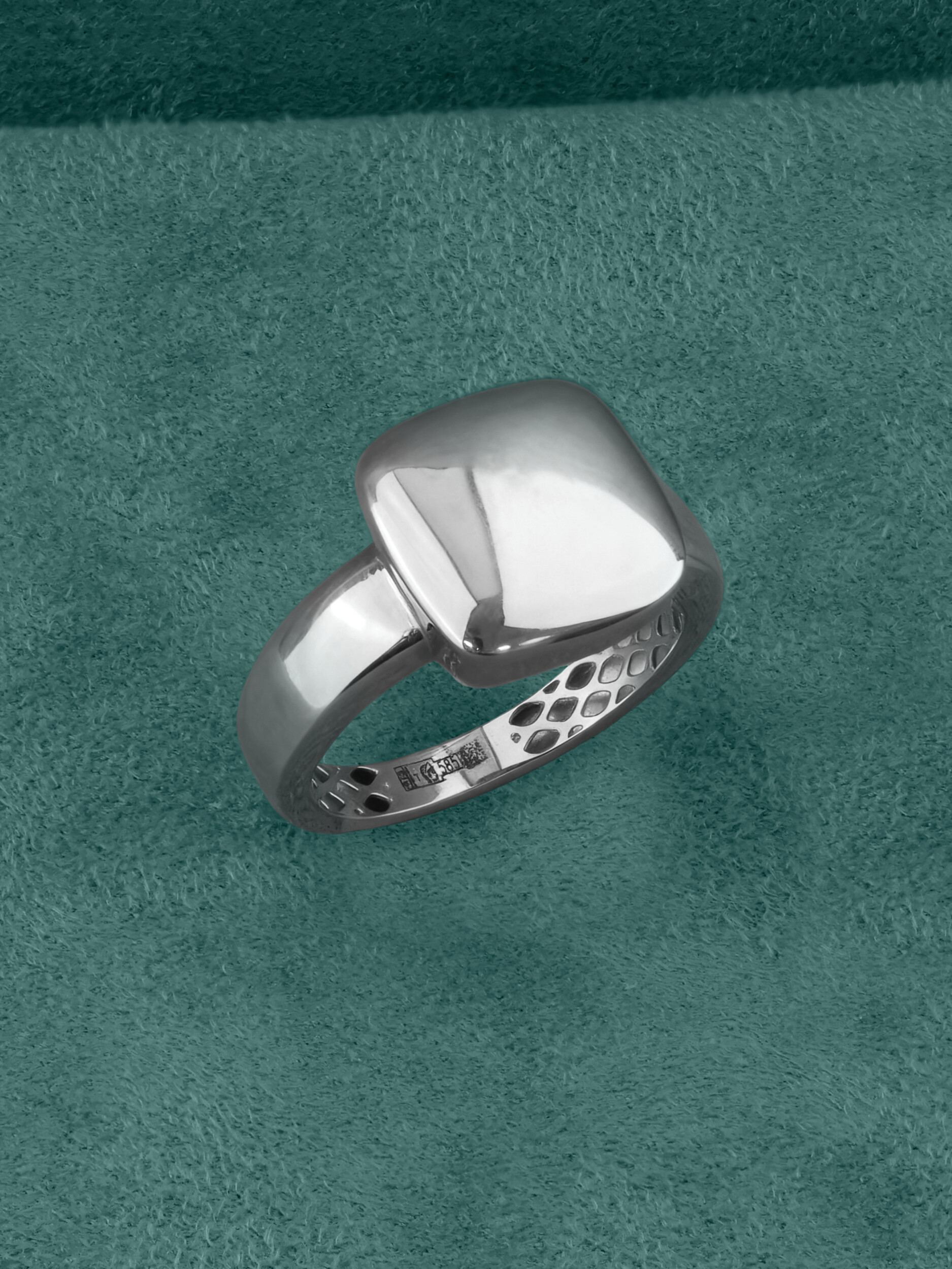 Данная модель создана для тех, кто ценит универсальность и статусность. Благодаря своему сдержанному стилю, это кольцо одинаково гармонично дополнит как женский, так и мужской гардероб, позволяя создавать уникальные комбинации и сочетания. Кольцо выполнено из качественного белого золота, что гарантирует долговечность и сохранение привлекательного внешнего вида при ежедневном ношении. Внутренняя поверхность изделия имеет характерную проработку, подчеркивающую ювелирную точность исполнения.