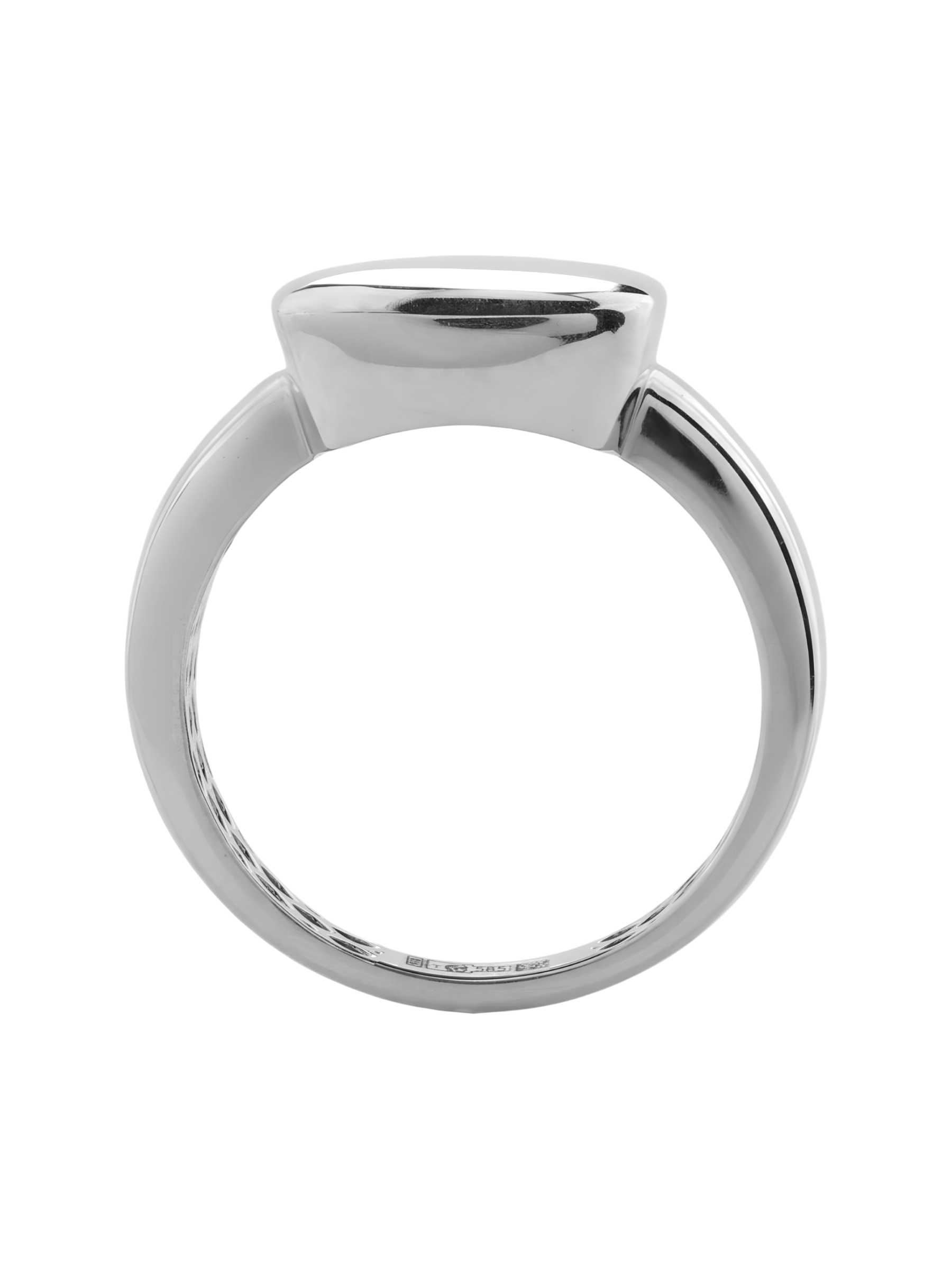 Стильное и лаконичное кольцо из белого золота 585 пробы станет безупречным акцентом в вашем повседневном или вечернем образе. Украшение выполнено в актуальном геометрическом дизайне, подчеркивающем чистоту линий и благородный блеск драгоценного металла. Гладкая полированная поверхность центрального элемента придает изделию современный и минималистичный вид, который идеально вписывается в концепцию коллекции Vioretty — Geometria.
