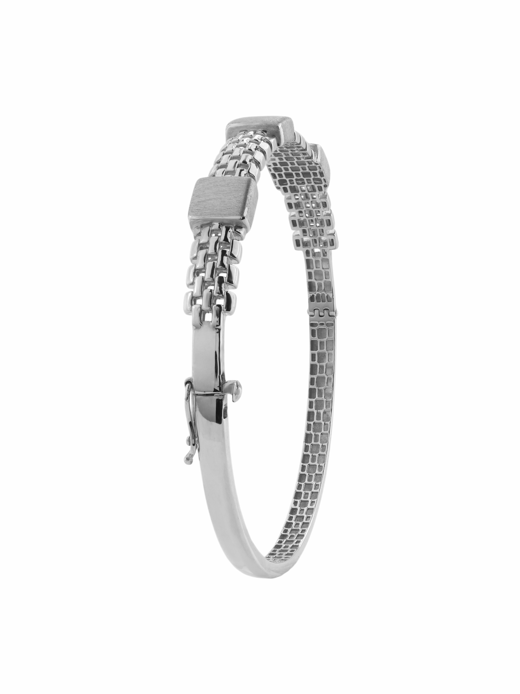 Мы создали этот браслет для тех, кто ценит чистоту форм и качество исполнения. Надежная конструкция и премиальный материал гарантируют долговечность, позволяя носить это украшение долгие годы, не теряя его актуальности. Выбирая ювелирные изделия из белого золота, вы инвестируете в стиль, который никогда не выходит из моды. Этот браслет — выбор уверенных в себе людей, предпочитающих лаконичную роскошь в каждой детали своего образа.