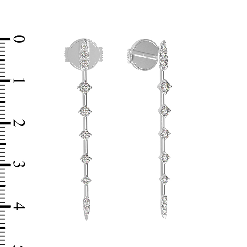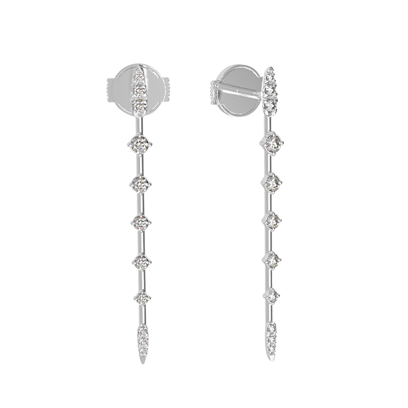 Особое внимание привлекает искусная инкрустация: серьги украшены 22 бриллиантами классической круглой формы. Белый цвет вставок гармонично сочетается с холодным сиянием белого золота, создавая единую, завершенную композицию. Чистота камней и мастерство огранки позволяют украшению играть светом при каждом повороте головы, придавая облику нотки роскоши и утонченного шика. Эти серьги — выбор тех, кто ценит минимализм, выраженный в дорогих материалах и высоком качестве исполнения. Универсальность модели делает ее идеальным спутником как для торжественного выхода, так и для статусных повседневных образов, подчеркивая индивидуальность и уверенность в себе.