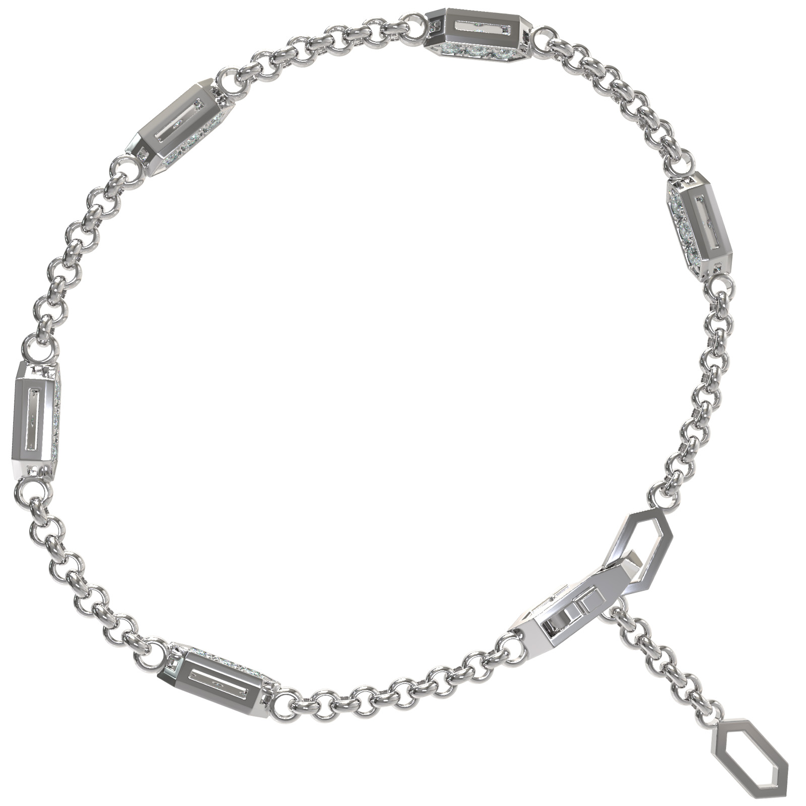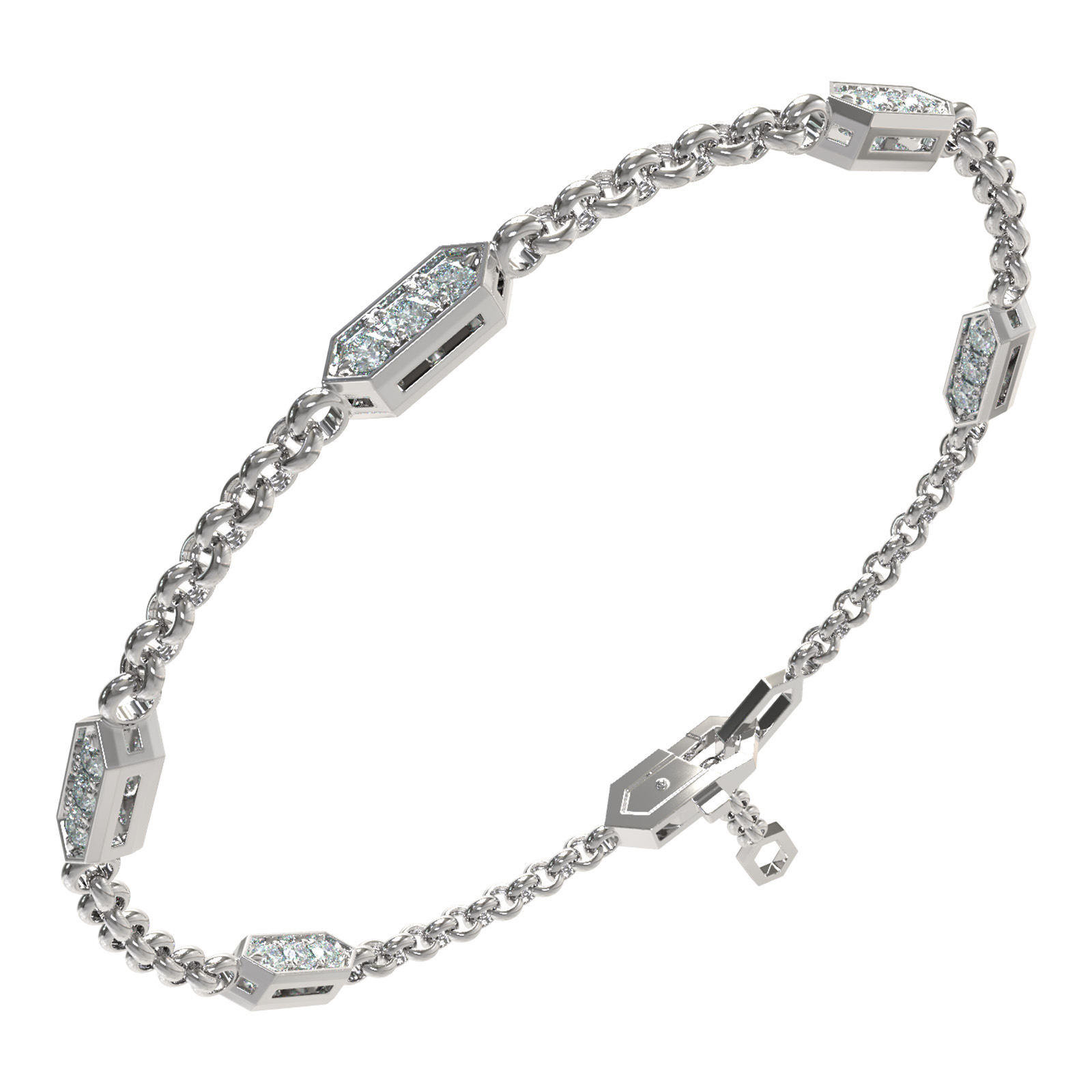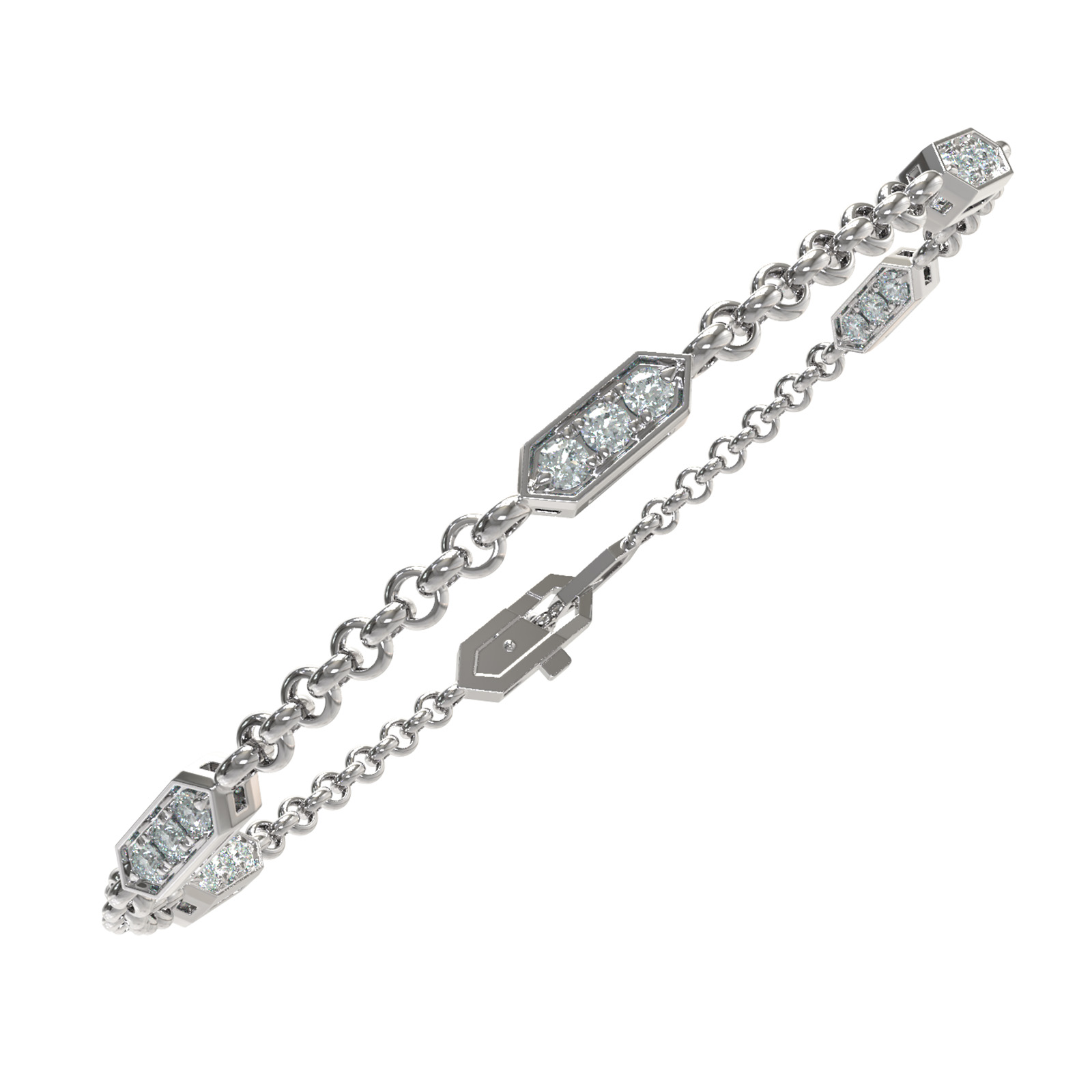 Центральным элементом дизайна выступают 30 бриллиантов круглой формы с чистым белым цветом, которые мягко переливаются при каждом движении. Продуманная конструкция звеньев создает динамичный акцент на запястье, делая браслет выразительным, но при этом лаконичным аксессуаром. Универсальный дизайн позволяет носить данное изделие как женщинам, так и мужчинам, что делает его отличным выбором для создания парных украшений или дополнения комплекта.