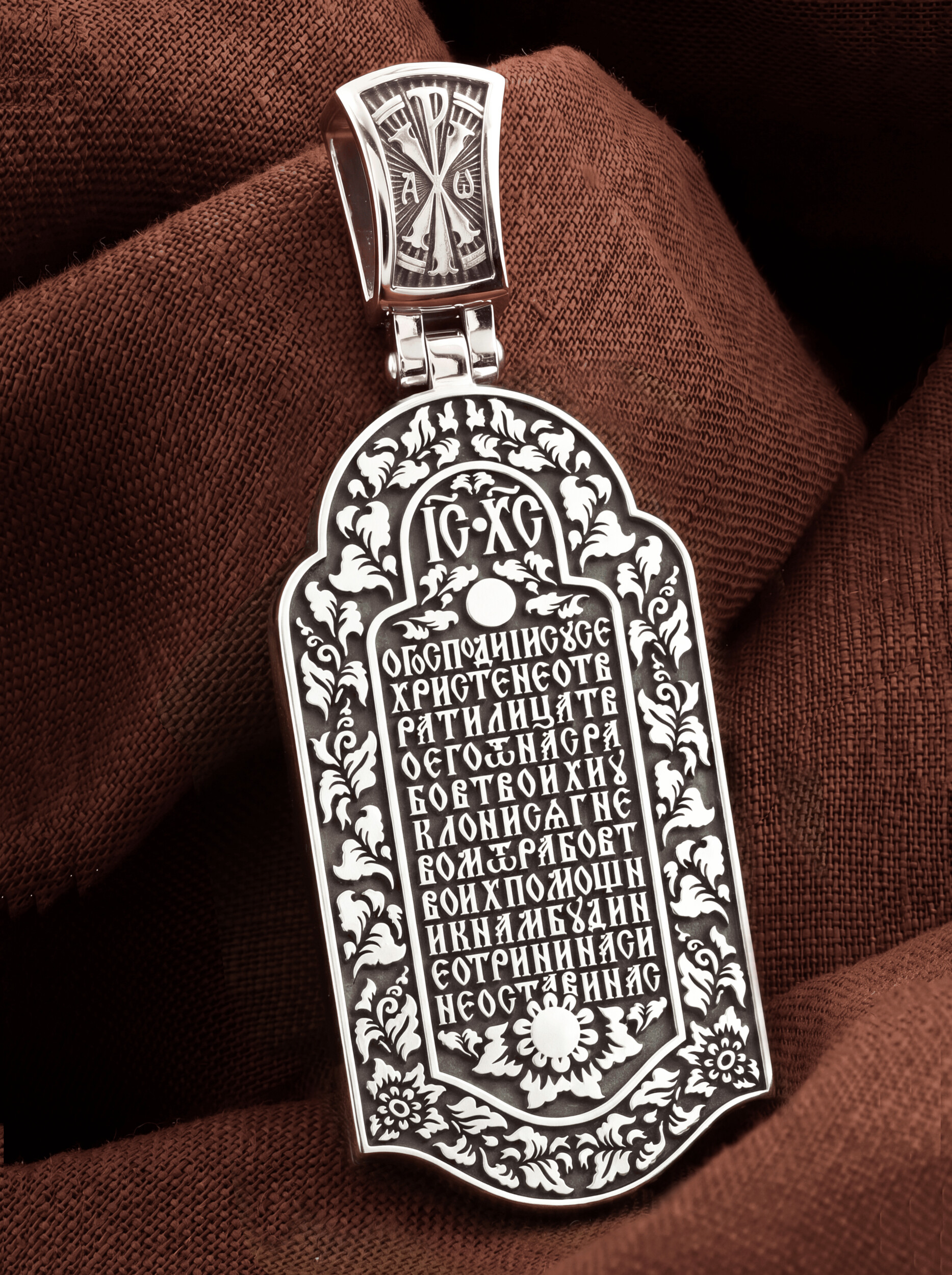 На обороте образка написана молитва: «О, Господи, Иисусе Христе! Не отврати лица Твоего от нас, рабов твоих (имена) и уклонися гневом от рабов Твоих: помошник нам буди, не отрини нас и не остави нас.»