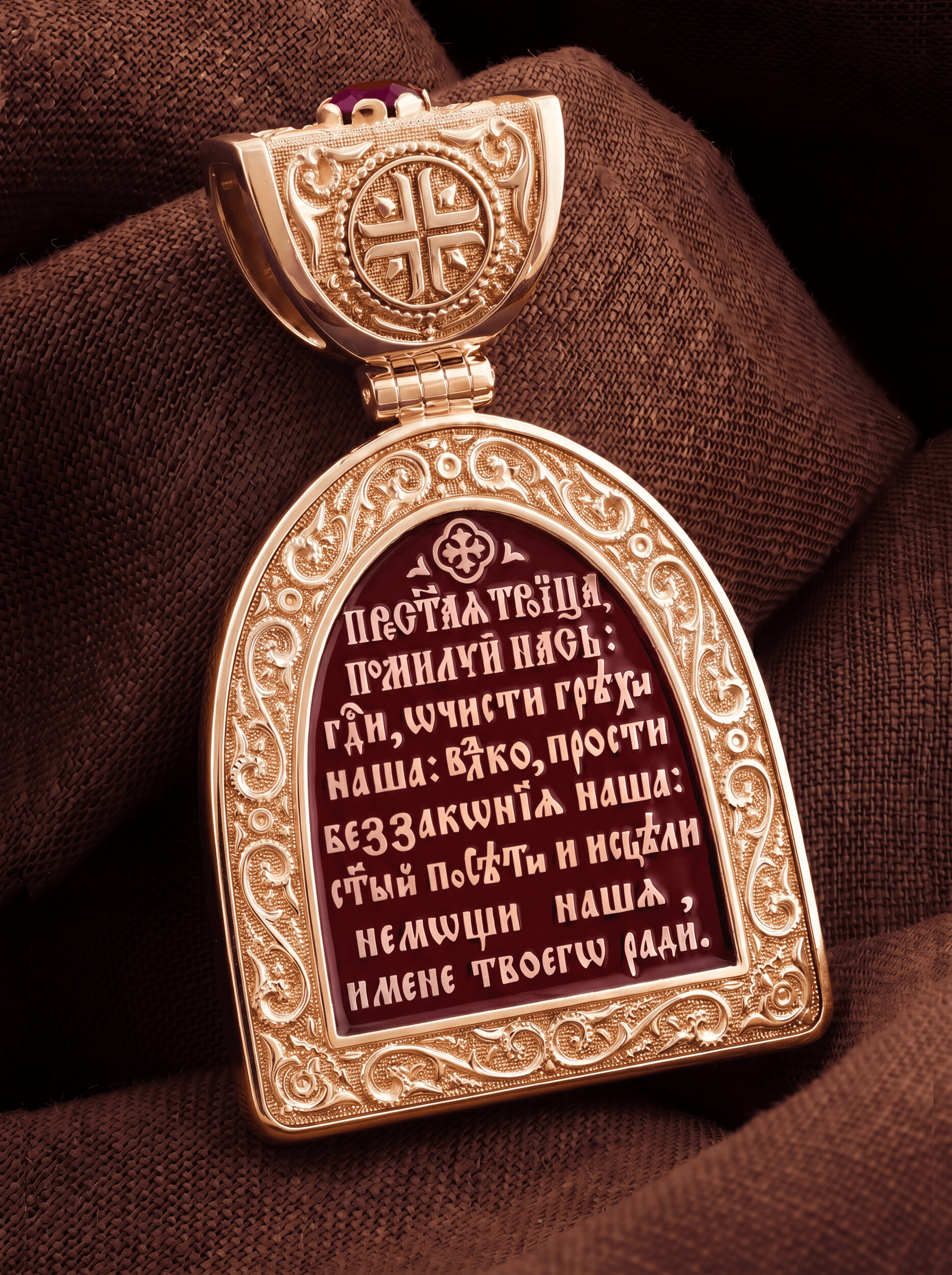 Образок из золота c эмалью и рубином