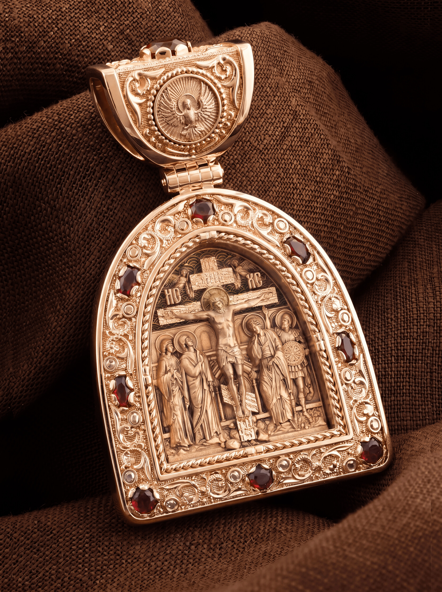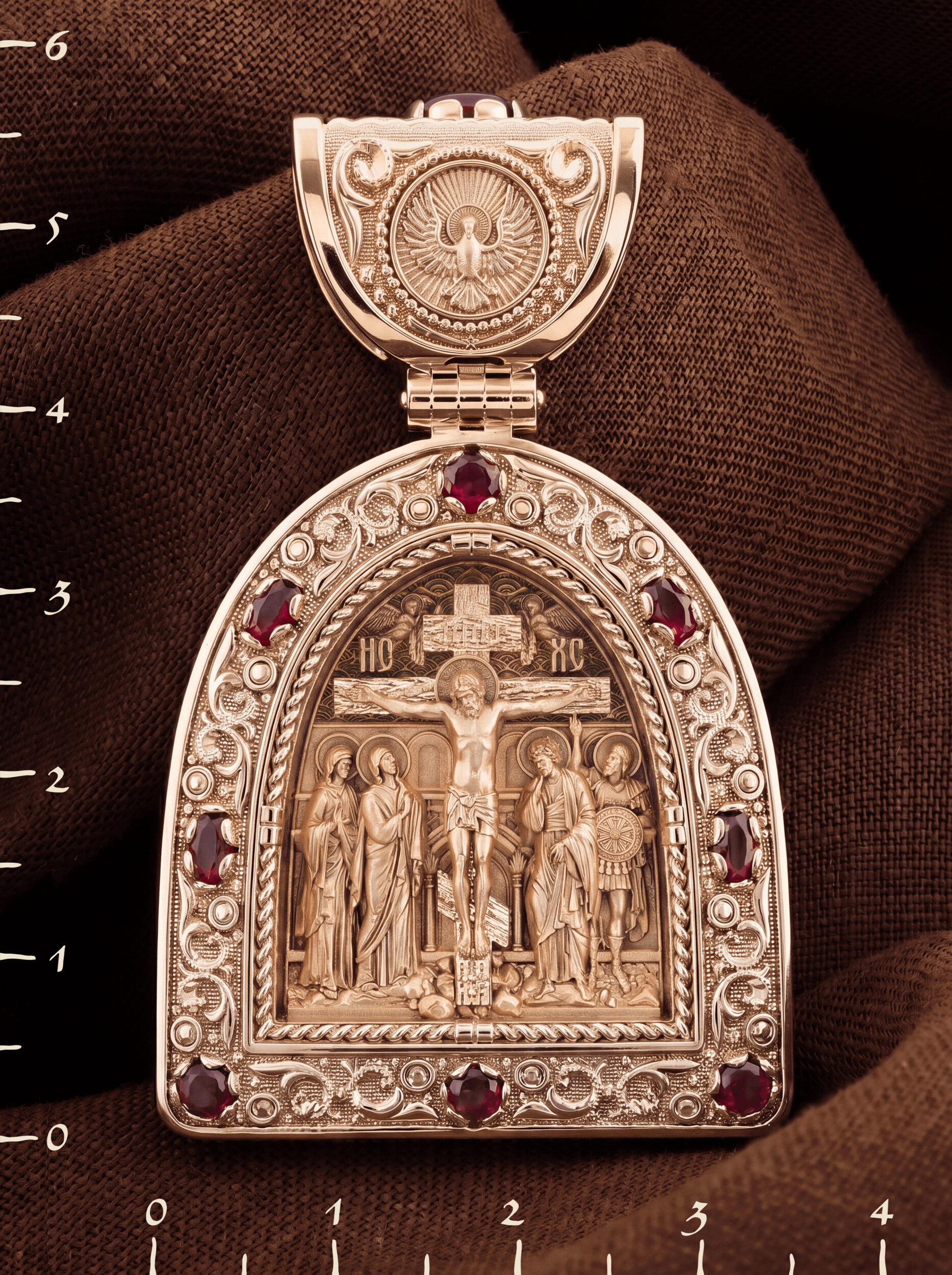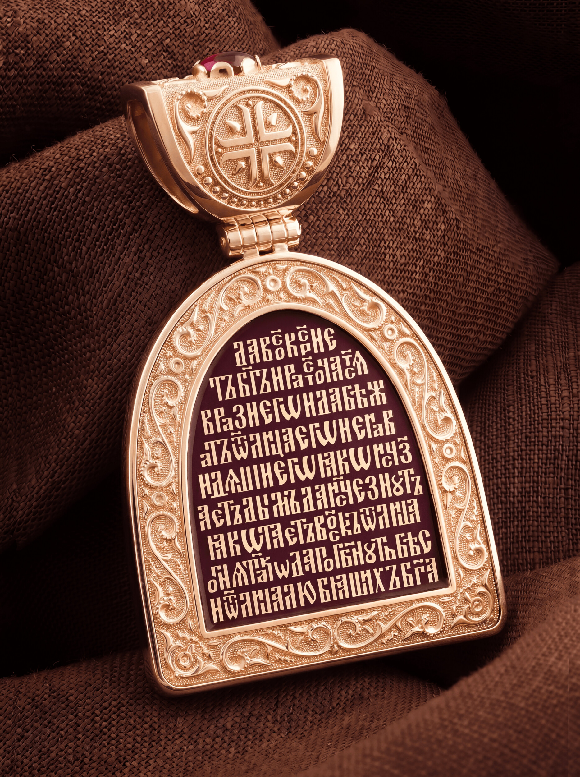 Образок из золота c эмалью и рубином