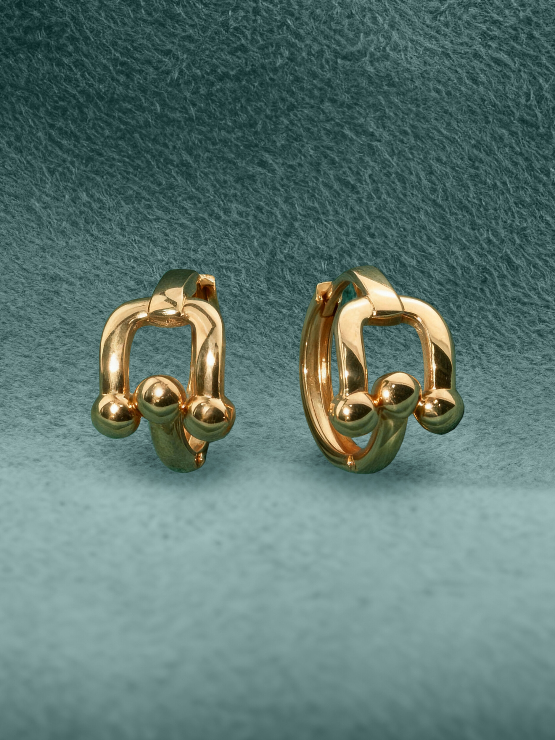 Дизайн этих серег сочетает в себе индустриальные мотивы и классическую элегантность. Геометричные формы, напоминающие звенья цепи, создают динамичный образ, который притягивает взгляд своей оригинальностью. Гладкая поверхность металла безупречно отражает свет, придавая украшению визуальную глубину и объем.