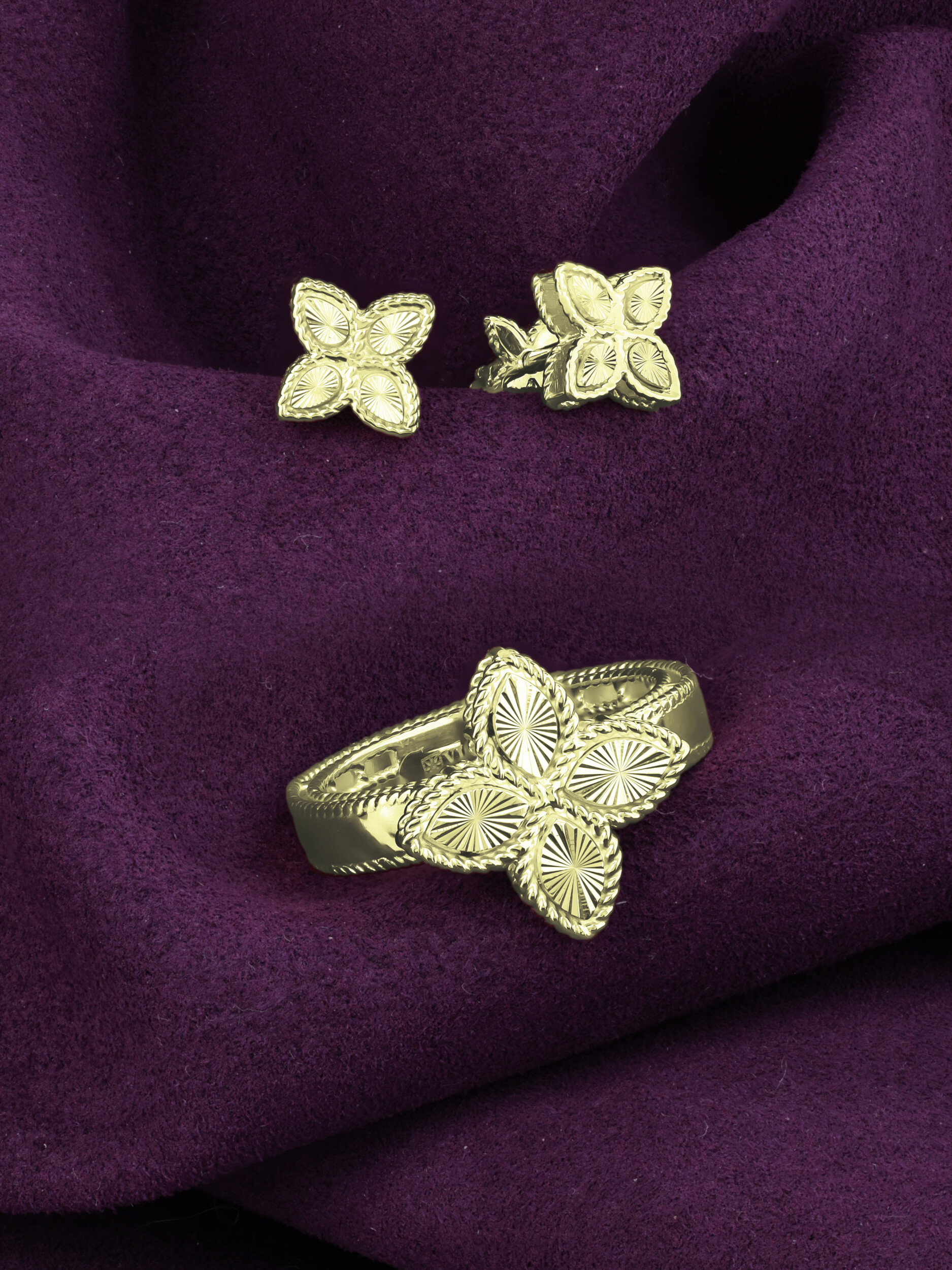 Серьги из лимонного золота из коллекции De Luxe — Венецианская принцесса представляют собой воплощение изящества и стиля. Это ювелирное изделие, выполненное в форме клевера, привлекает внимание своей лаконичностью и глубоким цветом материала. Лимонное золото 585 пробы обладает уникальным теплым сиянием, которое подчеркивает оригинальный дизайн с выразительной фактурной гравировкой. Каждое из четырех «лепестков» клевера детально проработано, создавая игру света при любом освещении.