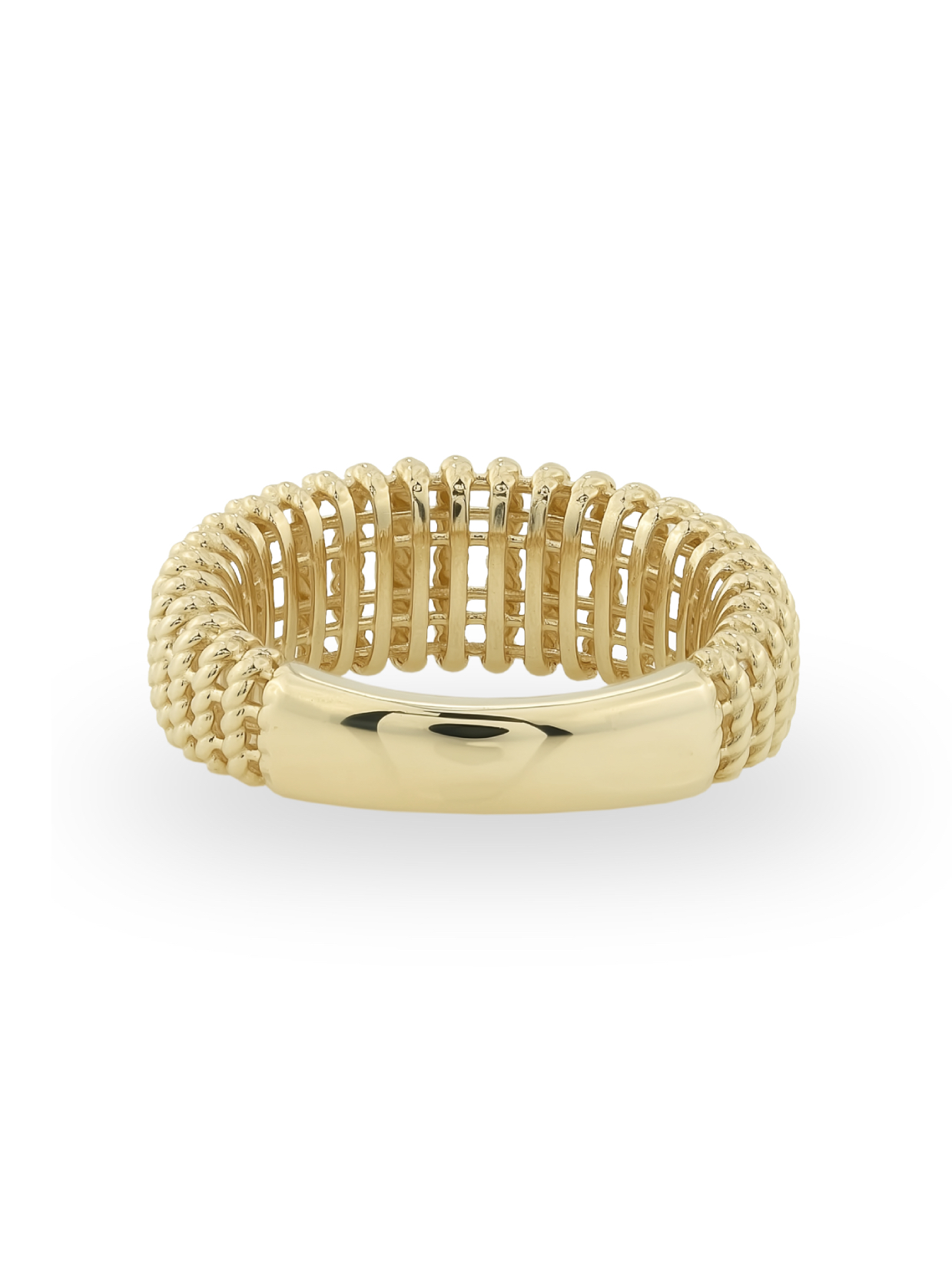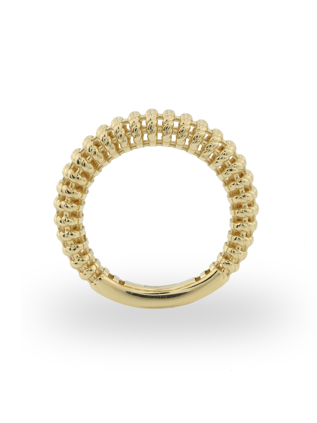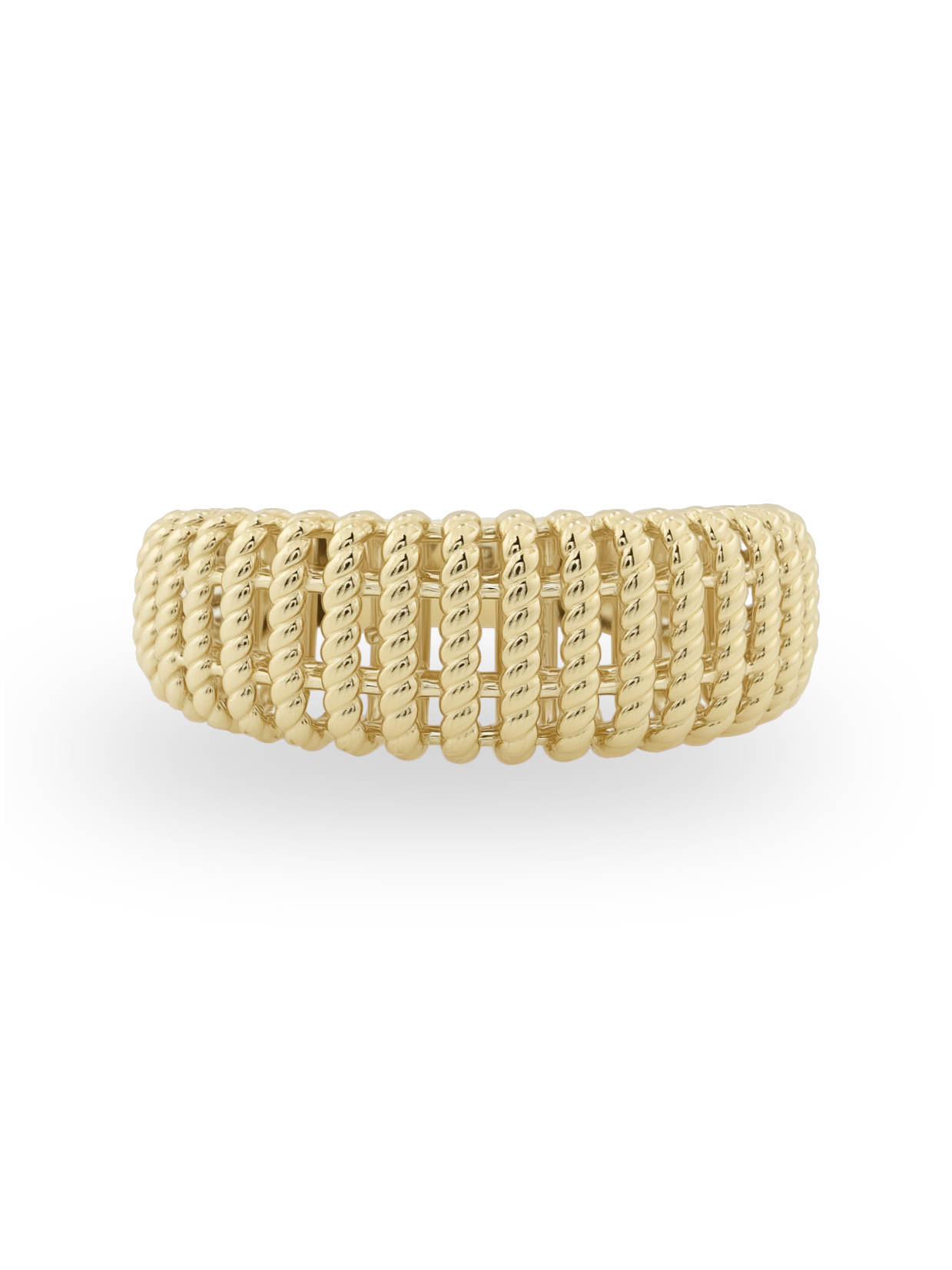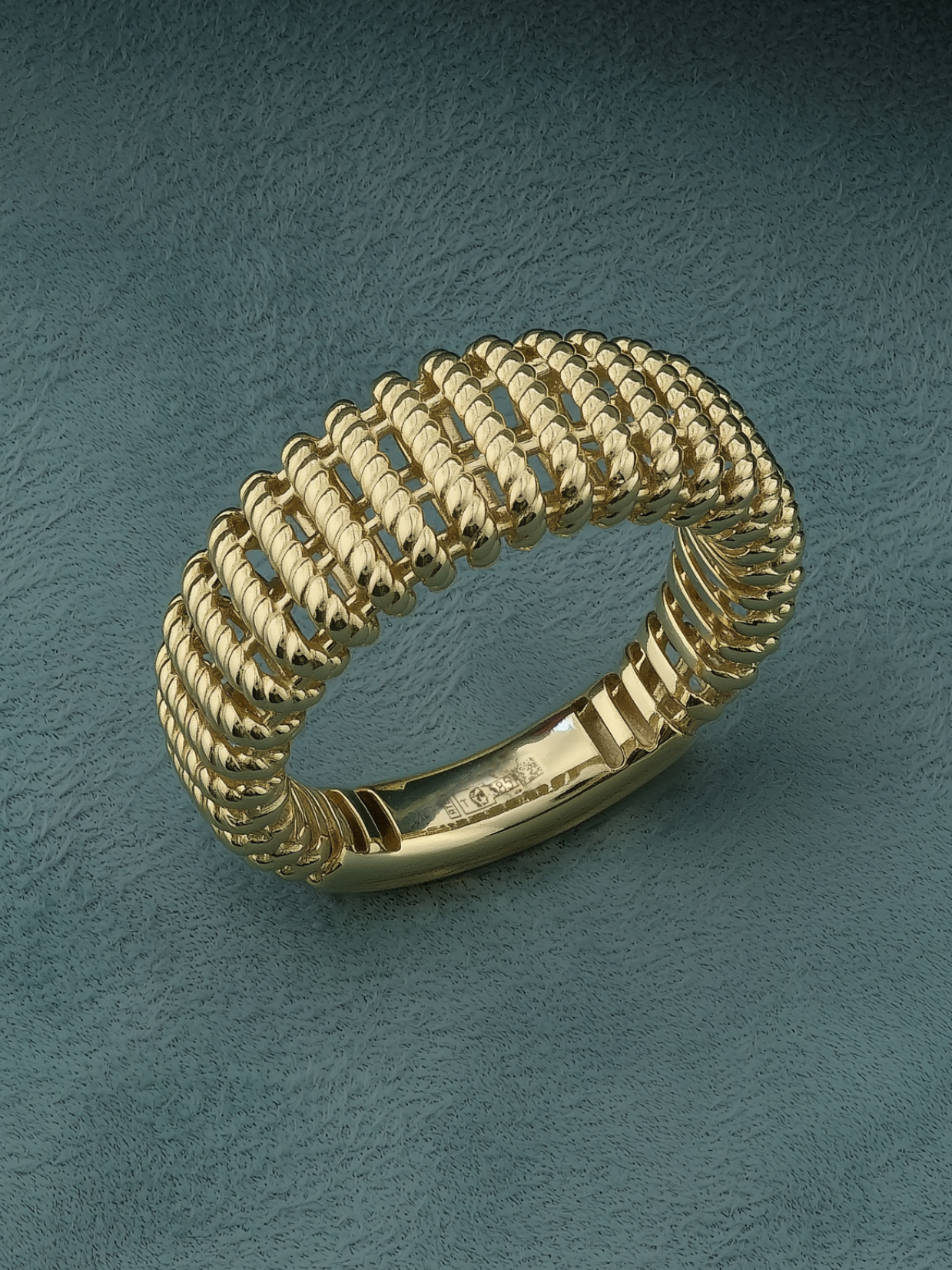 Изысканное кольцо из лимонного золота 585 пробы — яркий акцент, который подчеркнет ваш безупречный вкус. Дизайн украшения, представленного в коллекции Vioretty — Cavo, вдохновлен актуальными трендами ювелирного искусства: фактурная, плетеная поверхность создает завораживающую игру света и объема, привлекая внимание к каждой детали изделия. Это стильное кольцо идеально подходит как для женщин, так и для мужчин, предпочитающих лаконичные, но выразительные аксессуары.