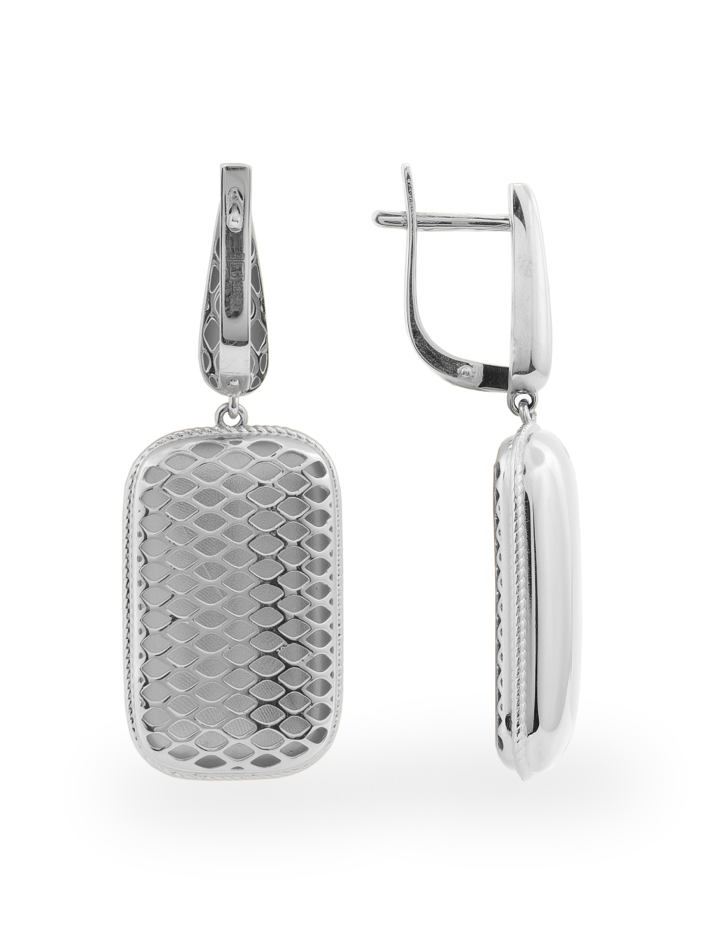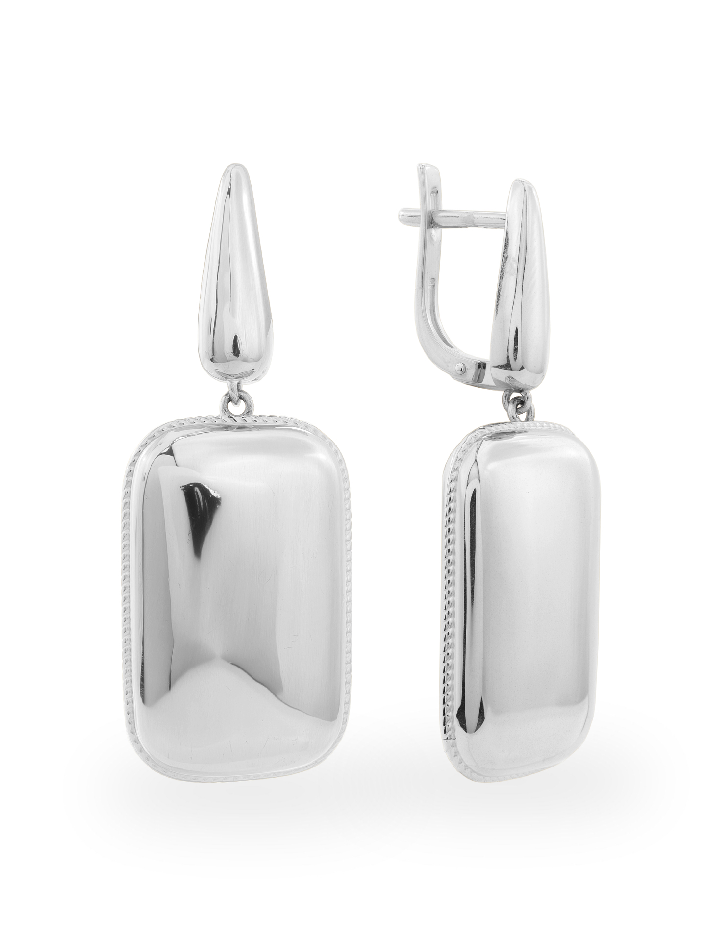 Серьги выполнены из белого золота 585 пробы. Конструкция украшения продумана таким образом, чтобы подчеркнуть динамику линий: гладкая, зеркальная поверхность подвесной части гармонично сочетается с надежным английским замком. Эти серьги созданы для тех, кто ценит в аксессуарах универсальность и индивидуальность. Дизайн в стиле Геометрия делает их акцентным, но при этом уместным элементом как строгого делового образа, так и вечернего выхода.