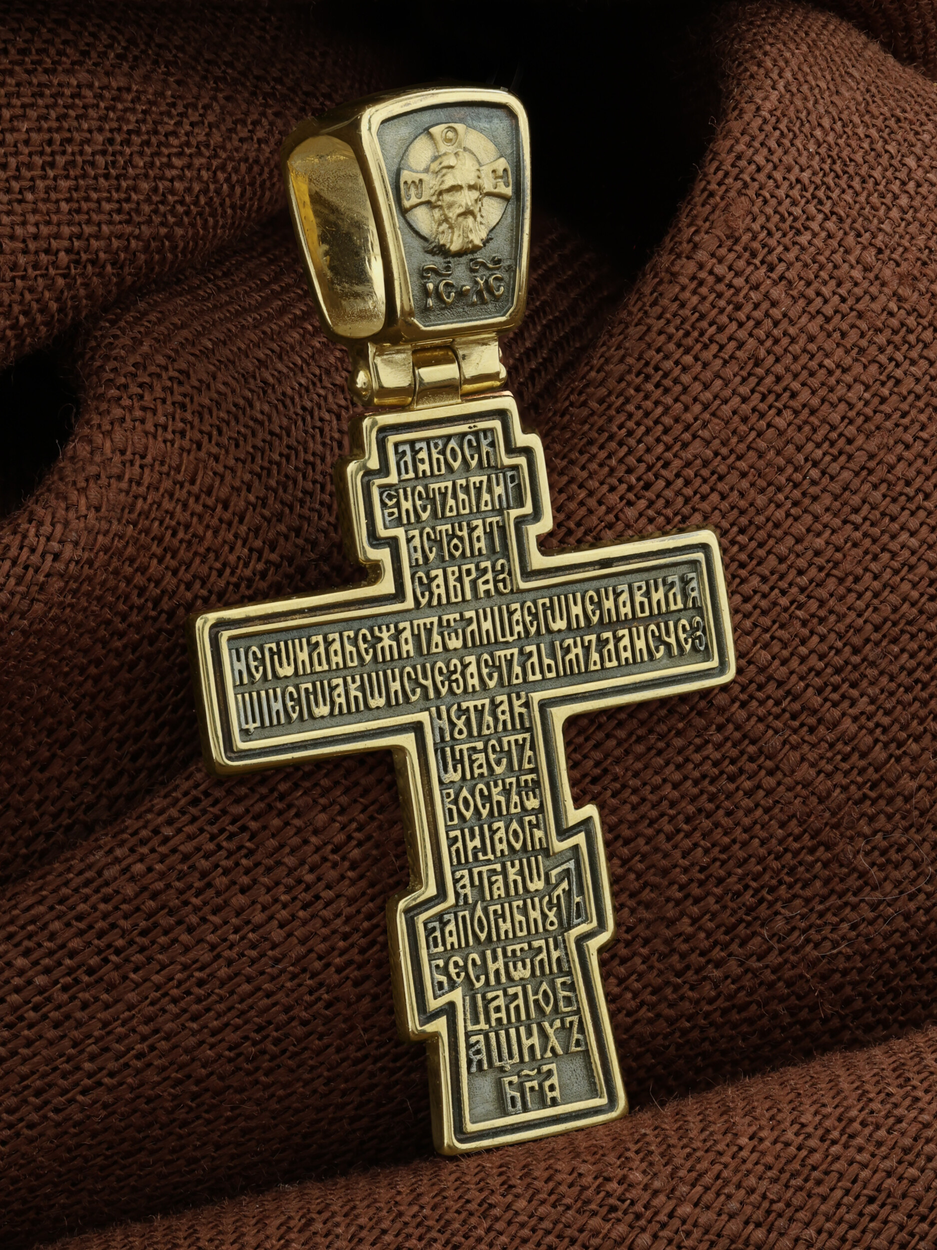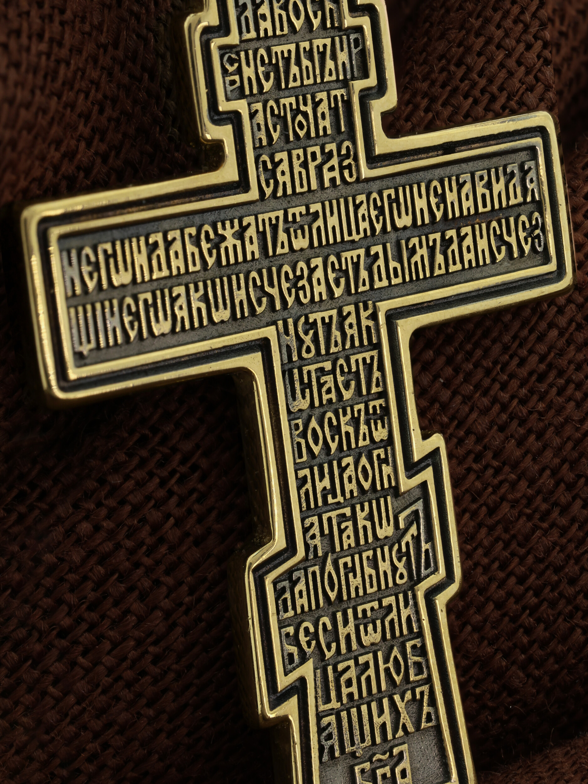 На обороте написаны начальные стихи оградительной молитвы Честному Кресту Господню. Эту молитву читают в опасности, а также носят при себе для защиты от злых сил: Да воскреснет Бог, и расточатся врази Его, и да бежат от лица Его ненавидящий Его. Яко исчезает дым, да исчезнут; яко тает воск от лица огня, тако да погибнут беси от лица любящих Бога и знаменующихся крестным знамением, и в веселии глаголющих: радуйся, Пречестный и Животворящий Кресте Господень, прогоняй бесы силою на тебе пропятаго Господа нашего Иисуса Христа, во ад сшедшаго и поправшаго силу диаволю, и даровавшаго нам тебе Крест Свой Честный на прогнание всякаго супостата. О, Пречестный и Животворящий Кресте Господень! Помогай ми со Святою Госпожею Девою Богородицею и со всеми святыми во веки. Аминь»