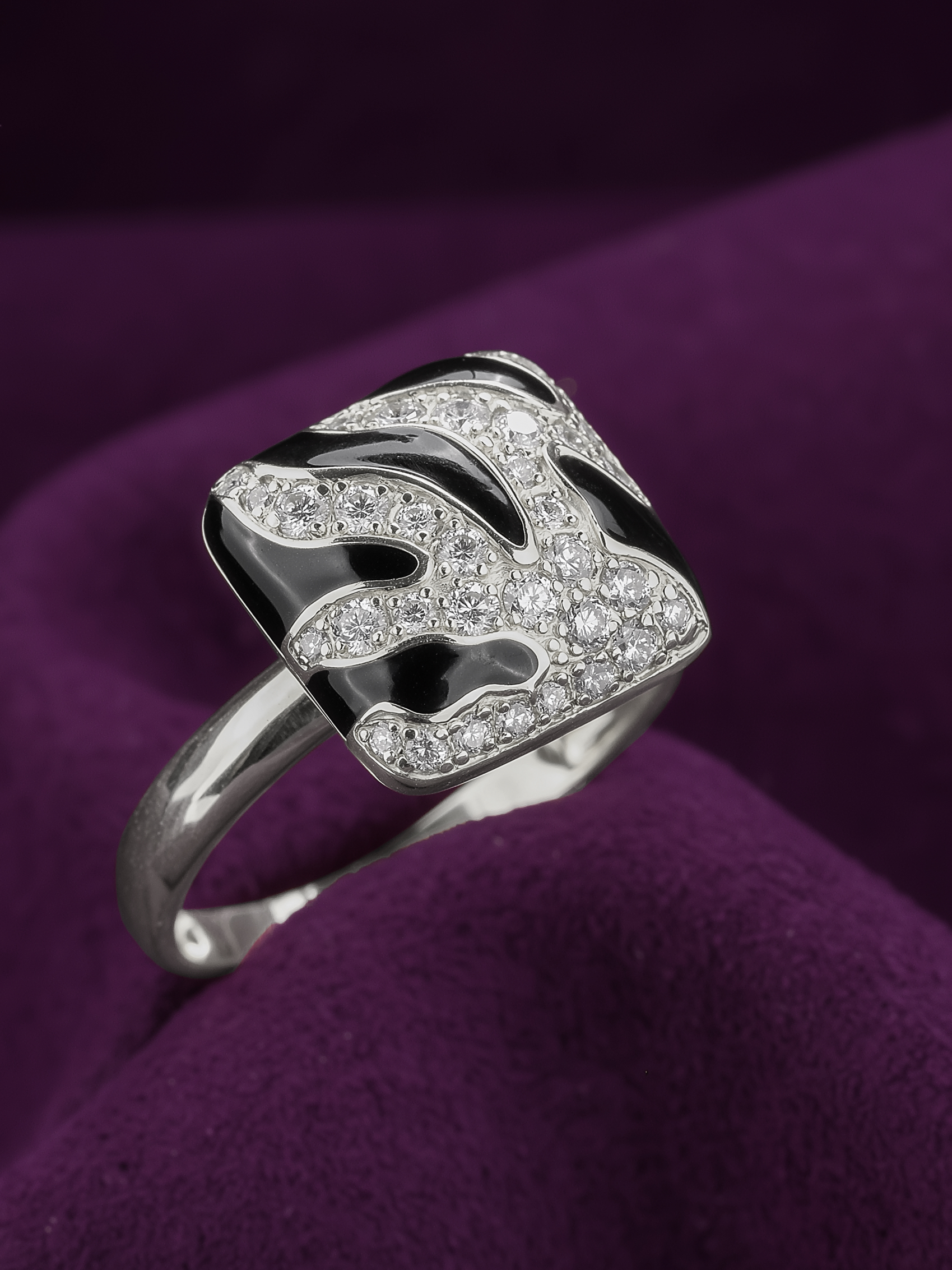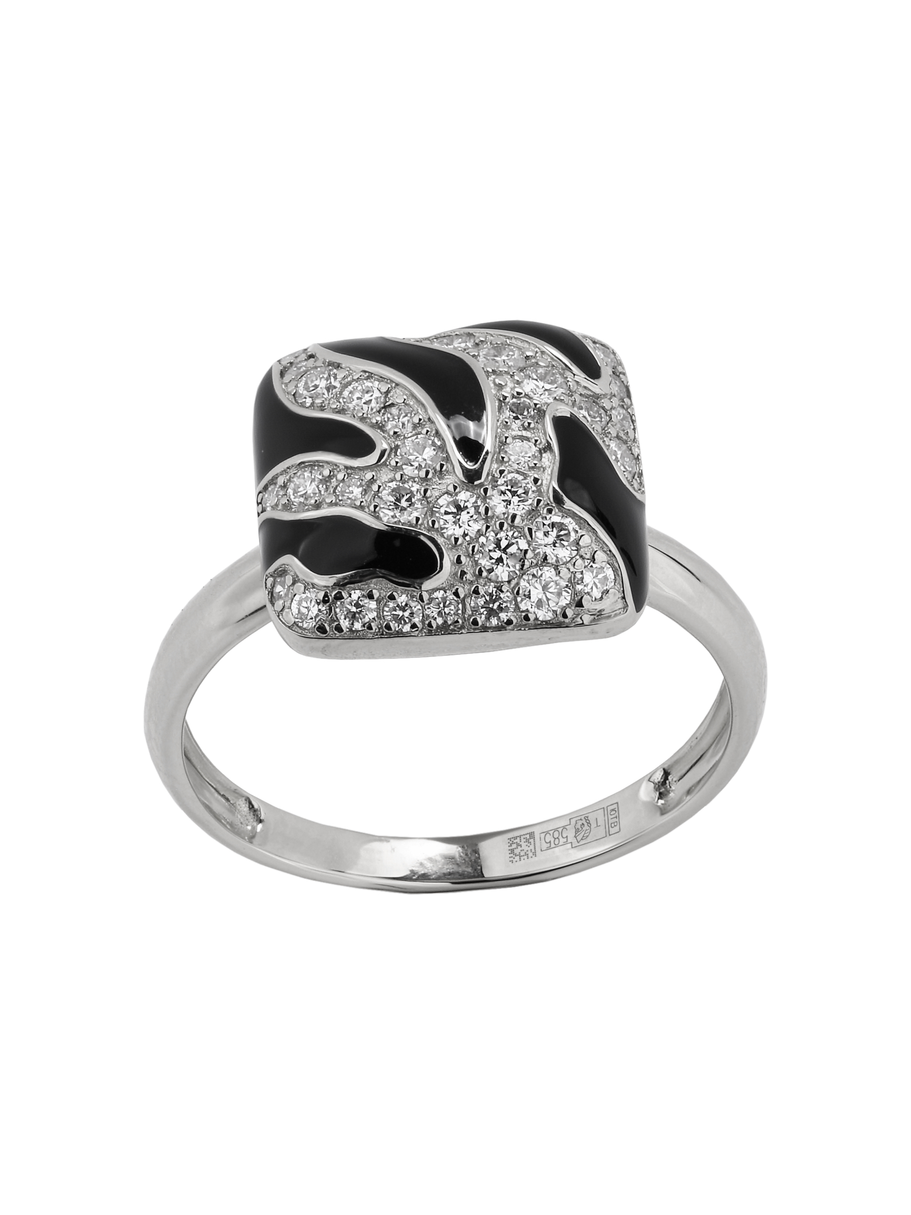 Роскошное кольцо из белого золота 585 пробы — это воплощение смелого дизайна, вдохновленного мощной грацией диких животных. Украшение из коллекции De Luxe — Тигровый стиль — Бриллианты приковывает взгляд своей неординарностью: выразительный узор, имитирующий окрас тигра, создан с помощью контрастной черной эмали, которая эффектно подчеркивает холодный блеск драгоценного металла.