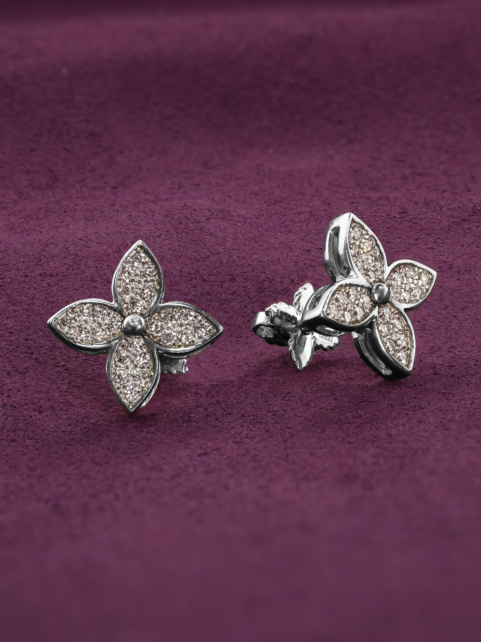 Серьги декорированы 48 бриллиантами круглой формы с белым цветом вставок. Камни расположены так, чтобы максимально раскрыть игру света при каждом движении, создавая роскошное мерцание. Белые бриллианты в обрамлении благородного металла выглядят лаконично и дорого, что позволяет носить эти серьги как с деловым костюмом, так и с вечерним нарядом. Модель универсальна — эти серьги подходят как для женщин, так и для мужчин, предпочитающих сдержанную роскошь в аксессуарах.